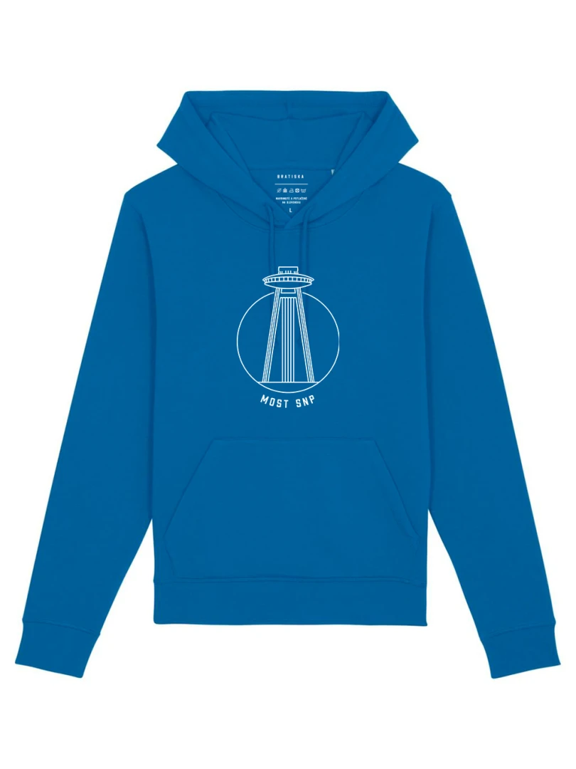 Táto pohodlná mikina s kapucňou a jedinečným dizajnom Mostu SNP je skvelou voľbou pre milovníkov moderných pamiatok Bratislavy. Čierna farba s bielym motívom vytvára elegantný a štýlový vzhľad, ktorý sa ľahko kombinuje s rôznymi outfitmi. Ideálna na chladné dni, do školy alebo na voľný čas.