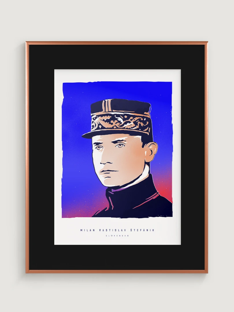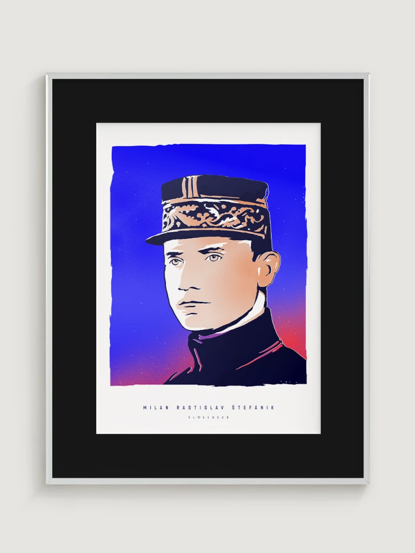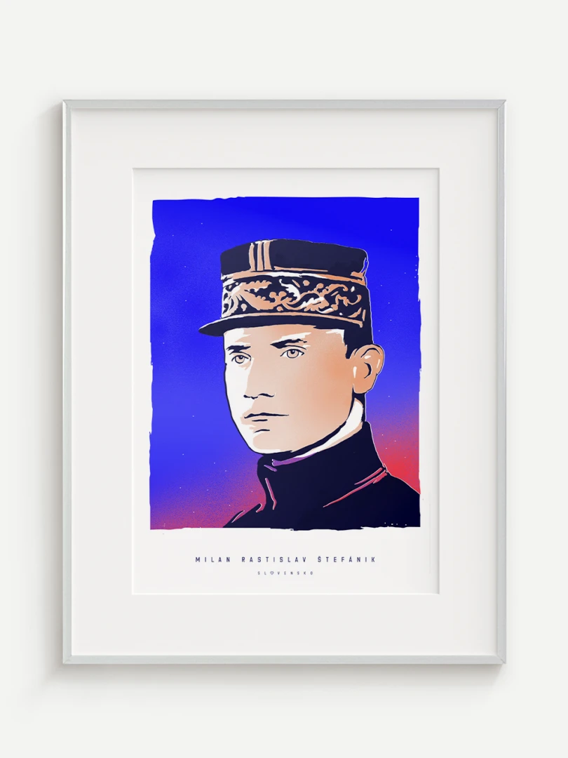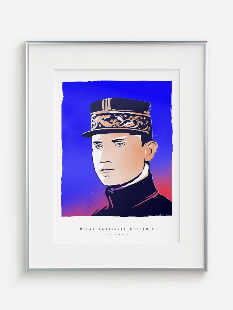 Jeho výnimočný príbeh a odkaz sú zachytené aj na tomto pop-artovom printe – modernom výtvarnom poňatí, ktoré spája historickú osobnosť s výraznou vizuálnou estetikou. Autorské vizuály najväčších osobností v histórii Slovenska vznikli ako spolupráca pre celonárodnú anketu, ktorá vyvrcholila slávnostným galavečerom v Slovenskej televízii. Víťazom hlasovania slovenských novinárov sa vtedy stal práve Milan Rastislav Štefánik.
