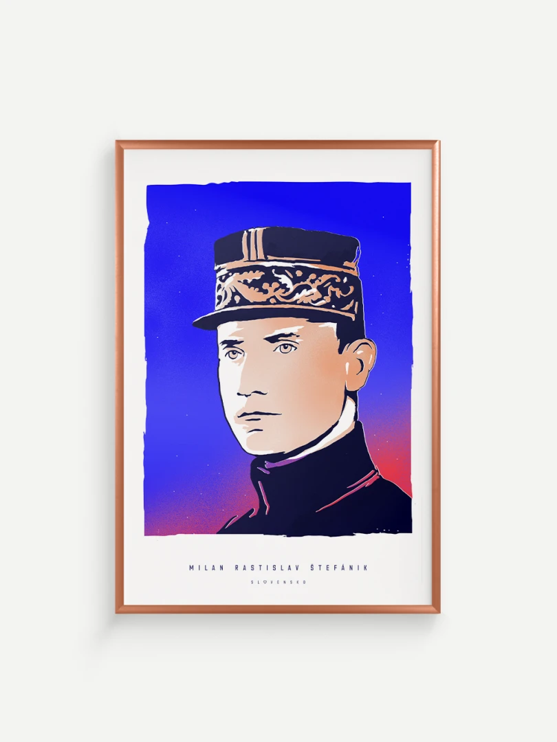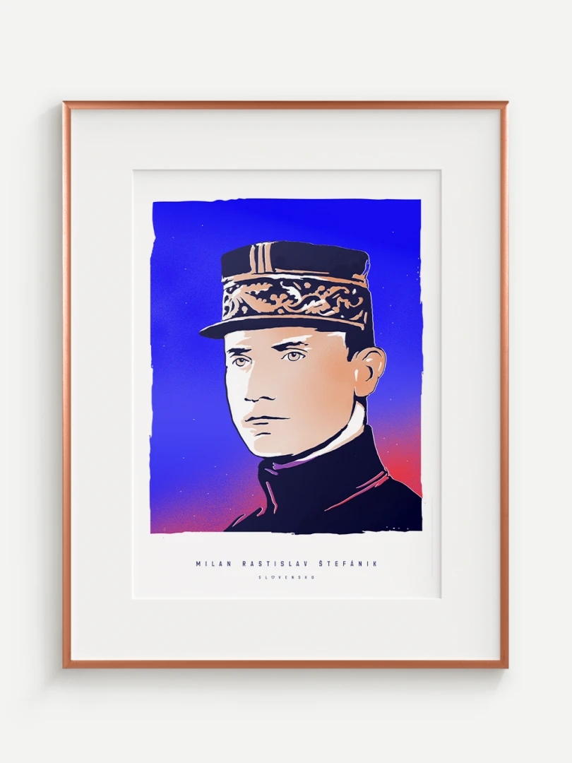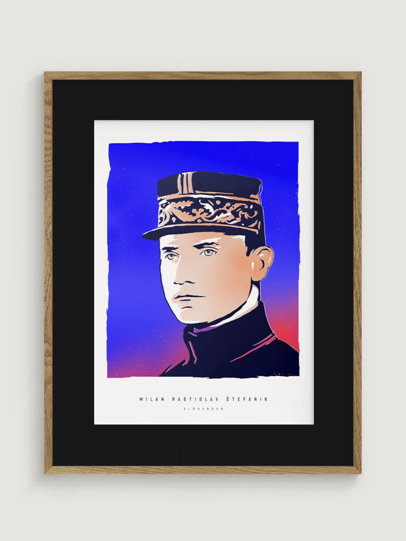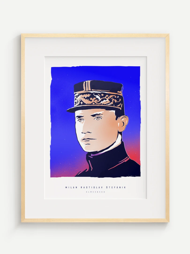 Jeho výnimočný príbeh a odkaz sú zachytené aj na tomto pop-artovom printe – modernom výtvarnom poňatí, ktoré spája historickú osobnosť s výraznou vizuálnou estetikou. Autorské vizuály najväčších osobností v histórii Slovenska vznikli ako spolupráca pre celonárodnú anketu, ktorá vyvrcholila slávnostným galavečerom v Slovenskej televízii. Víťazom hlasovania slovenských novinárov sa vtedy stal práve Milan Rastislav Štefánik.