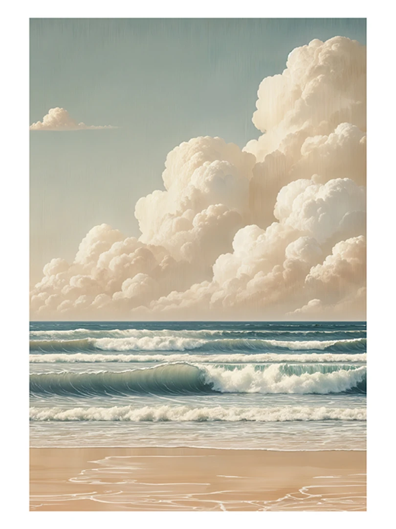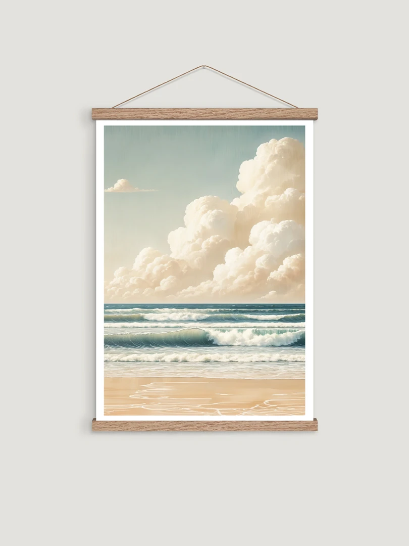 Tento print krásne vyobrazuje pokojné more v minimalistickom štýle, pod žiarivým obzorom. S paletou teplých béžových a jemných krémových farieb vytvára pokojnú dennú scénu, ktorá vyvoláva pocit harmónie a uvoľnenia.