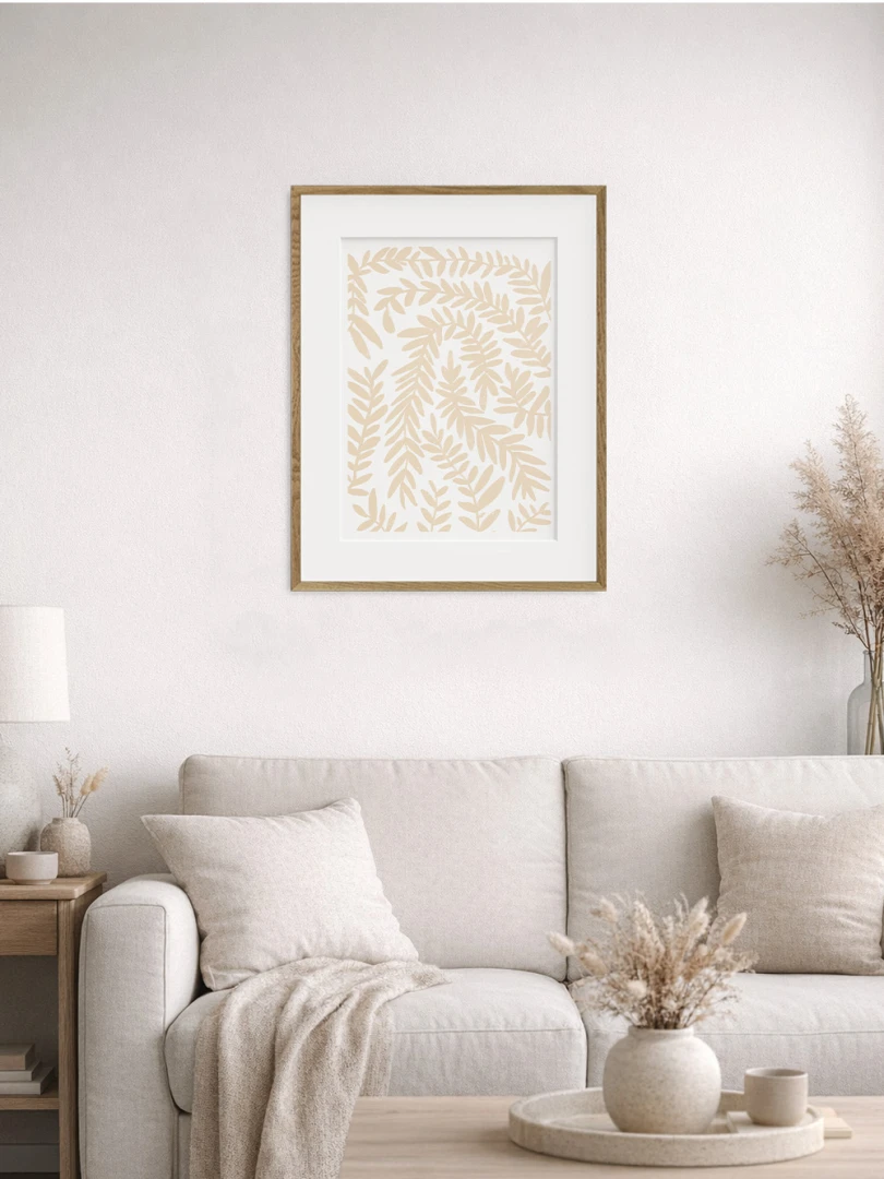 Predstavujeme vám tento minimalistický umelecký print, ktorý zobrazuje jednoduchosť béžového vavrínu.