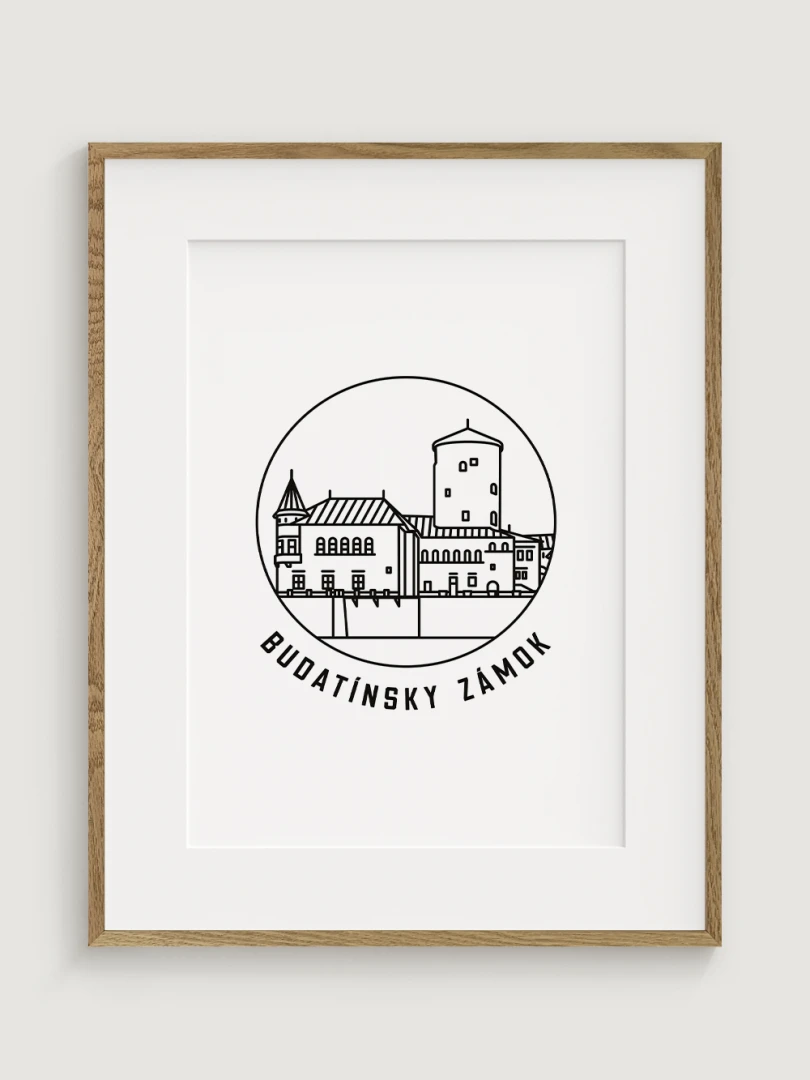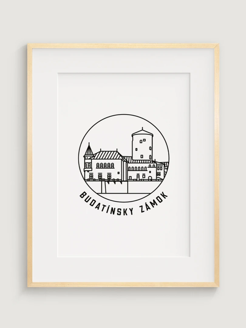Tento print predstavuje štýlizované, minimalistické zobrazenie Budatínskeho zámku v Žiline, pamiatky, ktorá spája historické bohatstvo a krásu stredovekého dizajnu. Vypracovaný s jemnou čiernou linkovou kresbou na kvalitnom papieri, táto ilustrácia zachytáva detaily zámku v nadčasovom a elegantnom štýle.
