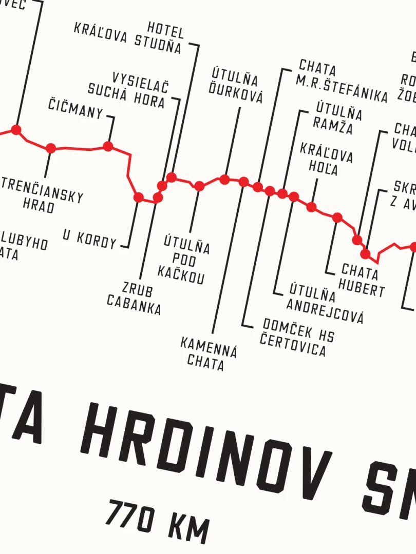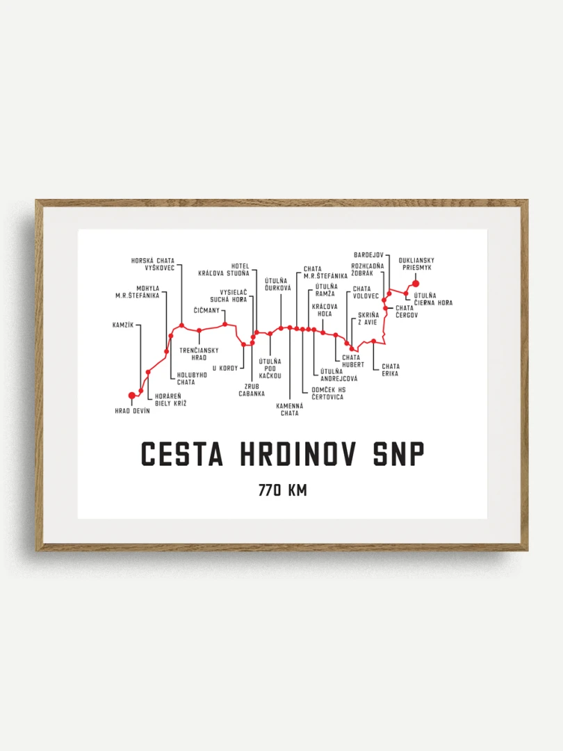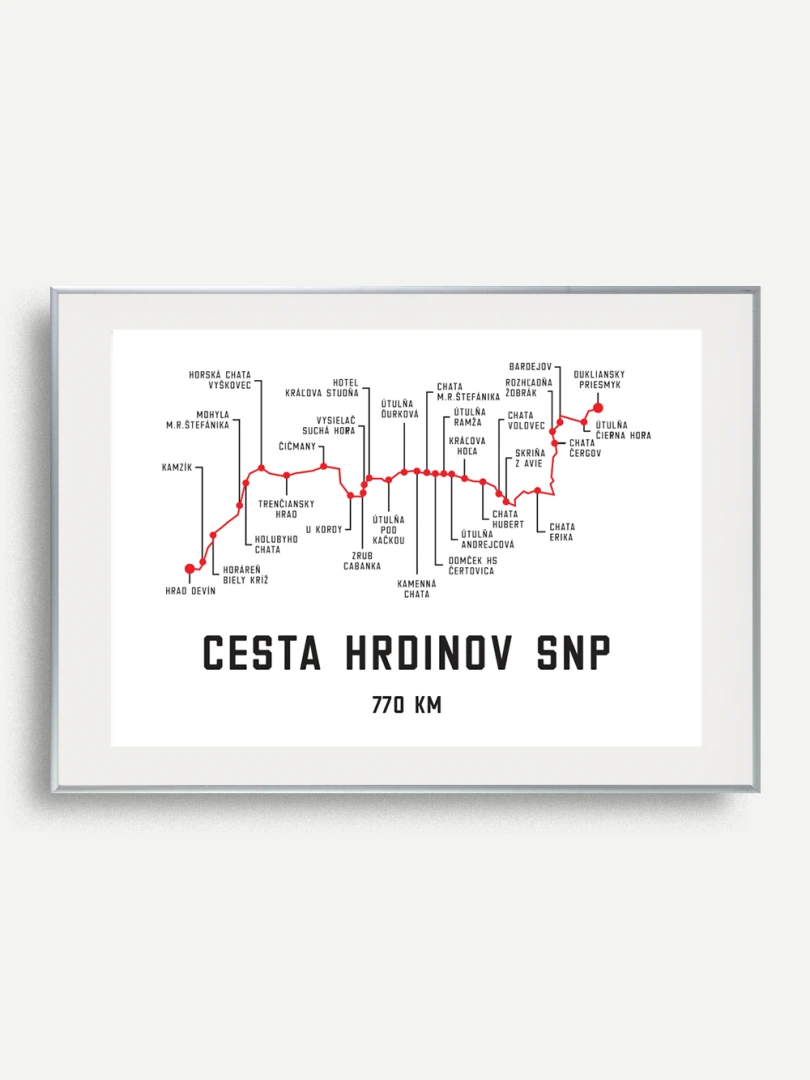 Tento print zachytáva charakteristickú líniu ikonickej trasy Cesty SNP, zdôraznenú čistým dizajnom a výraznou farebnosťou. Či už pre váš domov, kanceláriu alebo ako darček, tento print prináša kúsok histórie a odvahy Slovenska do akéhokoľvek priestoru jedinečným spôsobom.