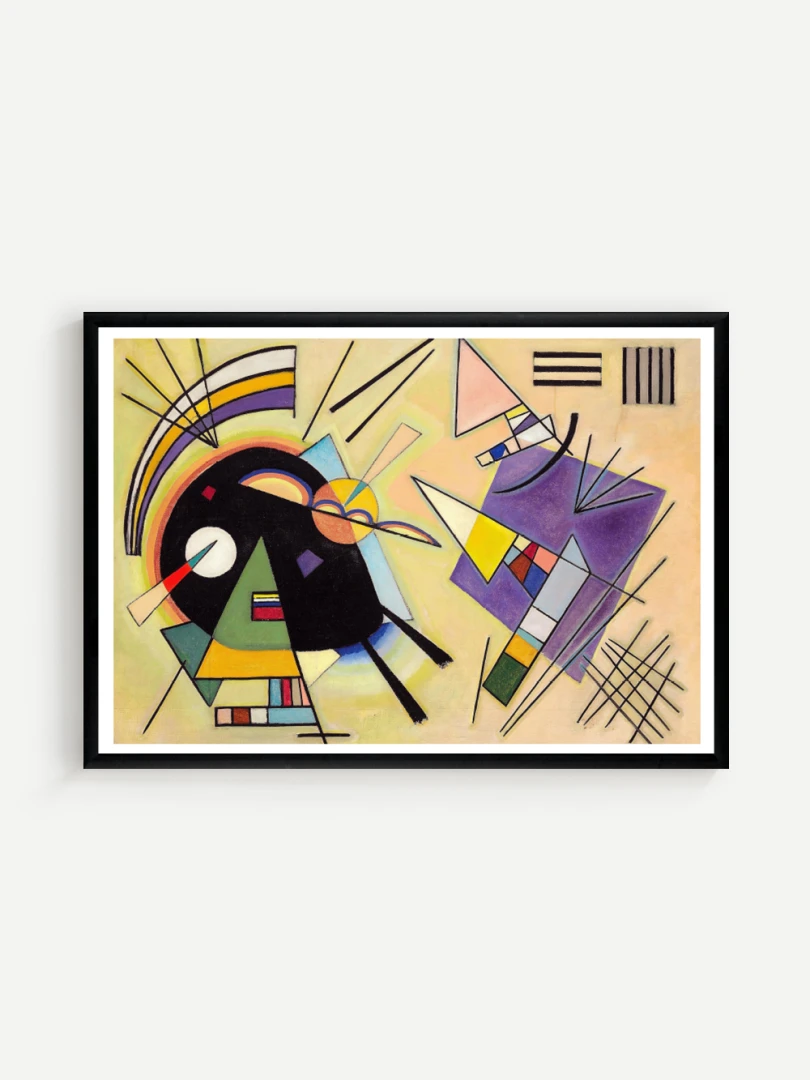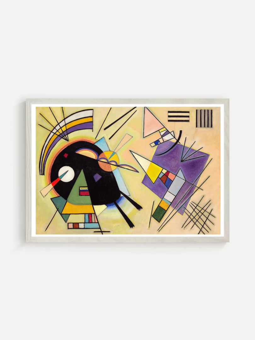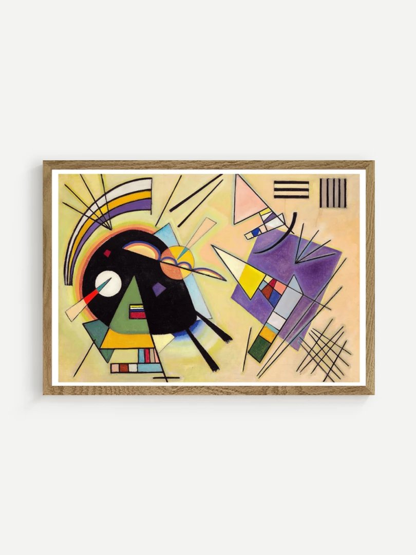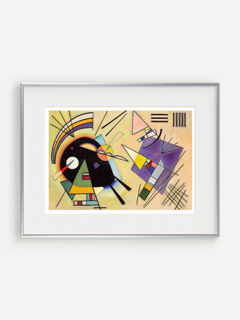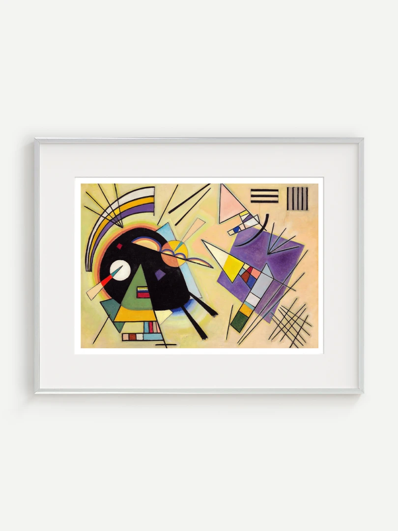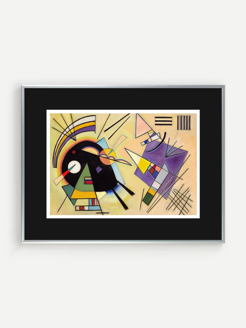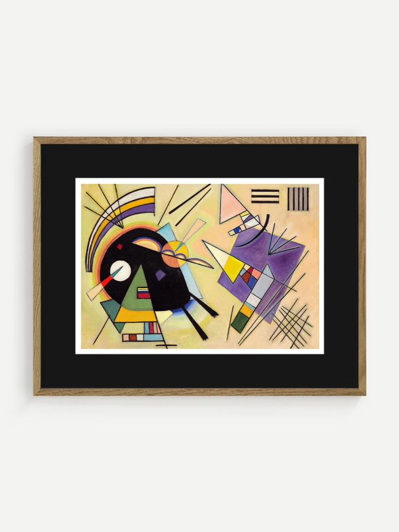 Tento print vychádza z obrazu Čierna a fialová (Black and Violet), ktorý Wassily Kandinsky vytvoril v roku 1923 počas svojho pôsobenia v Nemecku. Dielo je charakteristické dynamickou kompozíciou geometrických tvarov a línií, kde dominujú kontrastné farby čiernej a fialovej. Kandinskyho záujem o spojenie farby a formy vytvára vizuálny jazyk, ktorý je zároveň analytický aj emotívny.
