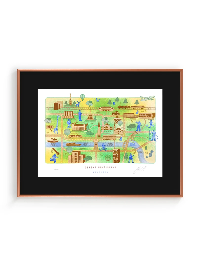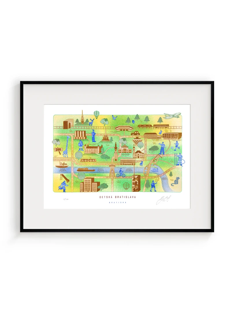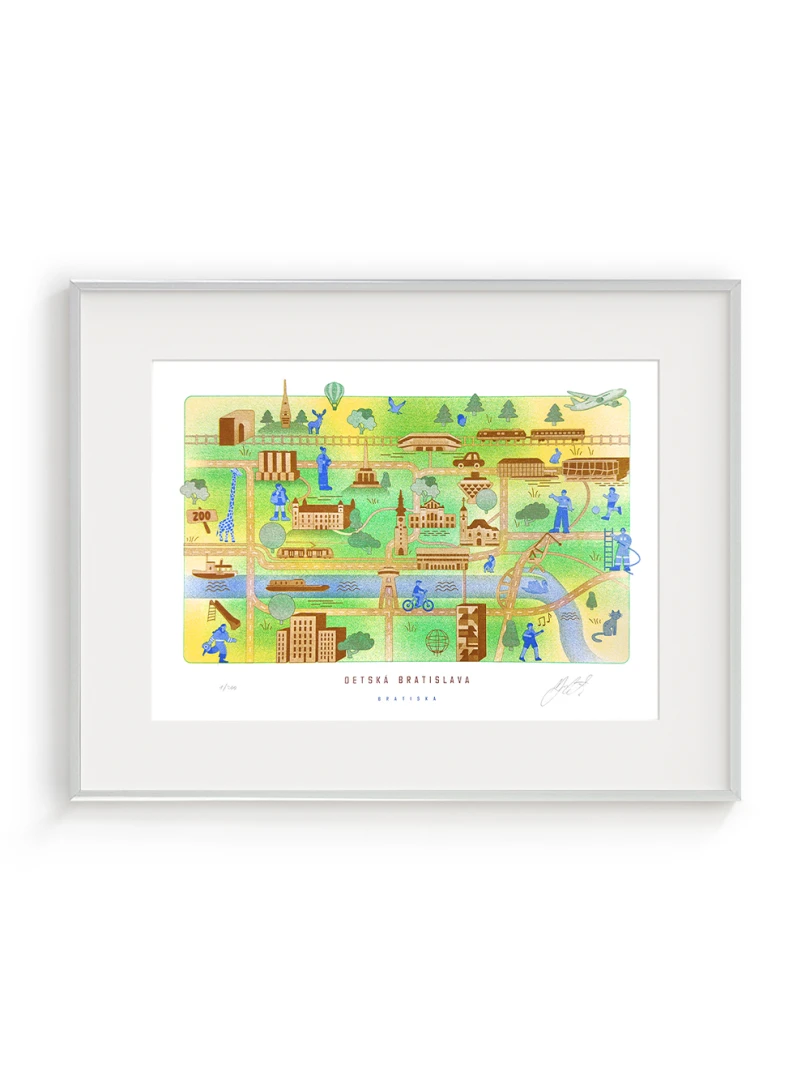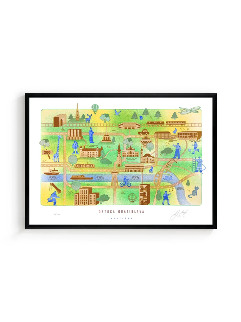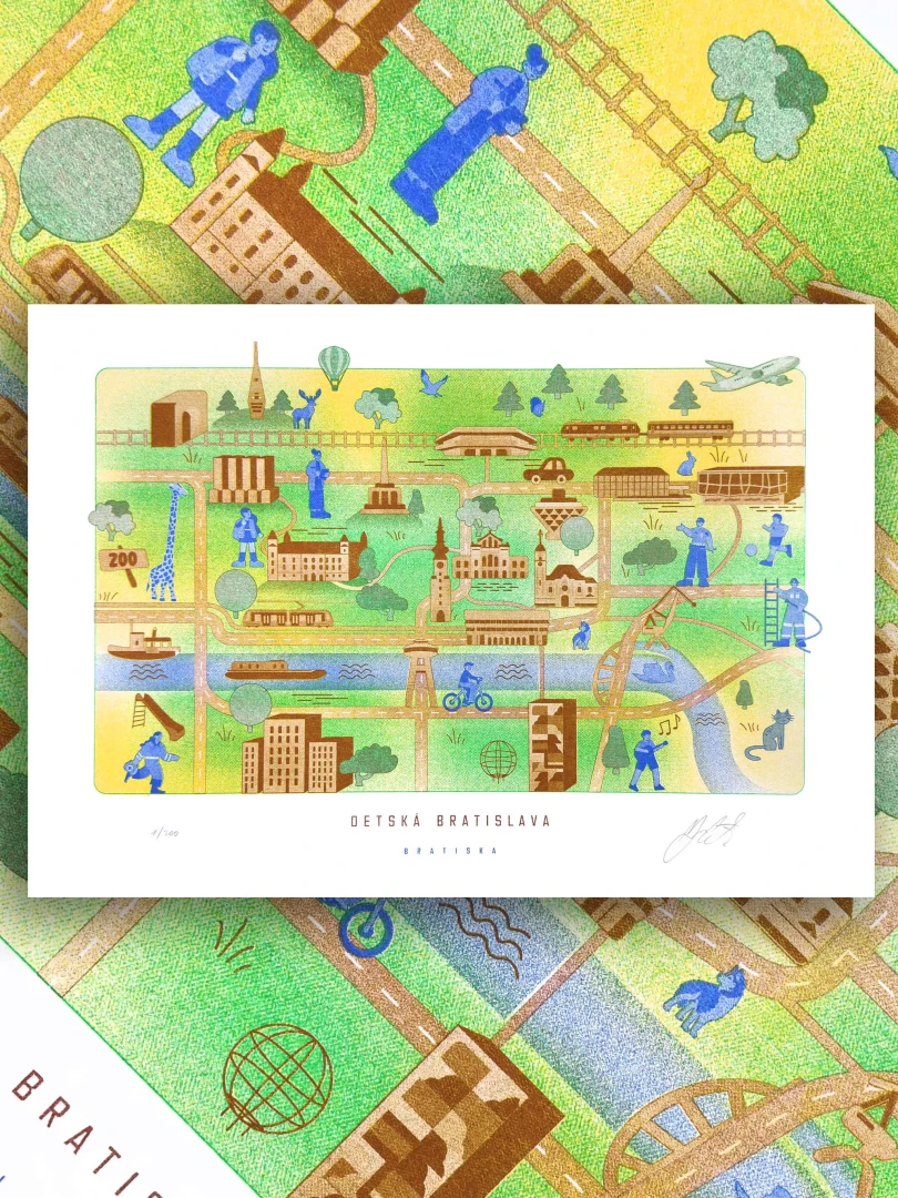 Bratislava ako dobrodružstvo. Predstav si, že sa jedného rána zobudíš a Bratislava je tvoje ihrisko. Nie nudná mapa, ale mesto plné malých príbehov a veľkých objavov. Začínaš na vlakovej stanici, kde z vlaku vystúpiš priamo do dobrodružstva. Odtiaľ ťa povedie cesta cez Starú tržnicu, kde to vonia po ovocí a koláčoch, okolo radnice až ku krásnemu Modrému kostolíku, ktorý vyzerá ako z rozprávky. V diaľke už vidíš Michalskú vežu a ponad ňu sa týči hrad, kam treba vyliezť – odtiaľ je totiž najlepší výhľad na celé mesto! Všimneš si aj vesmírnu loď? Nie, to nie je omyl – to je UFO na moste, ktorý ťa prenesie až za Dunaj.Ak máš chuť na výlet, môžeš sa zatúlať ku Kamzíku alebo si ísť pozrieť výhľad na mesto na Slavín. Na lúke za mestom stoja známe paneláky, niektoré pomaľované ako galéria pod holým nebom. Neďaleko sa trbliece hladina Zlatých pieskov, a ak máš šťastie, možno práve kotví Mark Twain na Karloveskom ramene. Cestou naspäť ešte stihneš nakuknúť do novej Slovenskej národnej galérie a možno aj pozrieť zápas pri Zimnom štadióne, kde hokejisti práve bojujú o víťazstvo. V diaľke znie rádio z budovy rozhlasu a ty vieš, že si práve prešiel celé mesto – po vlastných nohách, s otvorenými očami.