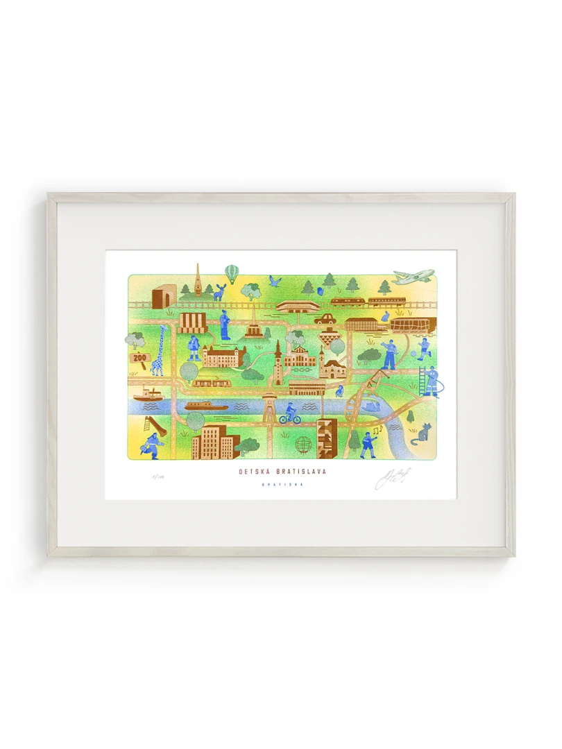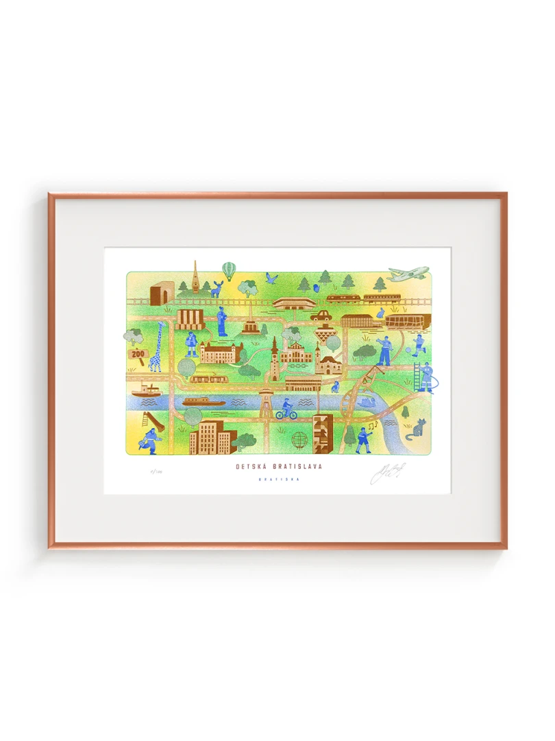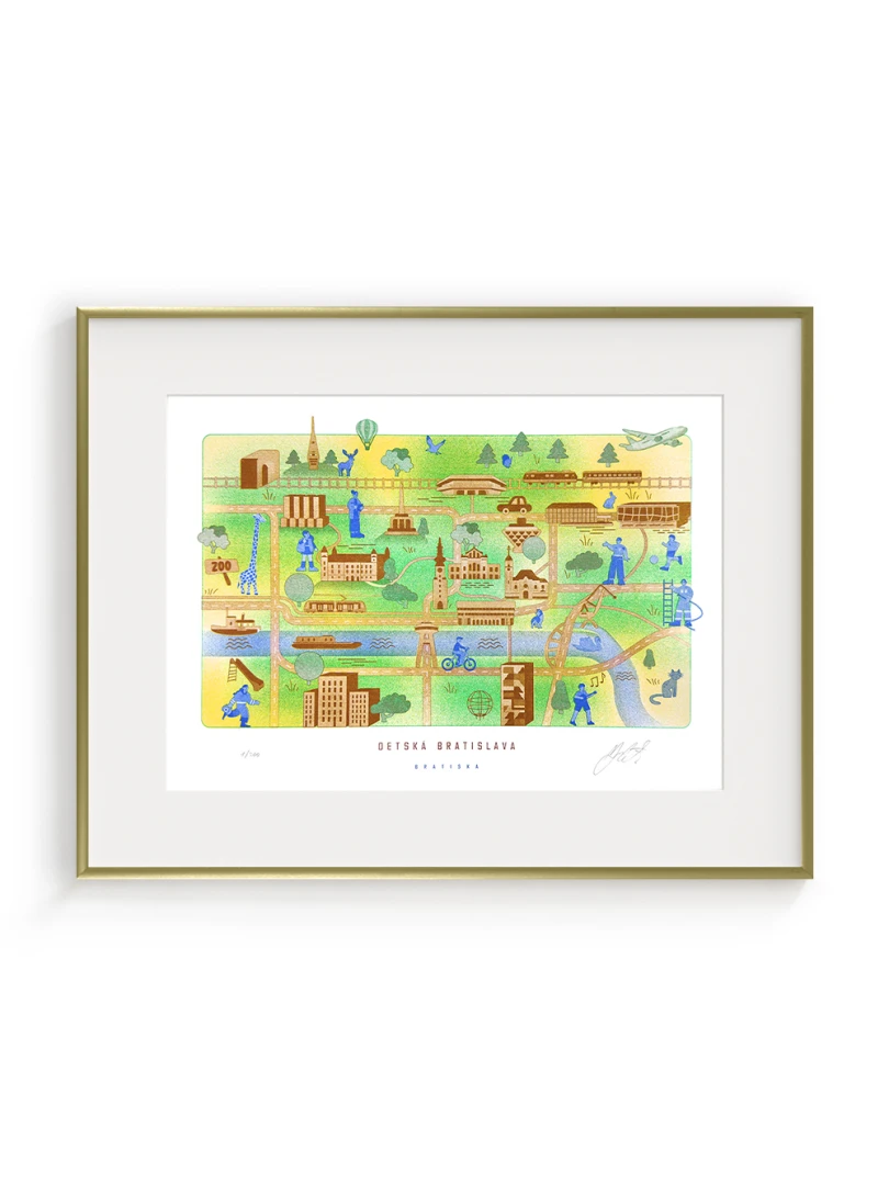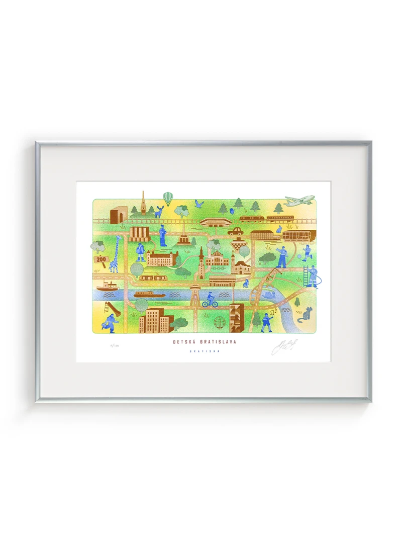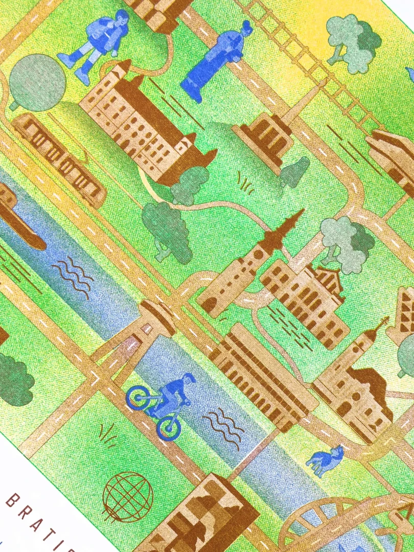 Bratislava ako dobrodružstvo. Predstav si, že sa jedného rána zobudíš a Bratislava je tvoje ihrisko. Nie nudná mapa, ale mesto plné malých príbehov a veľkých objavov. Začínaš na vlakovej stanici, kde z vlaku vystúpiš priamo do dobrodružstva. Odtiaľ ťa povedie cesta cez Starú tržnicu, kde to vonia po ovocí a koláčoch, okolo radnice až ku krásnemu Modrému kostolíku, ktorý vyzerá ako z rozprávky. V diaľke už vidíš Michalskú vežu a ponad ňu sa týči hrad, kam treba vyliezť – odtiaľ je totiž najlepší výhľad na celé mesto! Všimneš si aj vesmírnu loď? Nie, to nie je omyl – to je UFO na moste, ktorý ťa prenesie až za Dunaj.Ak máš chuť na výlet, môžeš sa zatúlať ku Kamzíku alebo si ísť pozrieť výhľad na mesto na Slavín. Na lúke za mestom stoja známe paneláky, niektoré pomaľované ako galéria pod holým nebom. Neďaleko sa trbliece hladina Zlatých pieskov, a ak máš šťastie, možno práve kotví Mark Twain na Karloveskom ramene. Cestou naspäť ešte stihneš nakuknúť do novej Slovenskej národnej galérie a možno aj pozrieť zápas pri Zimnom štadióne, kde hokejisti práve bojujú o víťazstvo. V diaľke znie rádio z budovy rozhlasu a ty vieš, že si práve prešiel celé mesto – po vlastných nohách, s otvorenými očami.