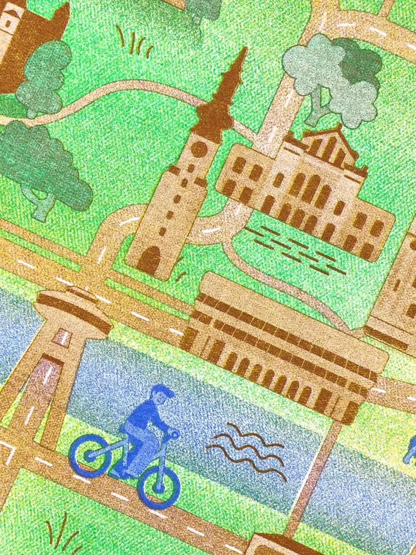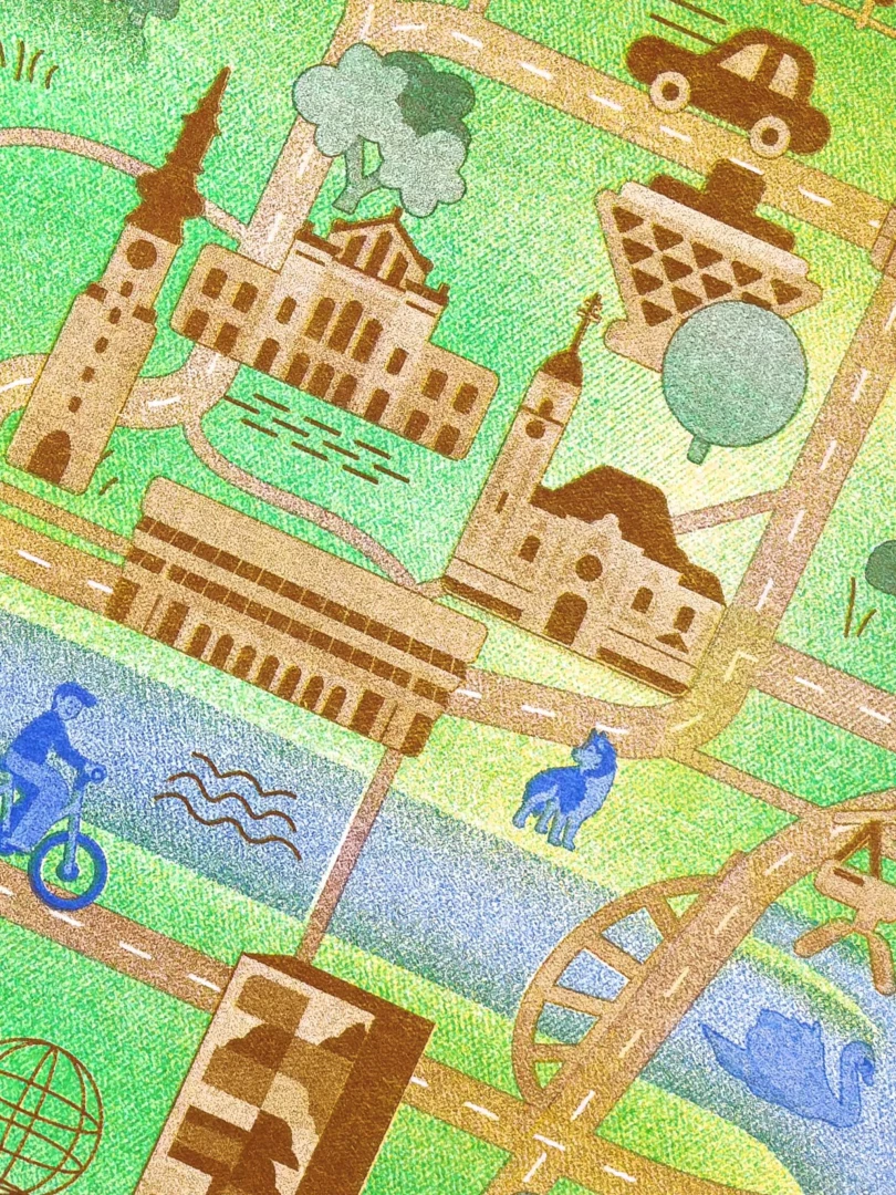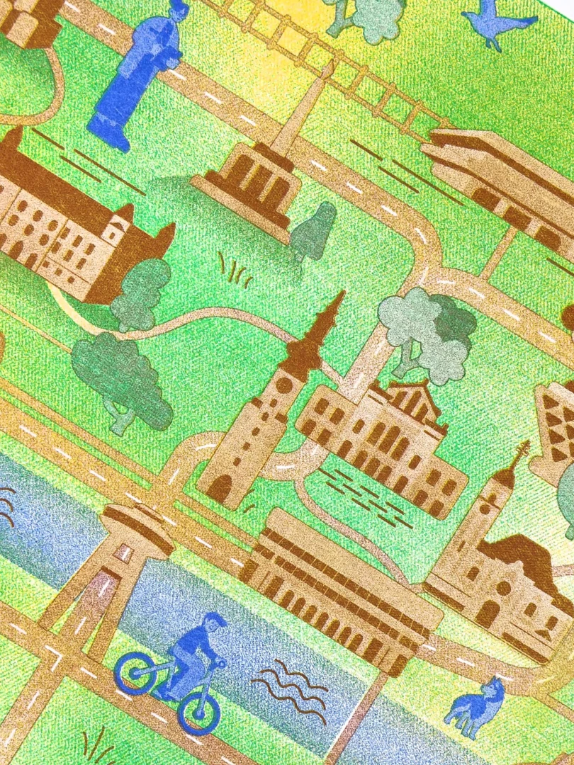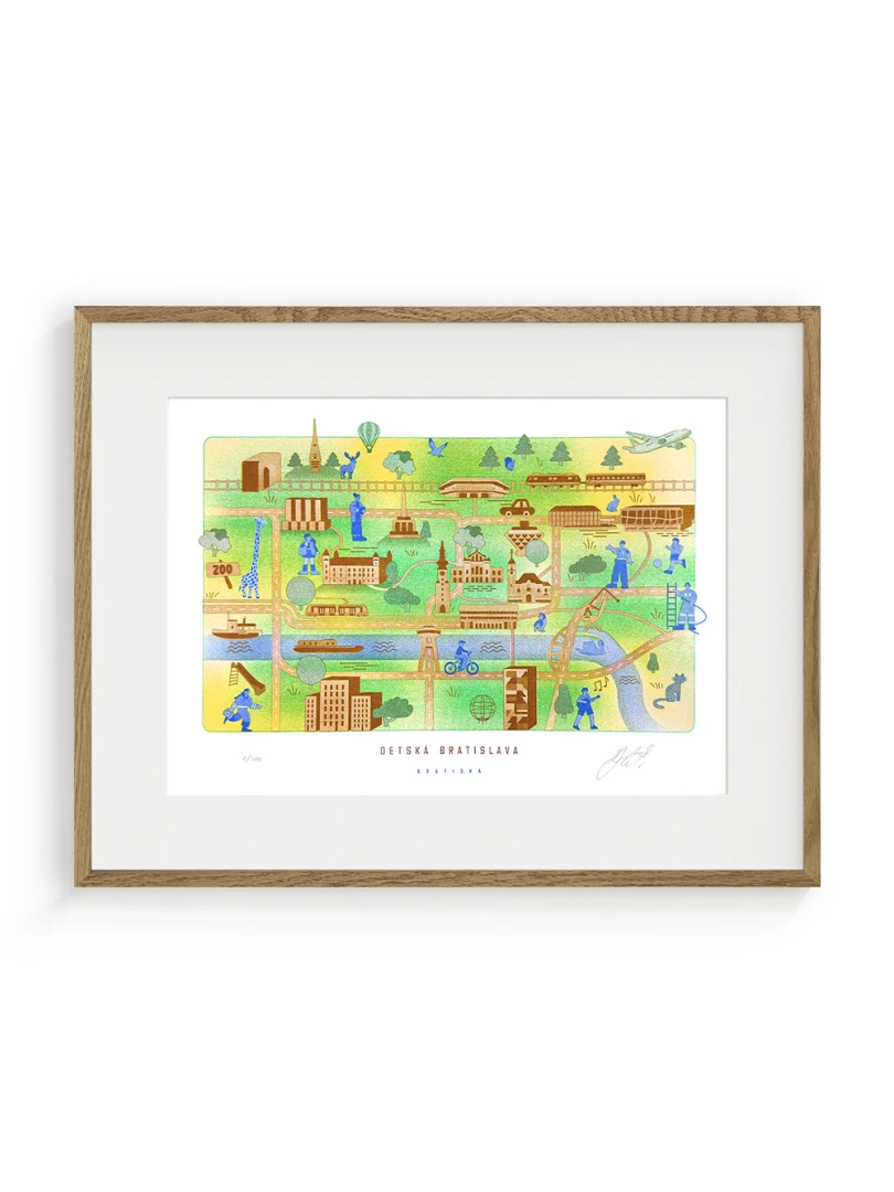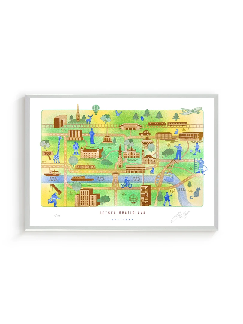 Bratislava ako dobrodružstvo. Predstav si, že sa jedného rána zobudíš a Bratislava je tvoje ihrisko. Nie nudná mapa, ale mesto plné malých príbehov a veľkých objavov. Začínaš na vlakovej stanici, kde z vlaku vystúpiš priamo do dobrodružstva. Odtiaľ ťa povedie cesta cez Starú tržnicu, kde to vonia po ovocí a koláčoch, okolo radnice až ku krásnemu Modrému kostolíku, ktorý vyzerá ako z rozprávky. V diaľke už vidíš Michalskú vežu a ponad ňu sa týči hrad, kam treba vyliezť – odtiaľ je totiž najlepší výhľad na celé mesto! Všimneš si aj vesmírnu loď? Nie, to nie je omyl – to je UFO na moste, ktorý ťa prenesie až za Dunaj.Ak máš chuť na výlet, môžeš sa zatúlať ku Kamzíku alebo si ísť pozrieť výhľad na mesto na Slavín. Na lúke za mestom stoja známe paneláky, niektoré pomaľované ako galéria pod holým nebom. Neďaleko sa trbliece hladina Zlatých pieskov, a ak máš šťastie, možno práve kotví Mark Twain na Karloveskom ramene. Cestou naspäť ešte stihneš nakuknúť do novej Slovenskej národnej galérie a možno aj pozrieť zápas pri Zimnom štadióne, kde hokejisti práve bojujú o víťazstvo. V diaľke znie rádio z budovy rozhlasu a ty vieš, že si práve prešiel celé mesto – po vlastných nohách, s otvorenými očami.