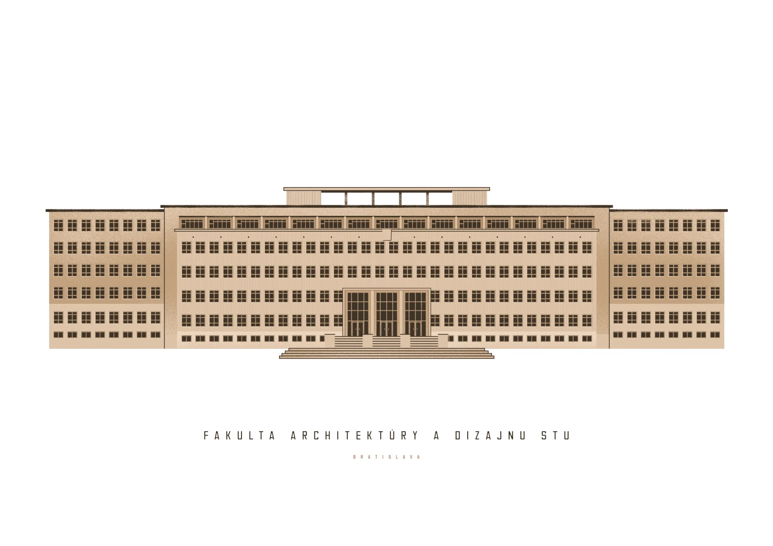 V roku 1946 bol profesor Emil Belluš poverený naprojektovaním nového areálu pre Pavilón teoretických ústavou SVŠT. Projekt vytvorený v rokoch 1947 – 1949 bol definitívne zrealizovaný v roku 1953 ako jediný objekt z vtedy plánovanej zástavby a umiestnenia fakúlt Výučba architektúry, ktorá u nás dlho ako samostatná disciplína absentovala, pôvodne ani nemala prebiehať v priestoroch novopostavenej budovy. Budova Fakulty architektúry a dizajnu STU nesie prvky funkcionalizmu, ale svojou symetrickou dispozíciou nadväzuje na okolité paláce. Fasádu budovy zdobí 20 travertínových reliéfov, ktoré oslavujú prácu a povolania, ktoré po roku 1948 budovali vtedajšiu novú spoločnosť.