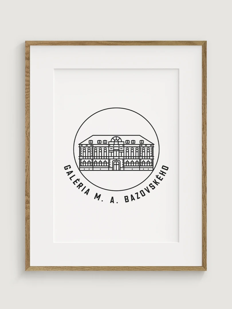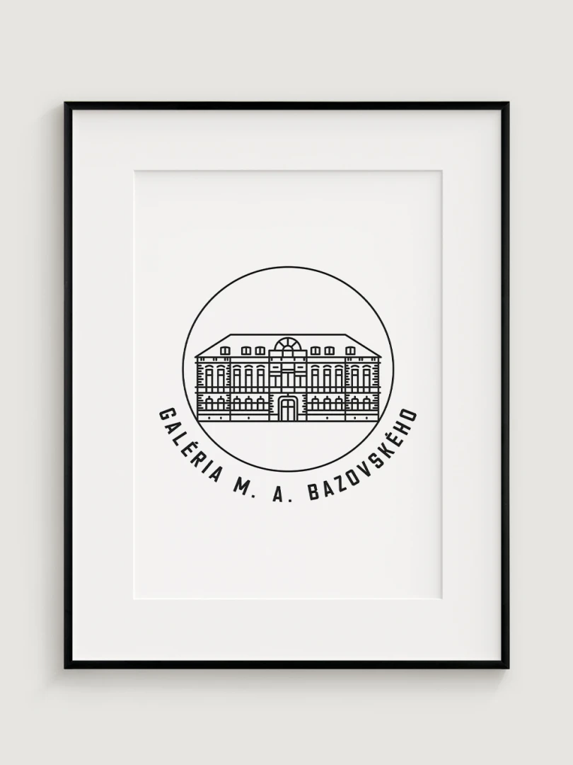 Tento minimalistický print štýlovo zobrazuje Galériu M. A. Bazovského v Trenčíne, významnú kultúrnu inštitúciu, ktorá uchováva a prezentuje diela slovenského moderného umenia. Detailný dizajn zvýrazňuje charakteristické prvky tejto historickej budovy a pripomína jej význam pre umelecký život mesta. Perfektný pre milovníkov umenia, histórie a kultúrnych priestorov, tento kúsok dodá vášmu interiéru sofistikovaný nádych.