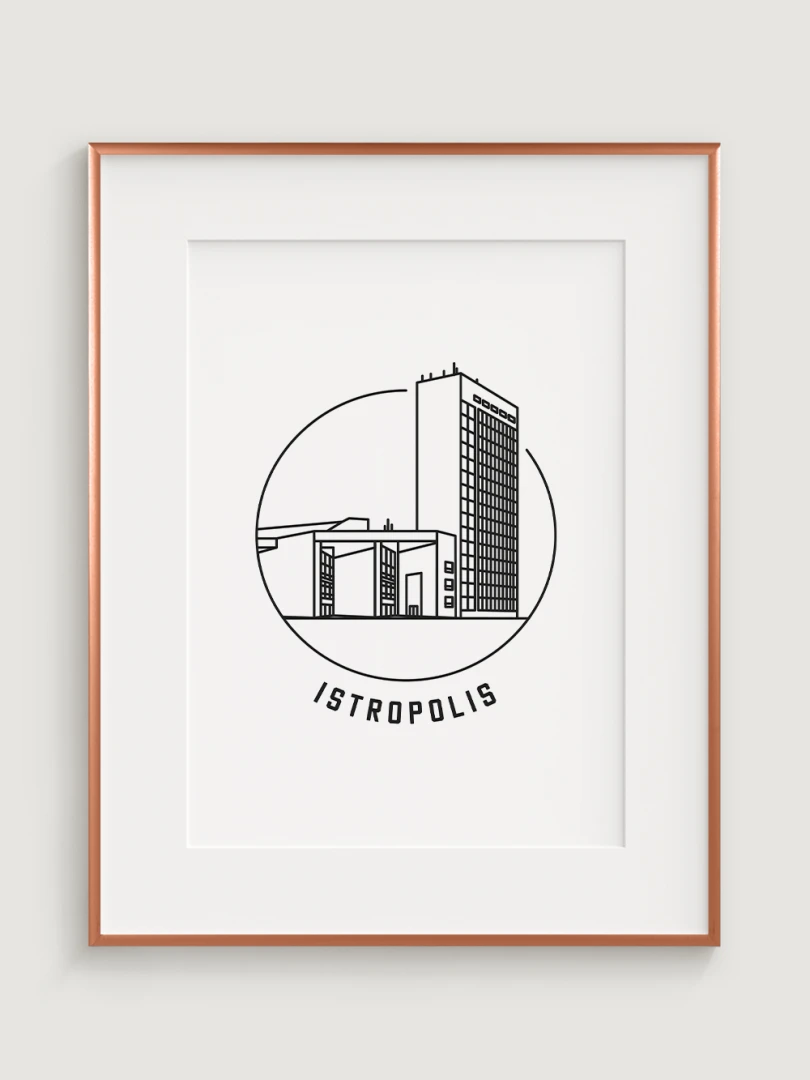 Tento umelecký print štýlovo zobrazuje ikonický Istropolis, významnú architektonickú dominantu Bratislavy, ktorá bola kedysi centrom kultúrneho a spoločenského diania. Elegantný, lineárny dizajn zachytáva jedinečnosť tejto modernistickej stavby a jej symbolického významu. Perfektný pre tých, ktorí oceňujú architektúru, históriu a jedinečné detaily, tento kúsok dodá vášmu priestoru nádych nostalgie a kultúrneho dedičstva.