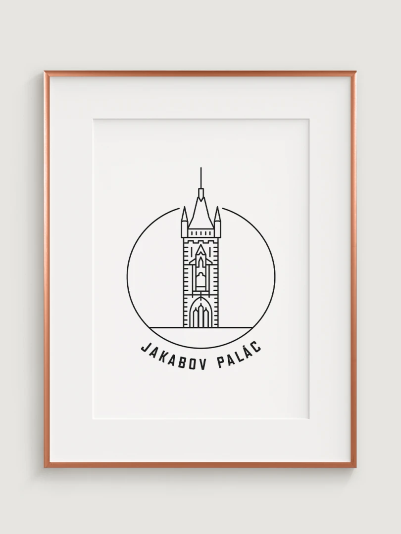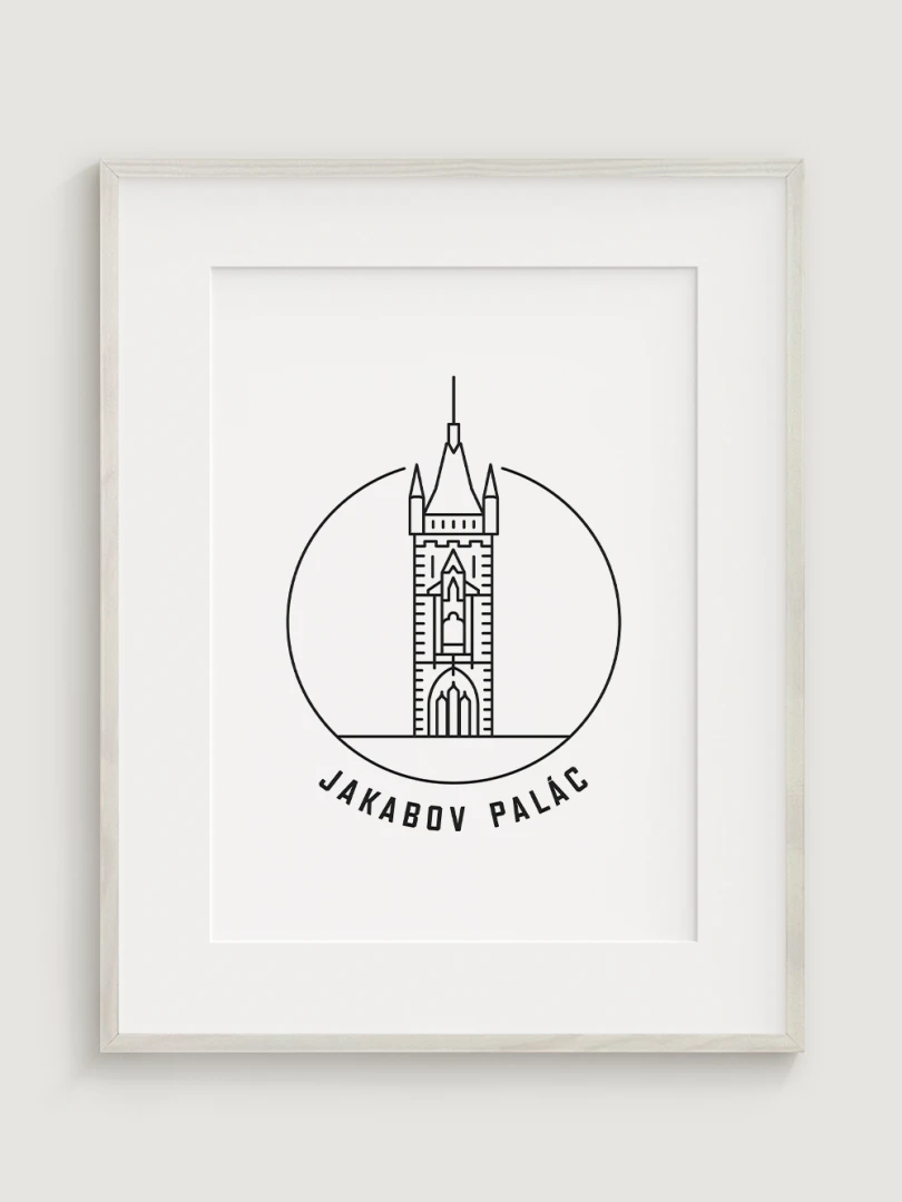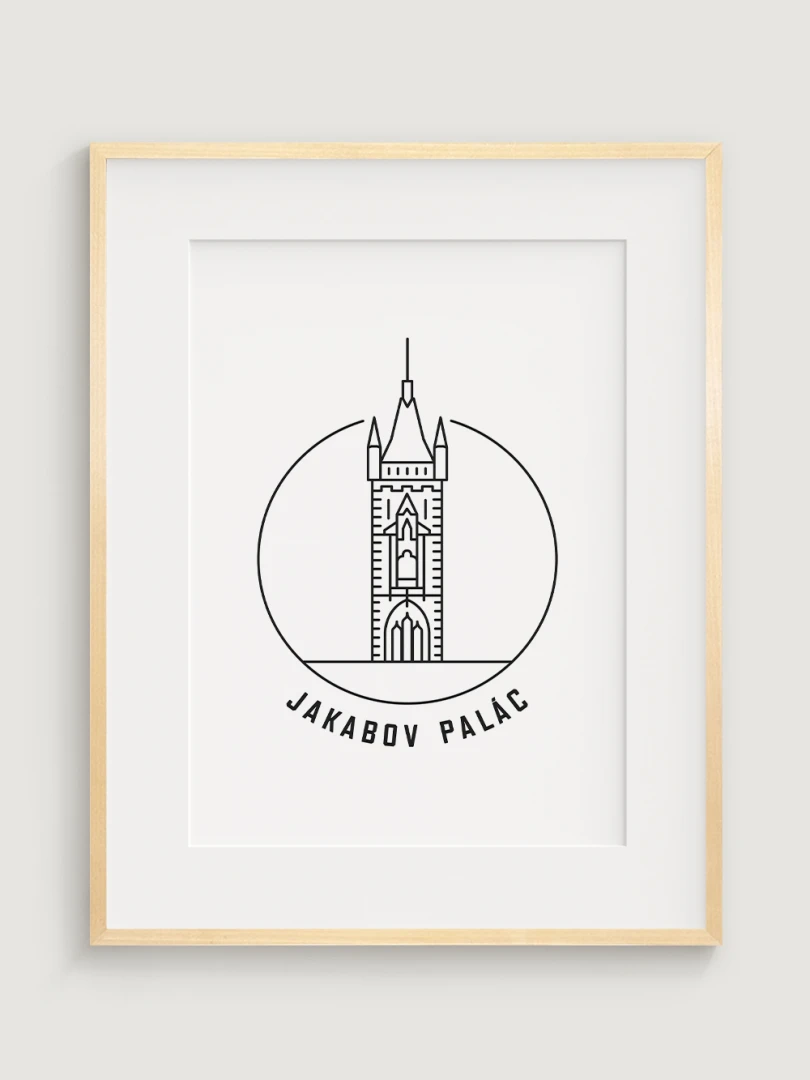 Tento print predstavuje štýlizované, minimalistické zobrazenie Jakabovho paláca v Košiciach, secesnej stavby s bohatou architektonickou krásou. Vypracovaný s jemnou čiernou linkovou kresbou na kvalitnom papieri, táto ilustrácia verne zachytáva jemné línie a detaily paláca v modernom a nadčasovom štýle.