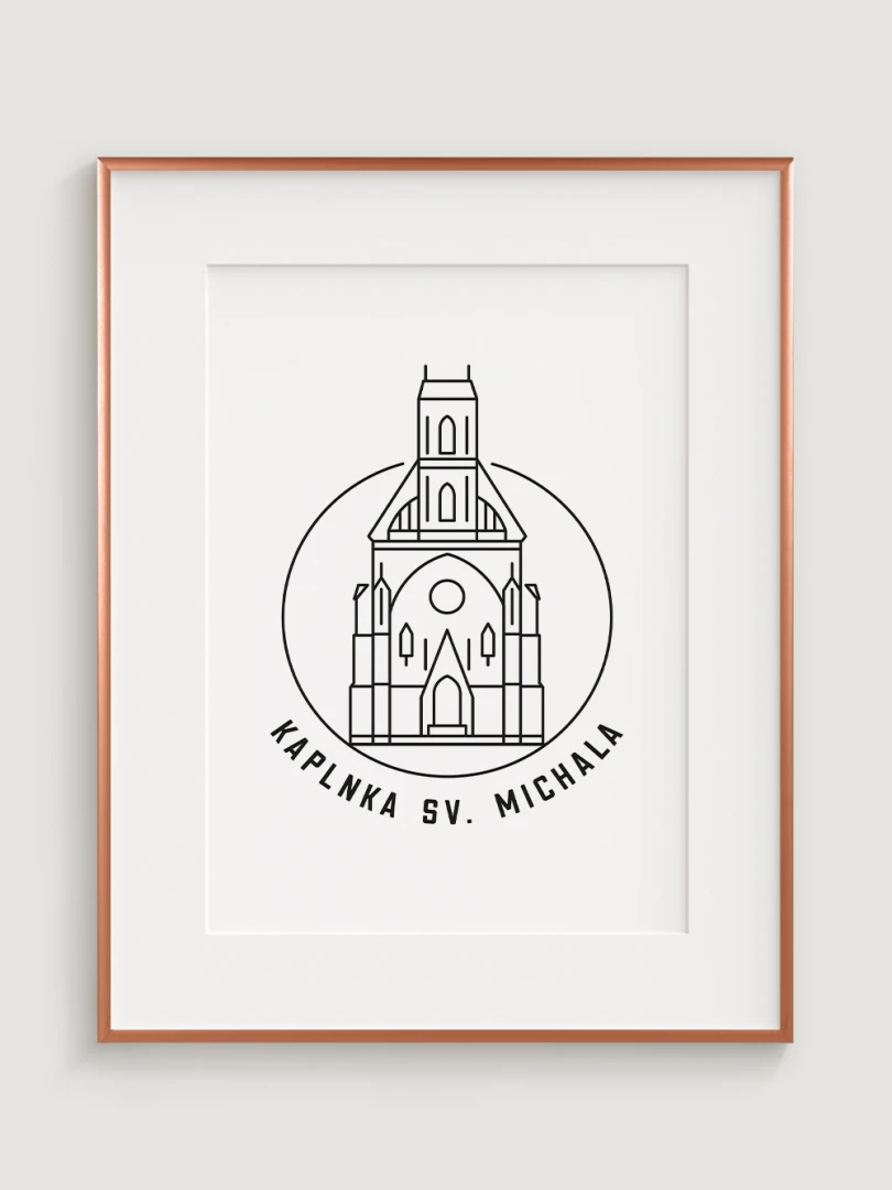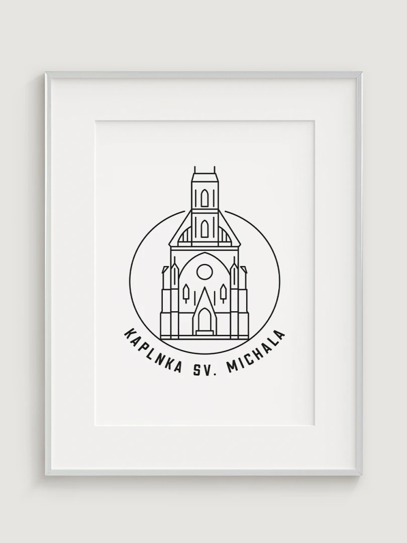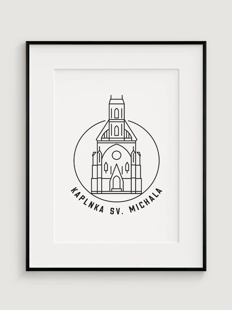 Tento print predstavuje štýlizované, minimalistické zobrazenie Kaplnky sv. Michala v Košiciach, barokovej stavby s historickým a kultúrnym významom. Vypracovaný s jemnou čiernou linkovou kresbou na kvalitnom papieri, táto ilustrácia verne odráža čisté línie a detailnú architektúru kaplnky v modernom a nadčasovom štýle.