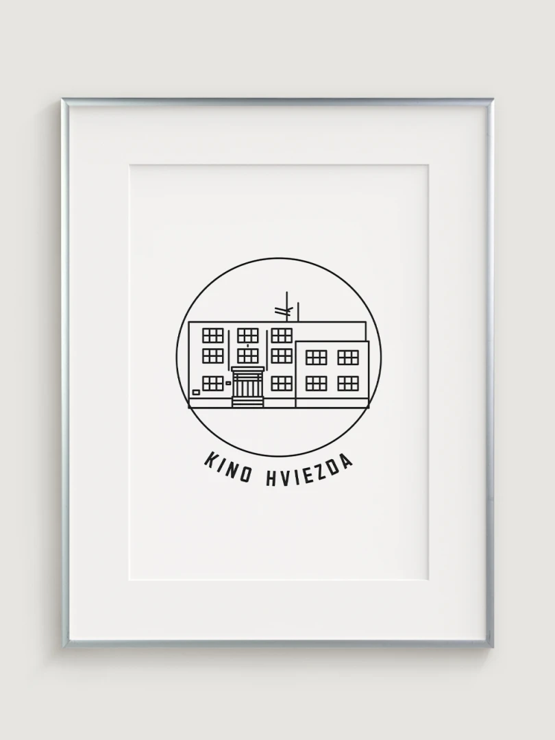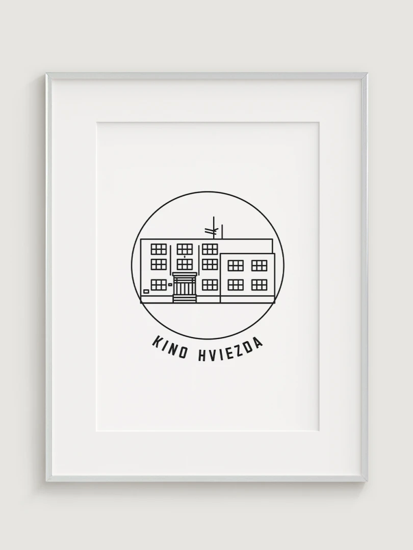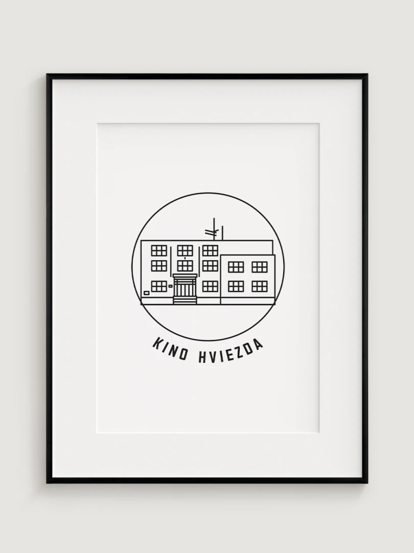 Tento umelecký print štýlovo zobrazuje Kino Hviezda v Trenčíne, kultový priestor, ktorý je dôležitým symbolom mestskej kultúry a filmovej tradície. Precízny dizajn zvýrazňuje jeho typickú funkcionalistickú architektúru, ktorá vnáša do mesta jedinečný vizuálny prvok. Perfektný pre tých, ktorí oceňujú spojenie histórie, architektúry a kinematografie – tento kúsok dodá vášmu priestoru nostalgickú atmosféru a ducha trenčianskeho kultúrneho dedičstva.