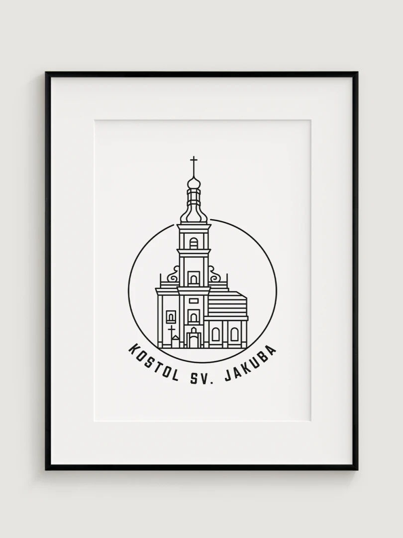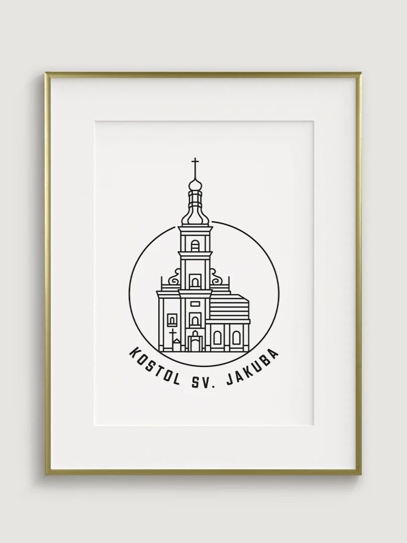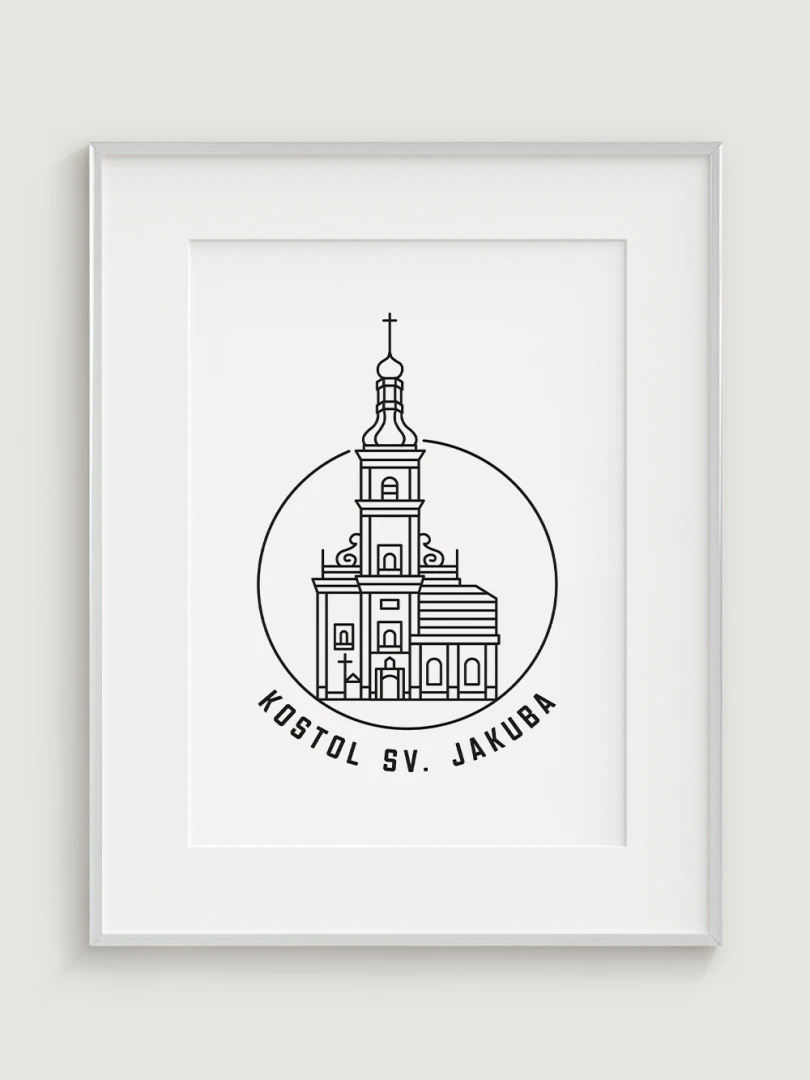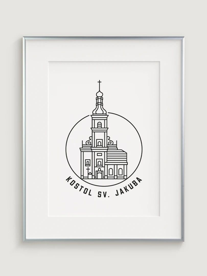 Tento minimalistický print štýlovo zobrazuje Kostol sv. Jakuba v Trnave, impozantnú gotickú stavbu, ktorá je významným symbolom náboženskej histórie a architektonického dedičstva mesta. Precízny dizajn zvýrazňuje nádherné línie a jedinečnú atmosféru tohto chrámu, ktorý predstavuje klenot trnavskej architektúry. Perfektný pre milovníkov histórie, architektúry a duchovnej tradície, tento kúsok dodá vášmu priestoru nádych elegancie a kultúrneho dedičstva.