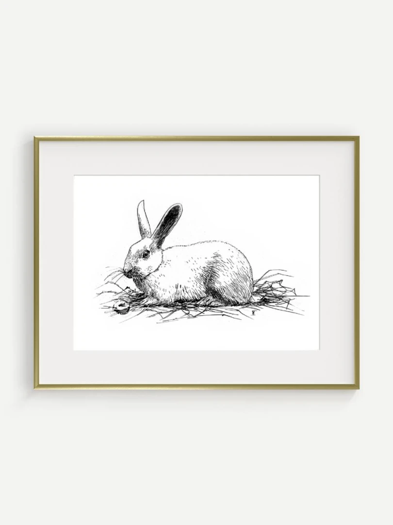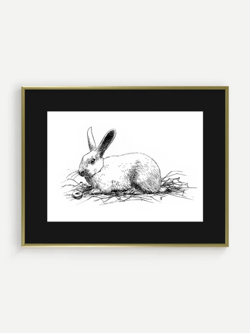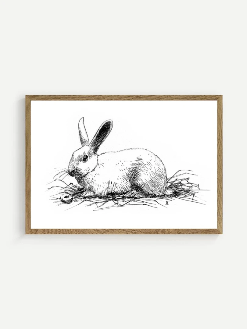 Print Králik sa skvelo hodí do interiérov s jemnou farebnosťou a záujmom o prírodné či ilustrátorské motívy. Výborne zapadne do detskej izby, štýlovej pracovne alebo čitárne, no krásne sa uplatní aj v minimalistickom alebo severskom priestore ako pokojný výtvarný akcent. Je to print, ktorý osloví každého, kto má rád minimalizmus, či králikov alebo zajačikov.