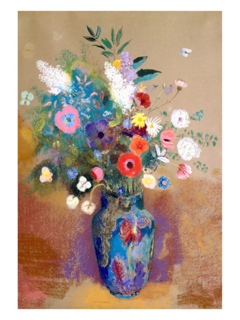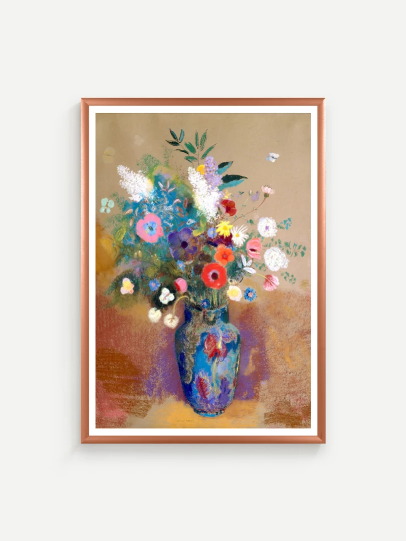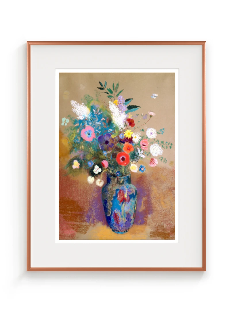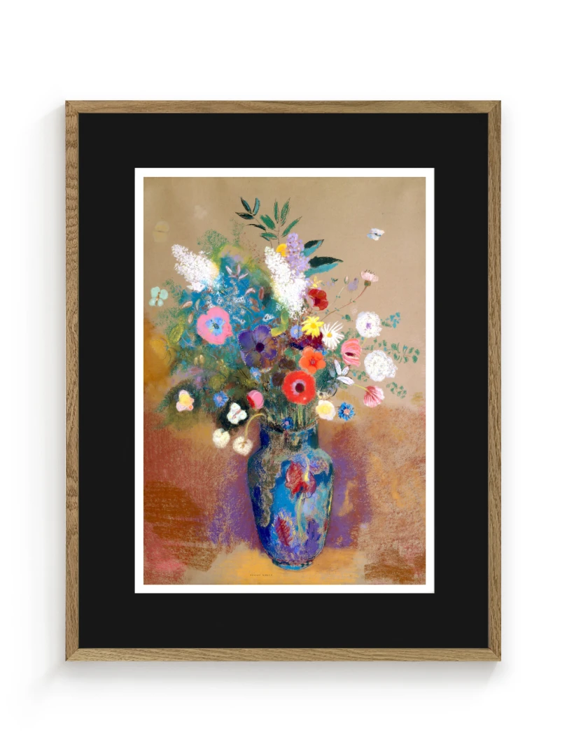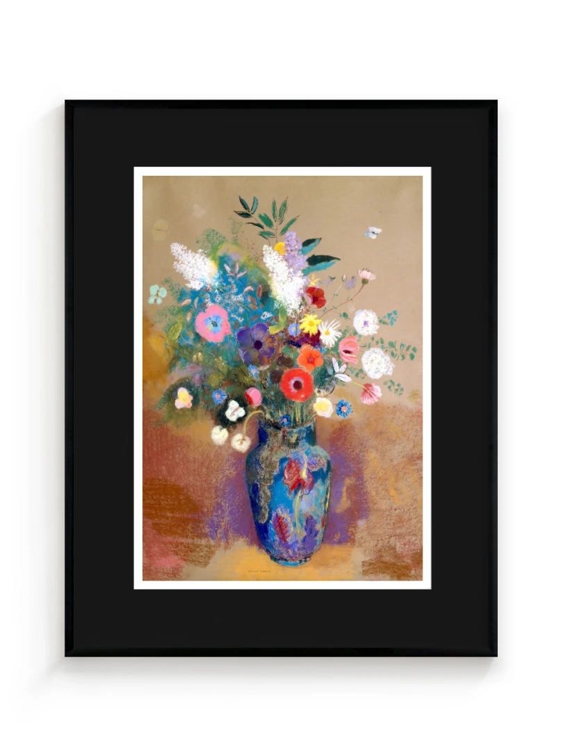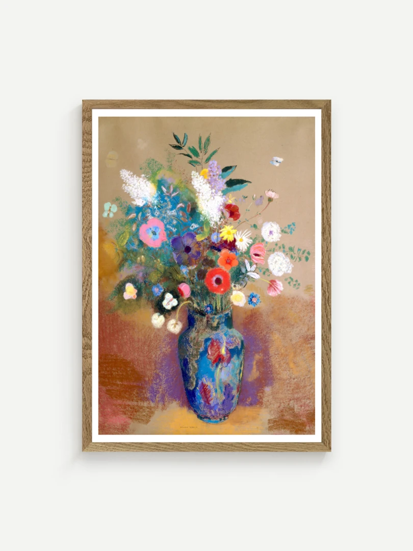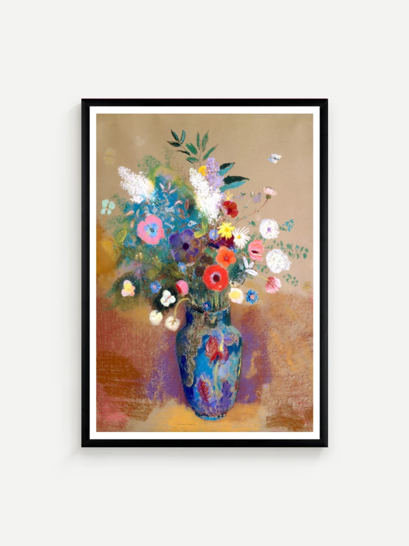 Tento print vychádza z obrazu Kytica kvetín (Bouquet of Flowers), ktorý Odilon Redon namaľoval približne v roku 1903. Na prvý pohľad ide o klasickú kyticu vo váze, no Redon ju premieňa na víziu: kvety ako farebné svetlá plávajúce v priestore, akoby vznikli z nálady, nie z prírody. Kompozícia je voľná a vzdušná.