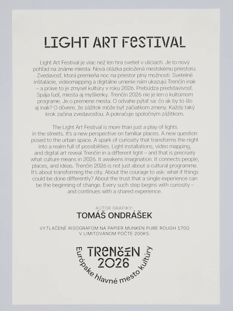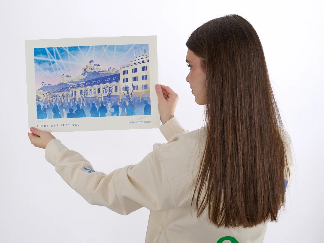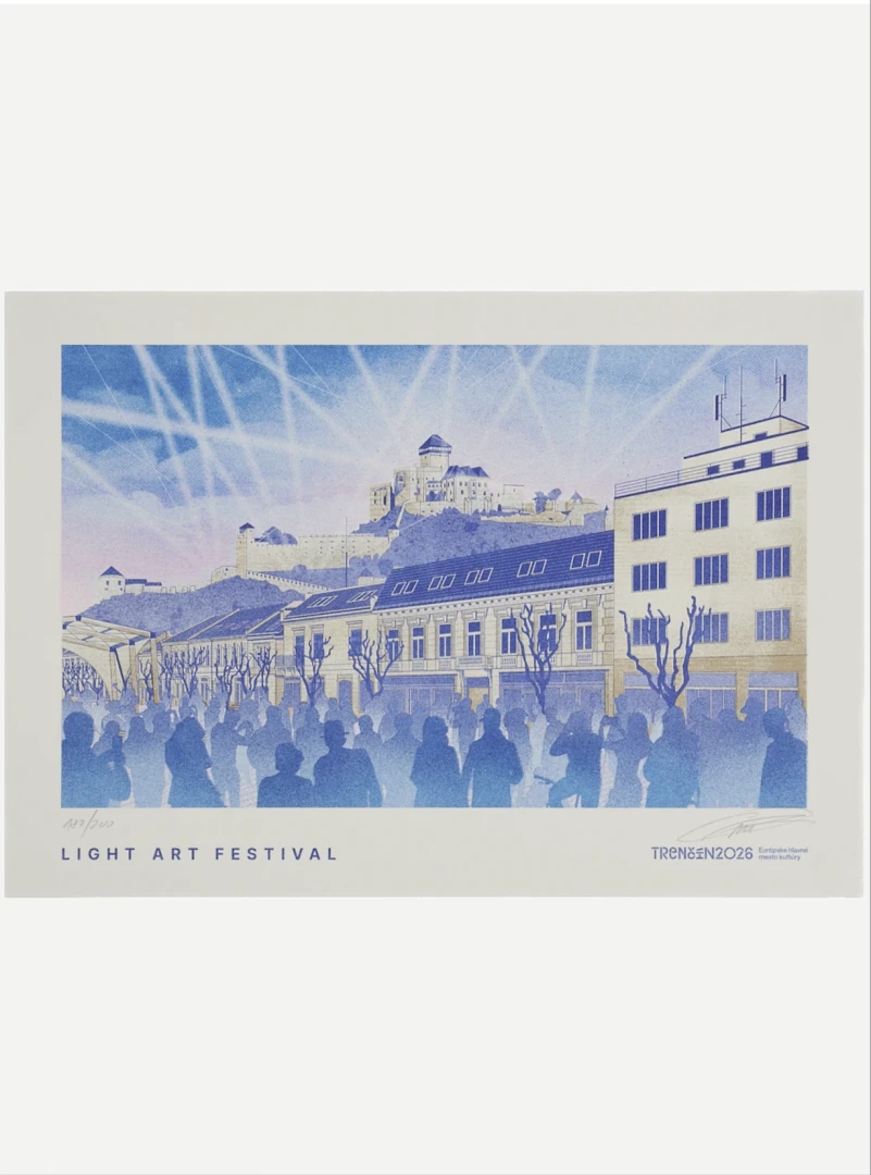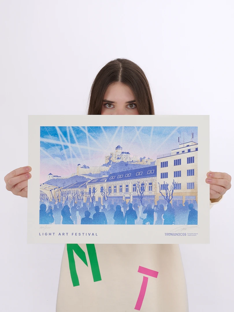 Autorskú grafiku vytvoril Tomáš Ondrášek a limitovaná edícia z neho robí zberateľský kúsok – séria umeleckých printov Trenčín 2026 bude pokračovať aj v ďalších edíciách.