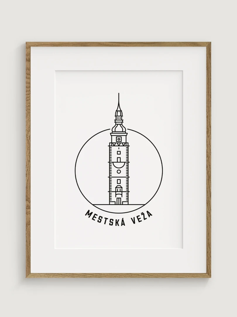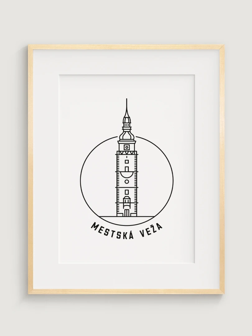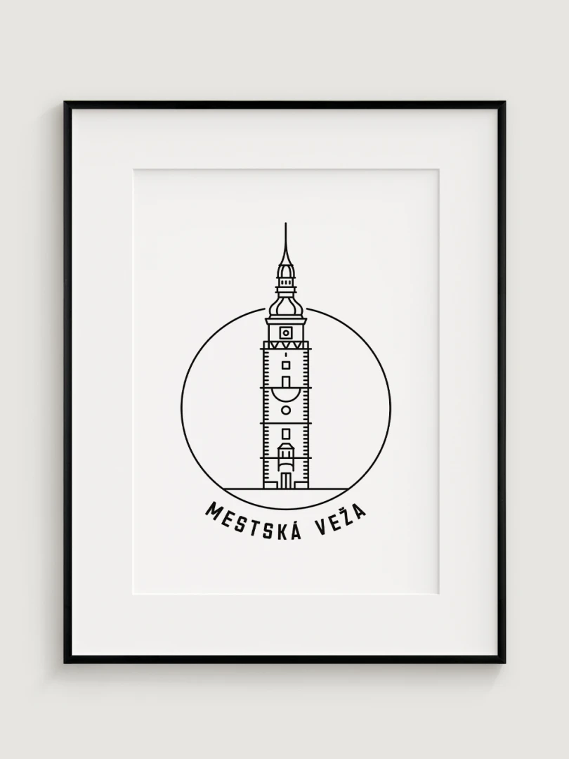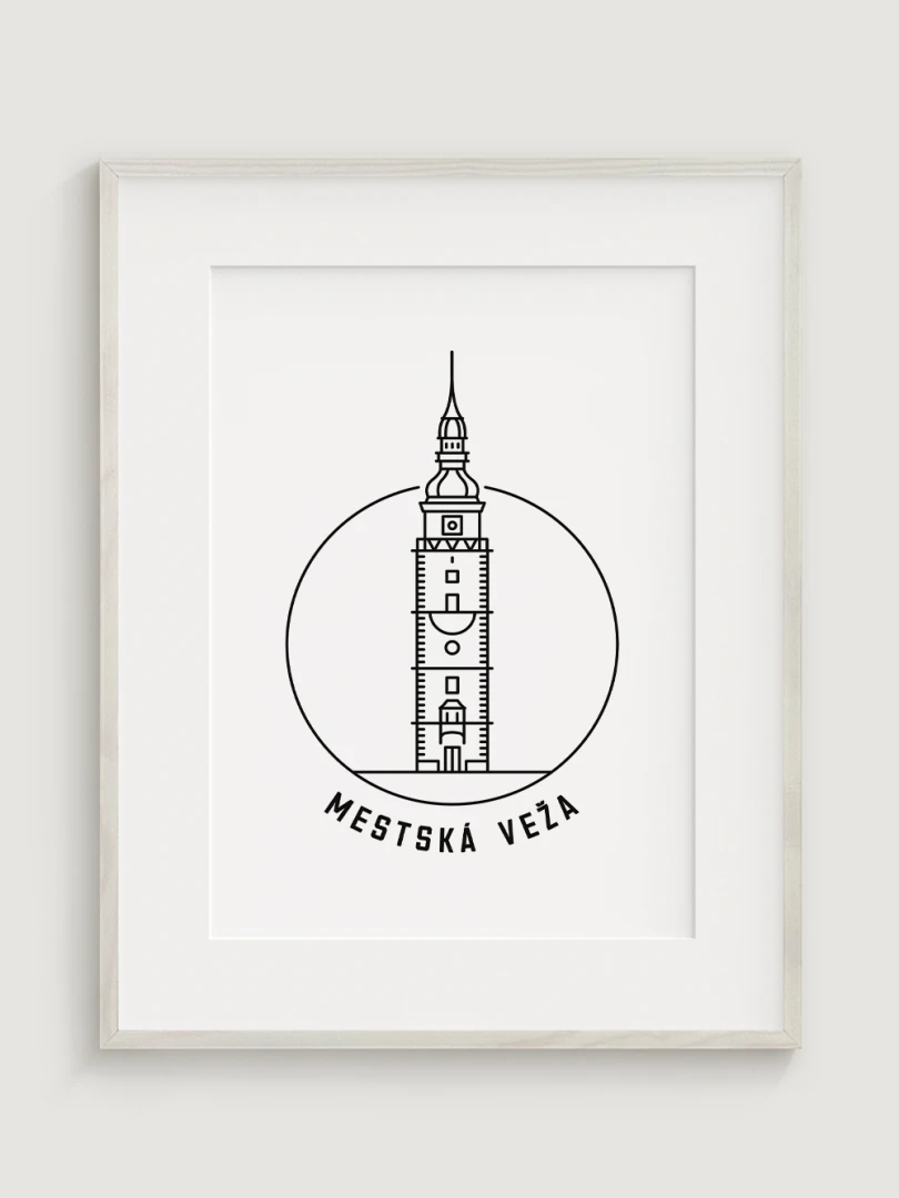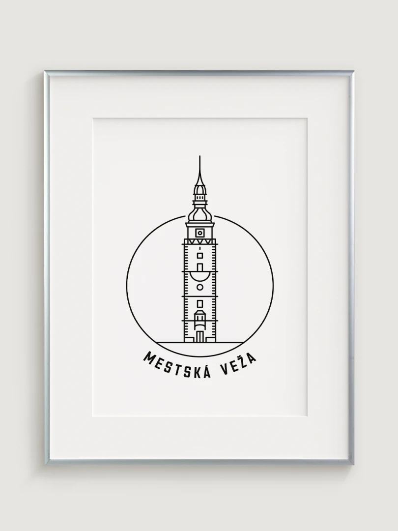 Tento minimalistický print štýlovo zobrazuje Mestskú vežu v Trnave, významnú renesančnú dominantu, ktorá je neodmysliteľnou súčasťou panorámy mesta. Detailný a elegantný dizajn zachytáva jej majestátnosť a architektonický pôvab. Perfektný pre tých, ktorí milujú históriu, architektúru a mestské symboly, tento kúsok dodá vášmu priestoru nádych trnavského kultúrneho a historického dedičstva.