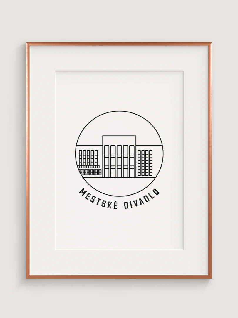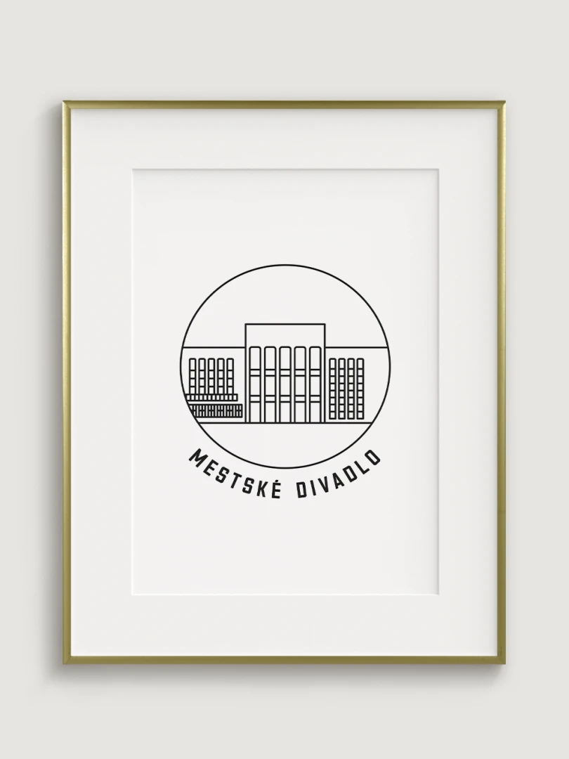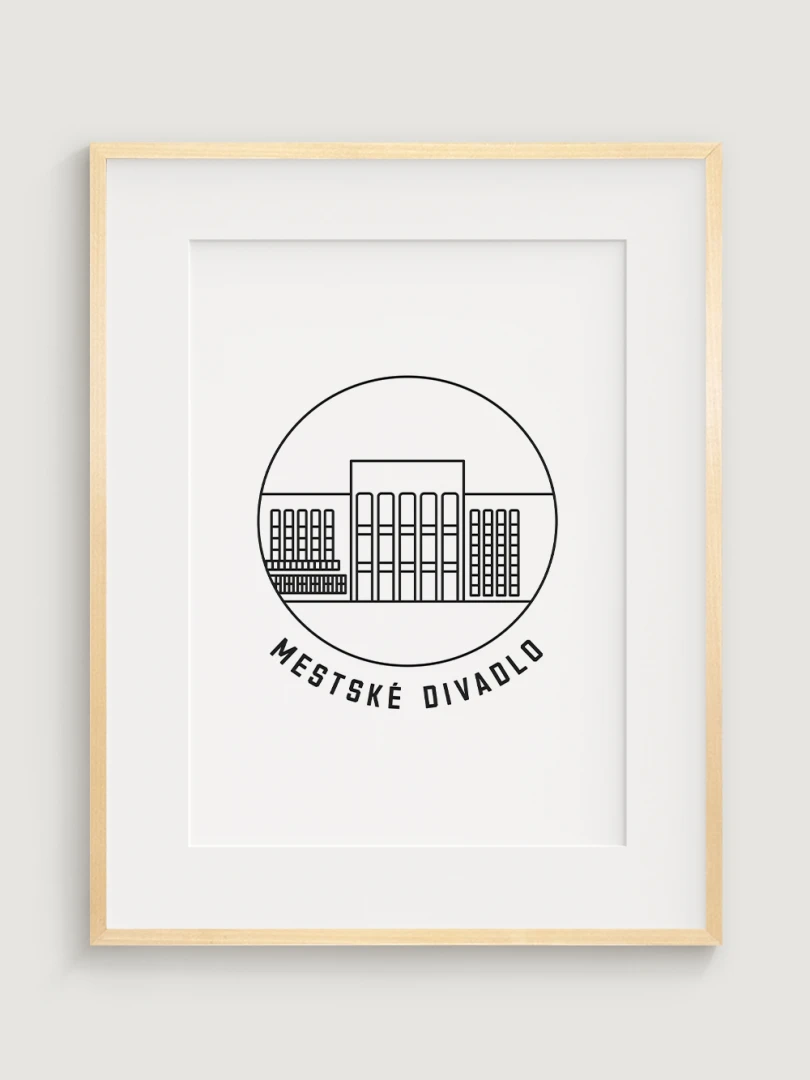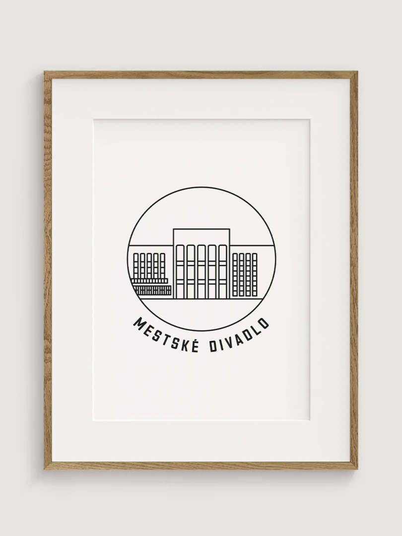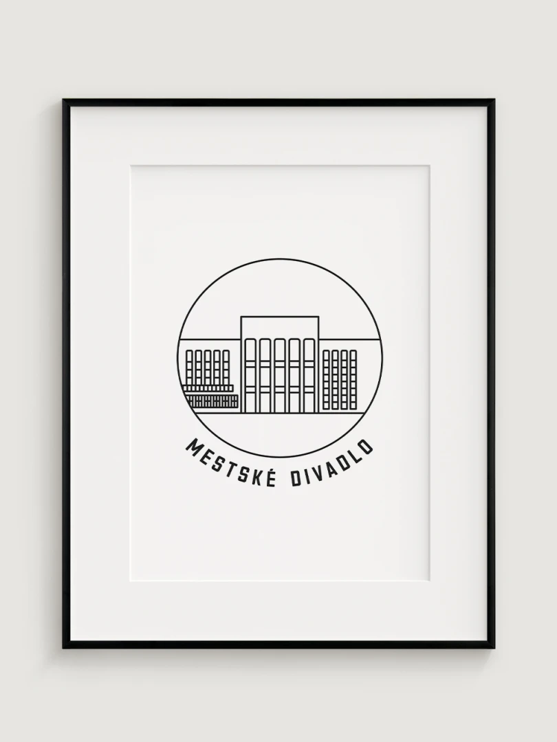 Tento print predstavuje štýlizované, minimalistické zobrazenie Mestského divadla v Žiline, budovy, ktorá spája historický a moderný dizajn s kultúrnym významom. Vypracovaný s jemnou čiernou linkovou kresbou na kvalitnom papieri, táto ilustrácia zachytáva čisté línie a formy divadla v nadčasovom a elegantnom štýle.