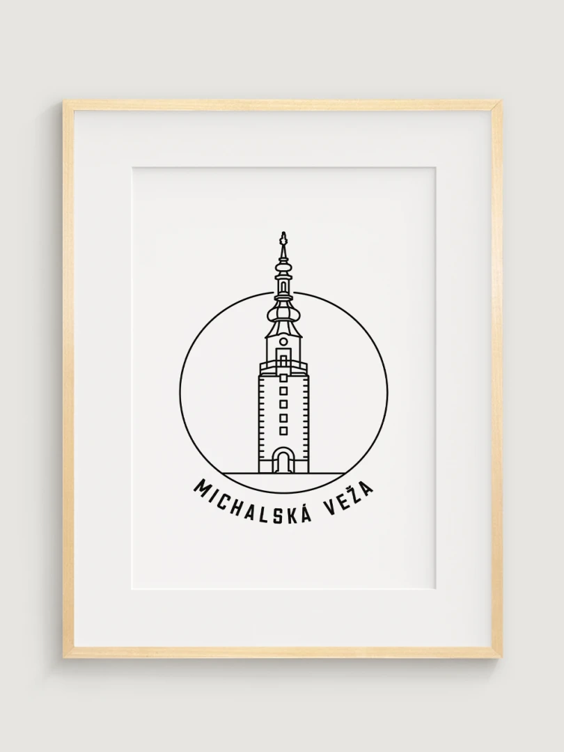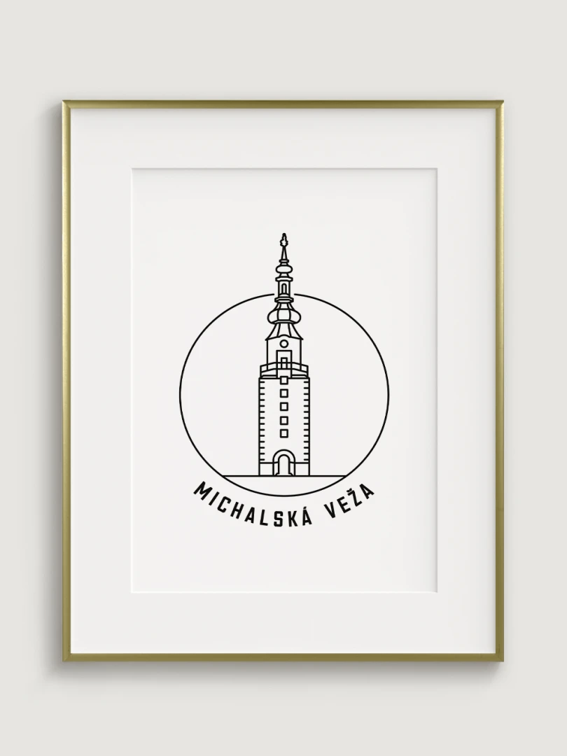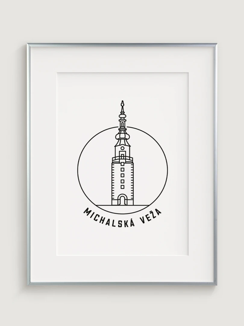 Tento umelecký print štýlovo zobrazuje ikonickú Michalskú vežu, historickú dominantu Bratislavy, ktorá je jedinou zachovanou mestskou bránou zo stredoveku. Elegantný, lineárny dizajn zachytáva jedinečnosť tejto pamiatky a jej symbolického významu. Perfektný pre tých, ktorí oceňujú históriu, architektúru a jedinečné detaily, tento kúsok dodá vášmu priestoru nádych kultúrneho dedičstva.