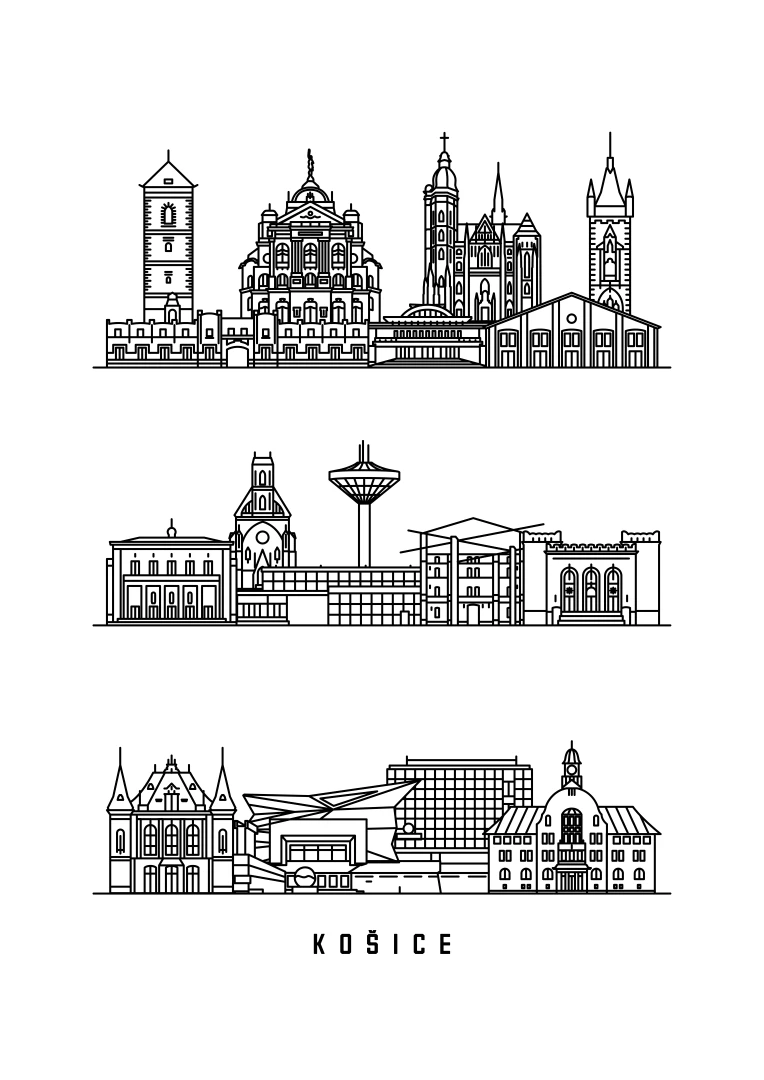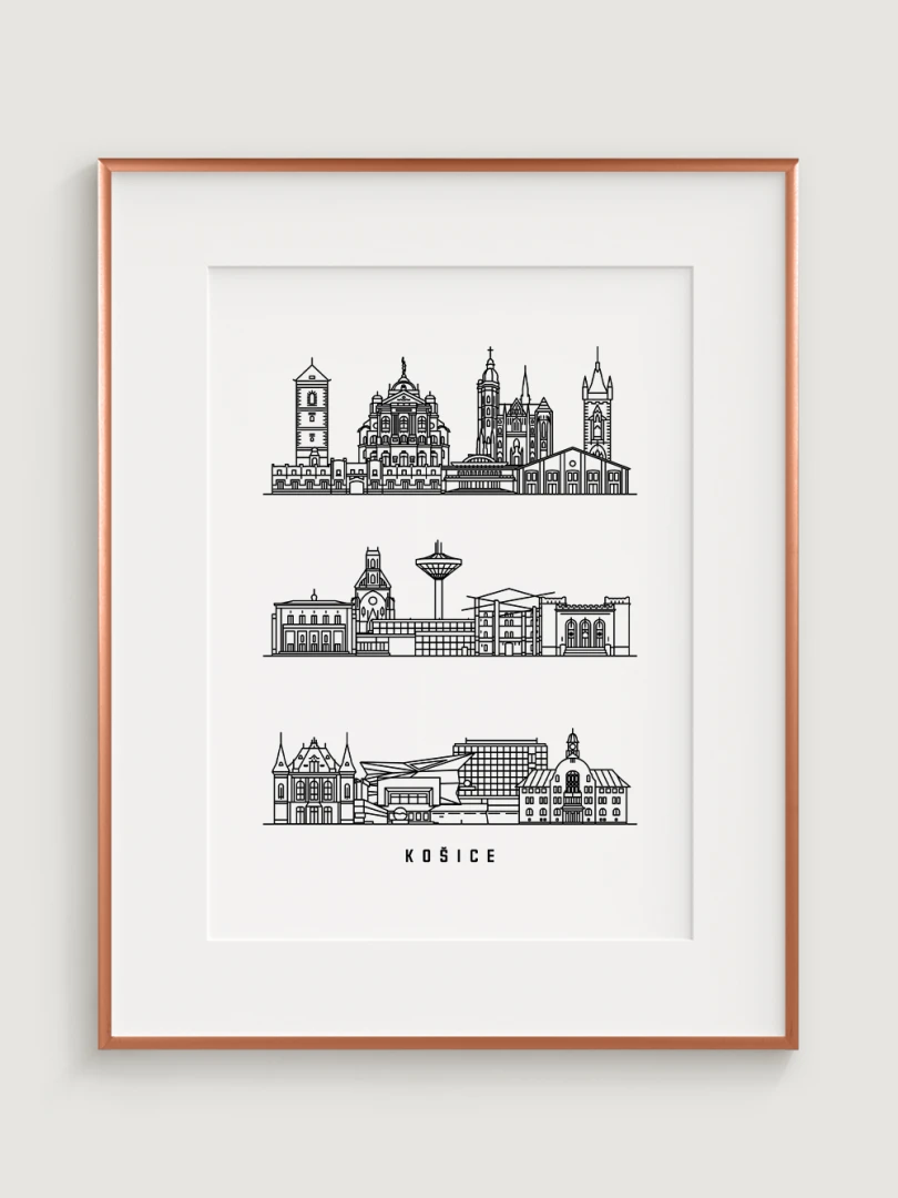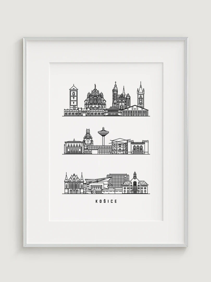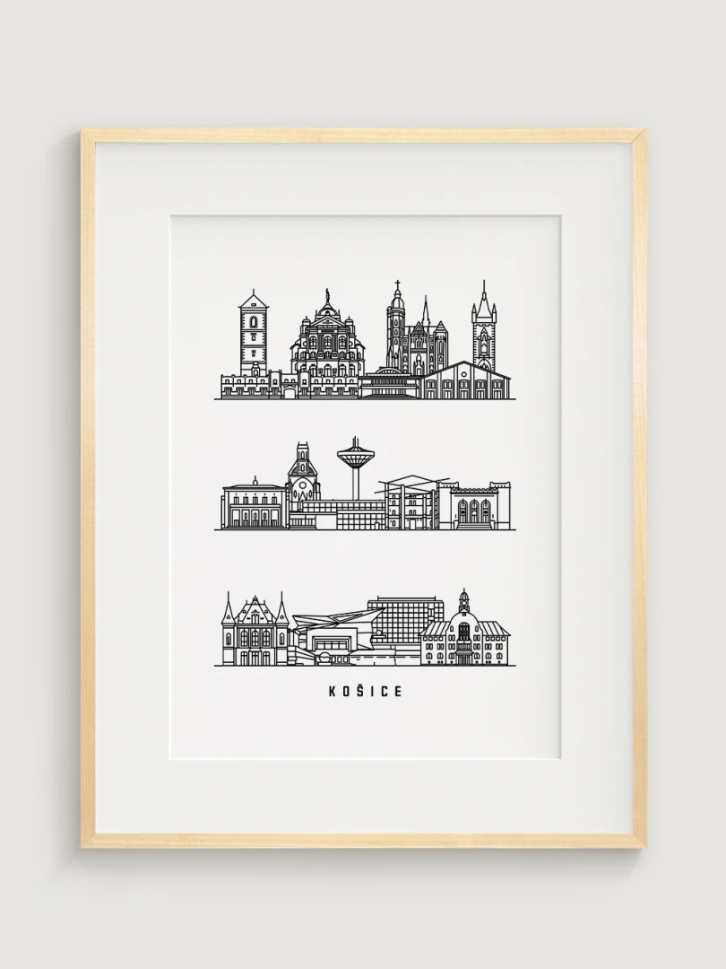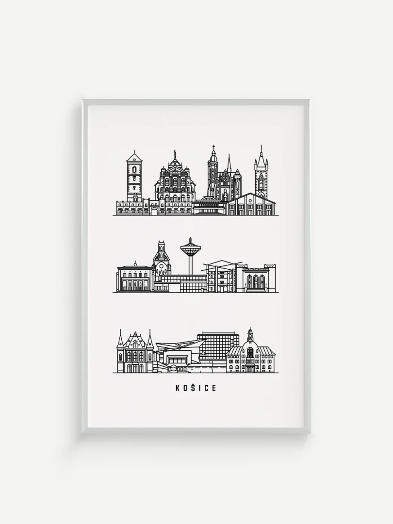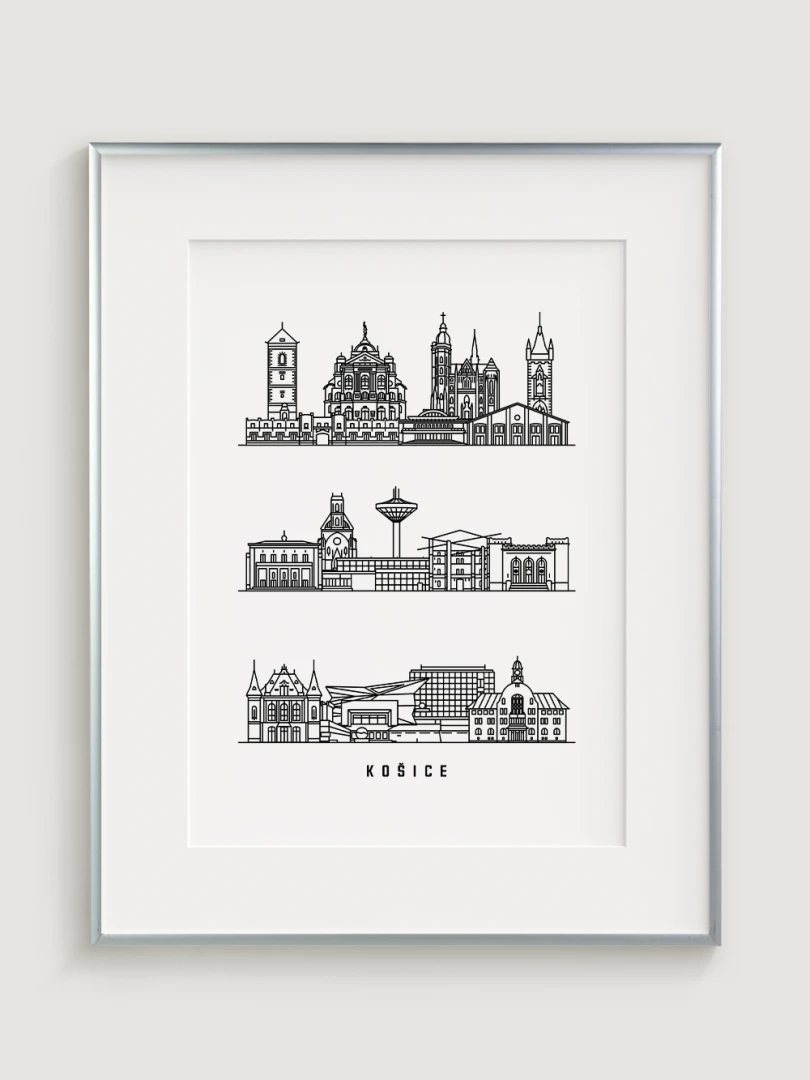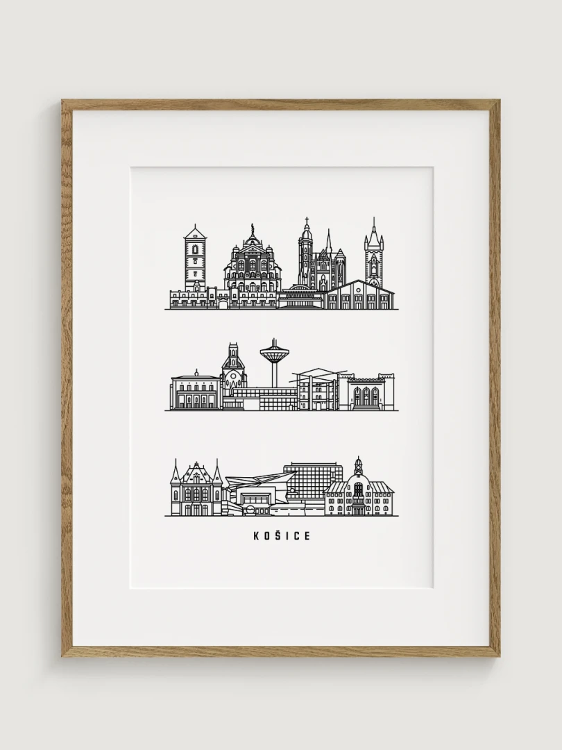 Tento print zachytáva podstatu historickej a architektonickej krásy Košíc prostredníctvom elegantnej, lineárnej kresby najikonickejších pamiatok mesta. Každý ťah je starostlivo vypracovaný tak, aby zvýraznil jedinečný panoramatický pohľad Košíc, čo z neho robí dokonalý kúsok pre milovníkov architektúry a minimalistického dizajnu.