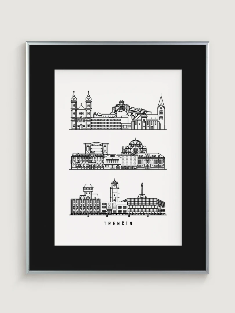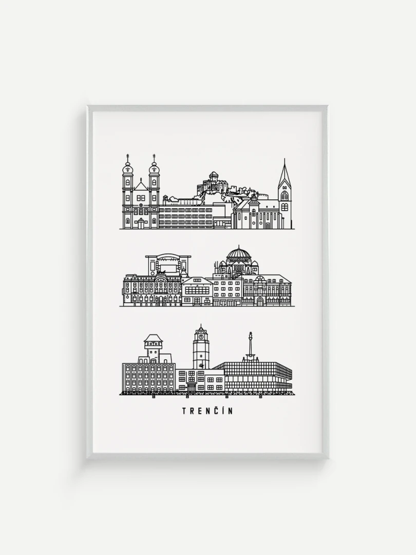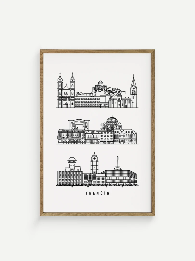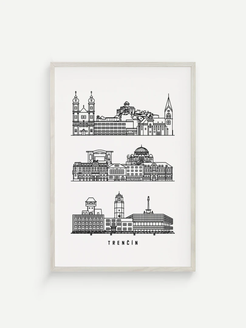 Tento print zachytáva podstatu historickej a architektonickej krásy Trenčína prostredníctvom elegantnej, lineárnej kresby najikonickejších pamiatok mesta. Každý ťah je starostlivo vypracovaný tak, aby zvýraznil jedinečný panoramatický pohľad Trenčína, čo z neho robí dokonalý kúsok pre milovníkov architektúry a minimalistického dizajnu.