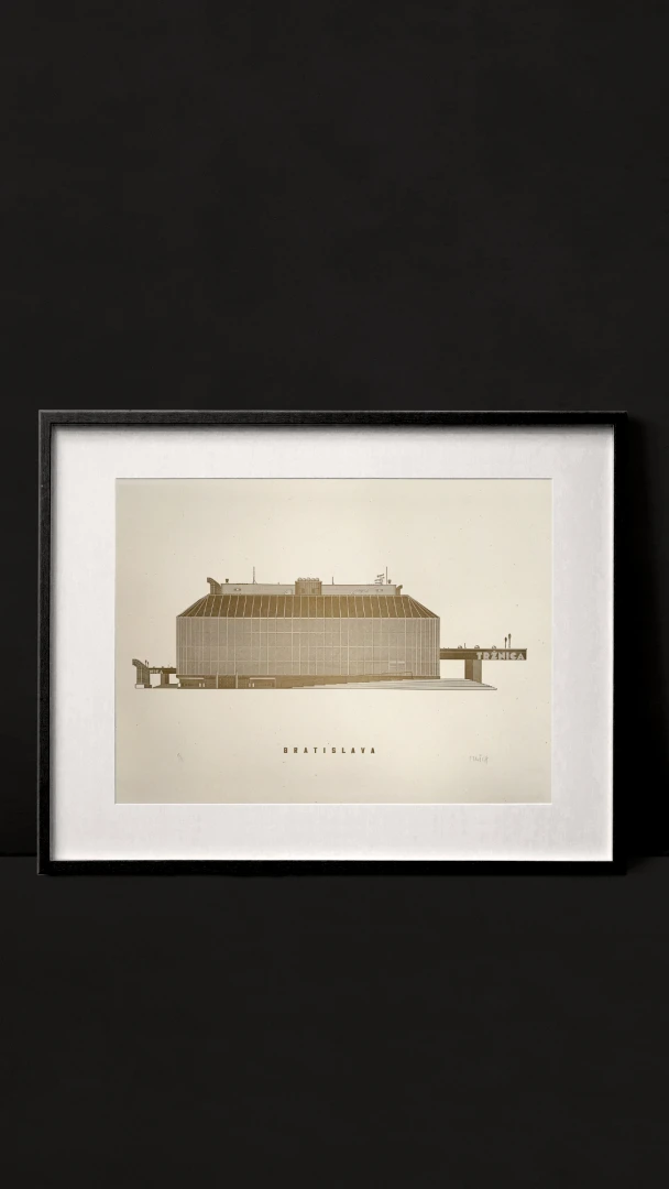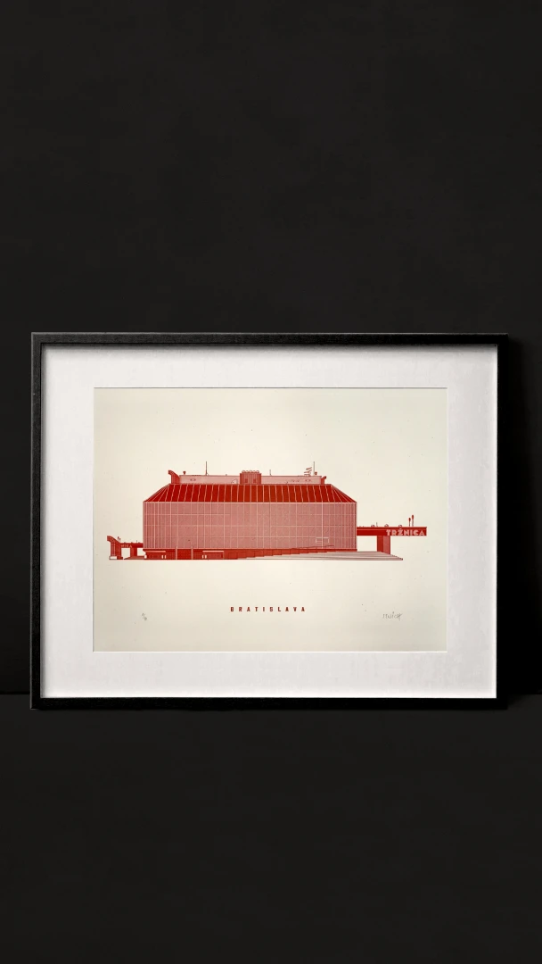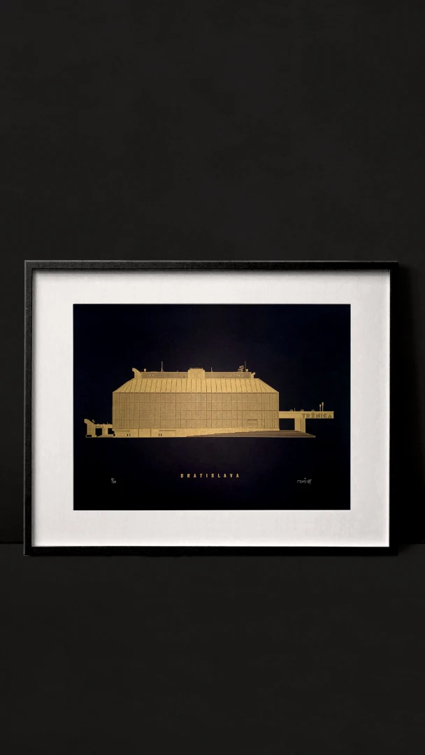 Ivan Matušík počas svojho dlhého a plodného života vytvoril (nielen) v Bratislave viacero ikonických stavieb. Odvážna realizácia tržnice na Trnavskom mýte z roku 1981 bola odozvou na absenciu mestskej tržnice, nakoľko priestory Starej tržnice v tom čase využívala Československá televízia. Matušík navrhol transparentnú stavbu v štýle hi - tech s jasným odkazom na parížsky Centre Pompidou. Tržnica, ako mnohé stavby éry 48 – 89, dlho chátrala a uvažovalo sa o jej búraní. Dnes jej však svitá na lepšie časy, prechádza značnou rekonštrukciou a je viac než žiaduce, aby dostala pamiatkovú ochranu. — Vytvorené v spolupráci s @noistypo na starom analogovom ručonom tlačiarenskom stroji zo 70 rokov minulého storočia v Novej Cvernovke a v 5 farbách v limitovaných počtoch 30 kusov zo zlatej na čiernom papiery a čiernej farby a 20 kusov z modrej a 10ks zo zlatej a tmavočervenej verzie. Dotlač nebudeme robiť. — Autor textu: Štefan Cipár — Autor printu: Jozef Mnich — Formát printu: A3 — Maximálne 2ks na 1 objednávku. — Rám nie je súčasťou balenia