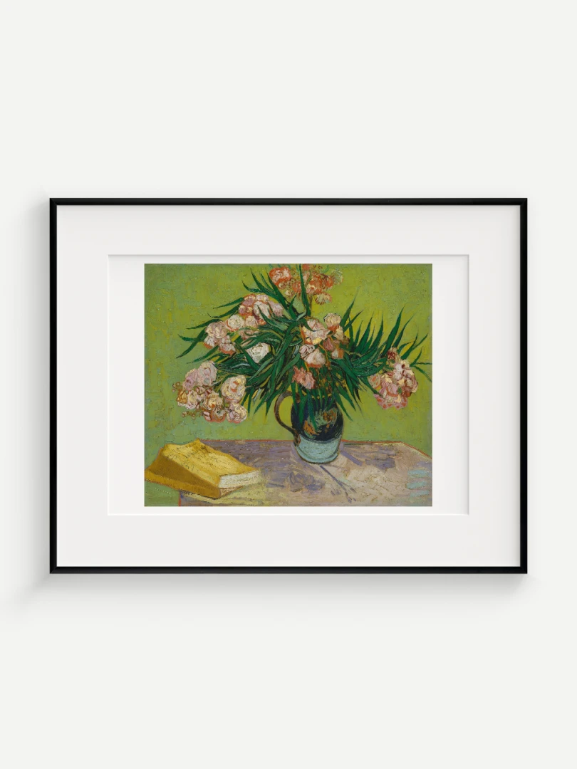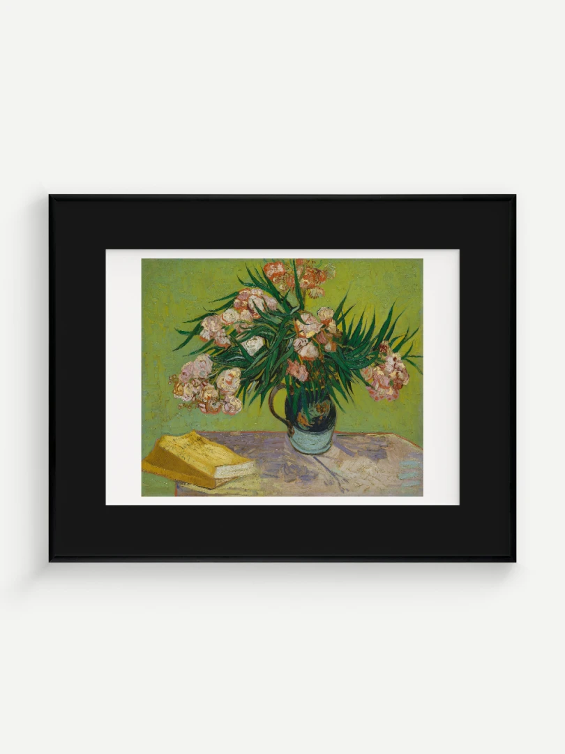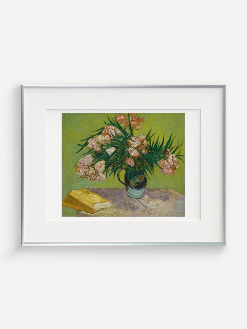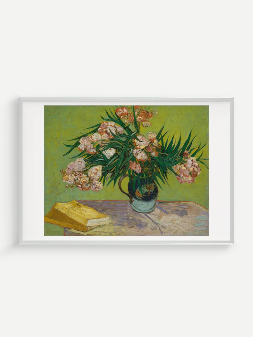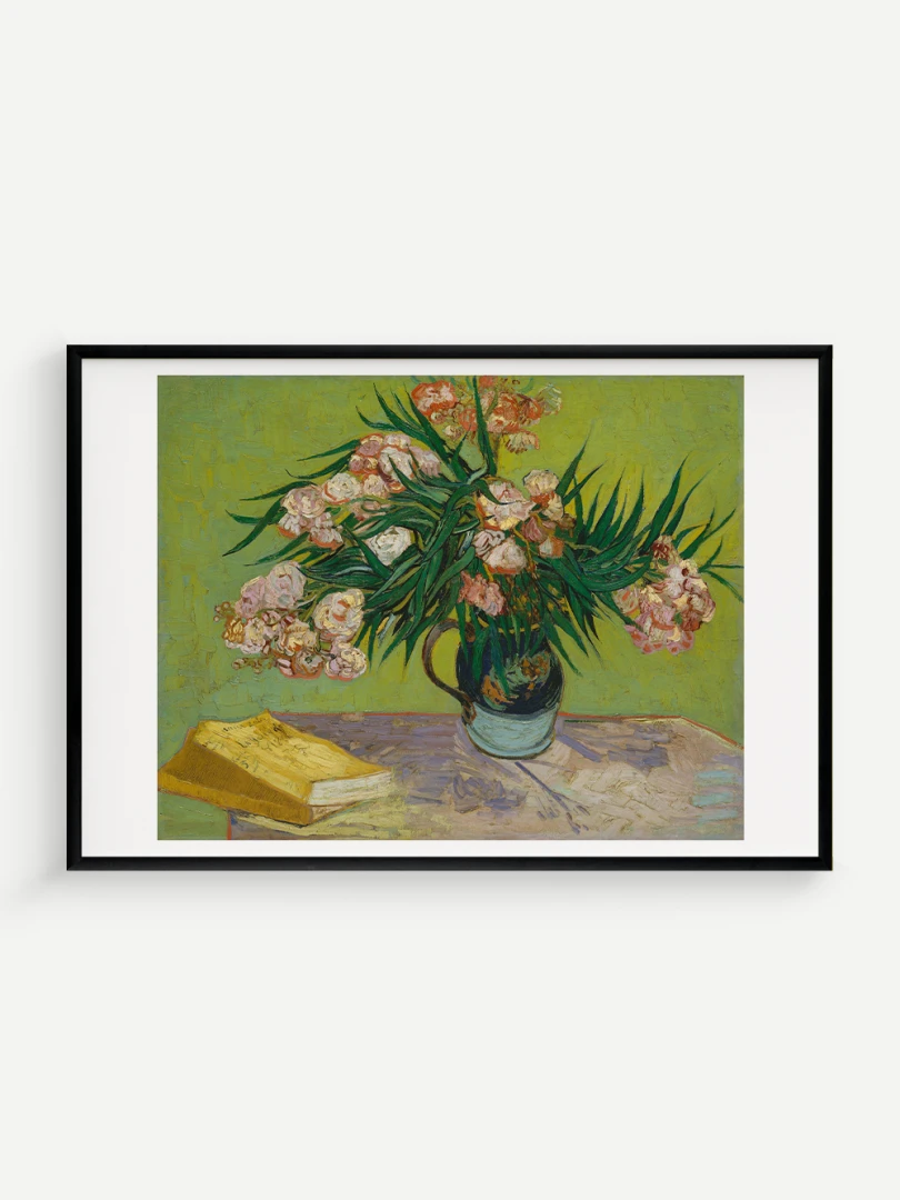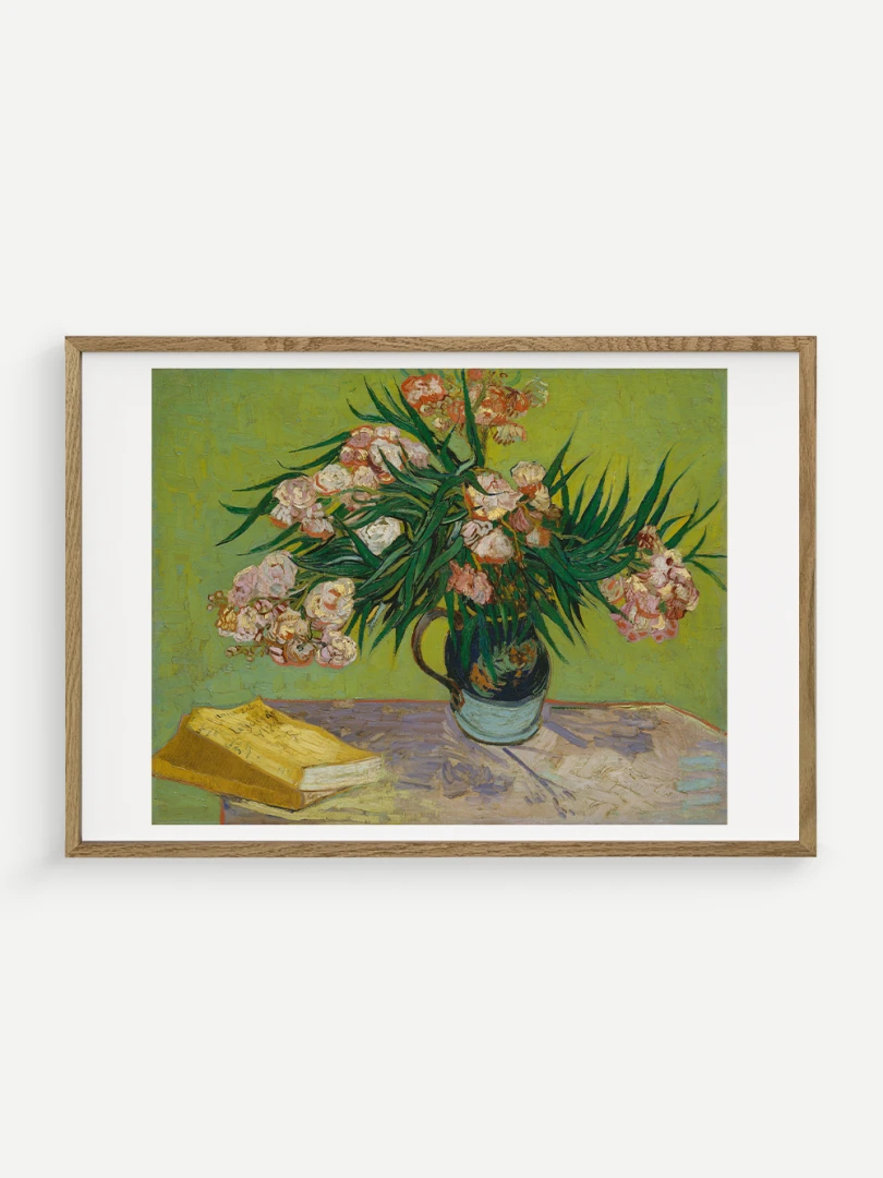 Tento žiarivý print Oleandrov (Oleanders) vychádza z diela, ktoré Vincent van Gogh namaľoval v auguste 1888 počas svojho pobytu v Arles. Pre Van Gogha mali oleandre špeciálny význam – vnímal ich ako kvety, ktoré prekypujú radosťou a životnou silou. Kvety, ktoré podľa neho „nekonečne kvitnú“ a neustále „vyrážajú nové výhonky“.