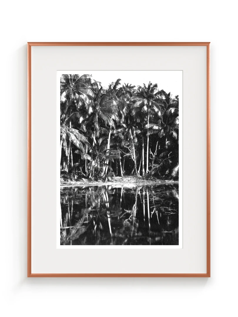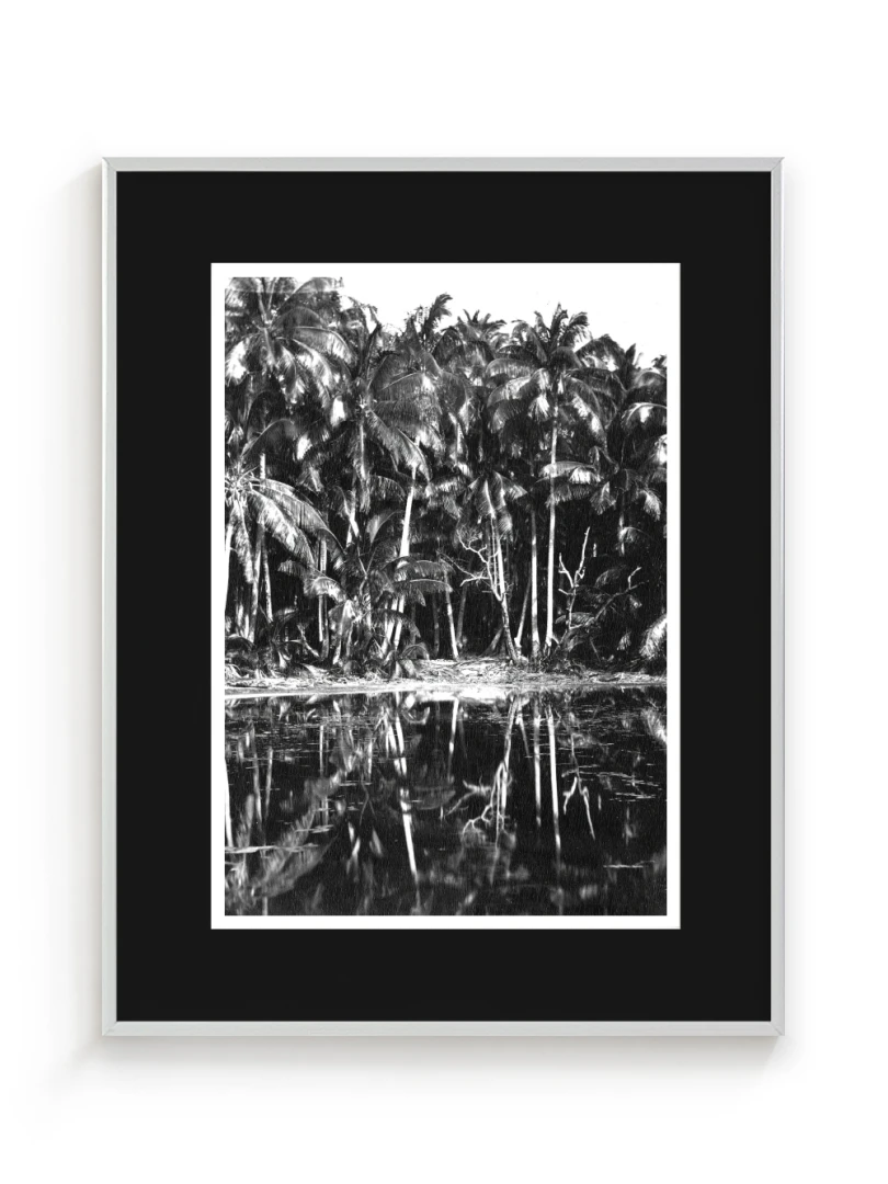 Print "Palmy" sa výborne hodí do moderných a minimalistických, kde doplní neutrálne farebné schémy a prirodzené materiály. Funguje aj ako elegantný kontrast v tmavších miestnostiach so sivými prvkami. V kancelárii, štúdiu či vstupnej chodbe dodá vizuálnu hĺbku bez toho, aby pôsobil rušivo. Vďaka svojmu čiernobielemu spracovaniu a decentnej kompozícii je univerzálne zavesiteľný a dobre sa kombinuje s inými grafikami alebo fotografiami.