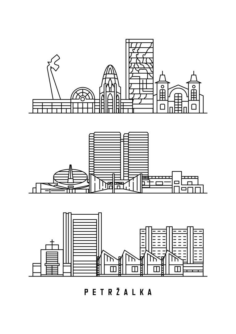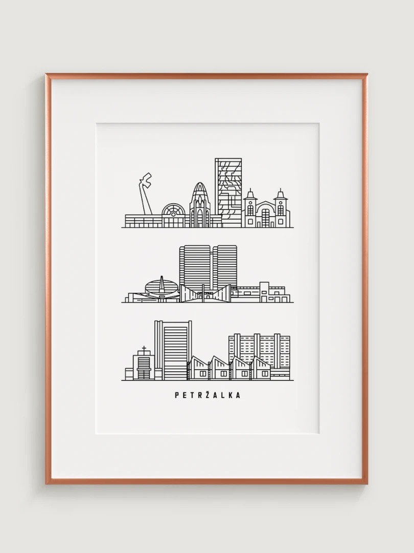 Tento štýlový a elegantný kúsok zachytáva podstatu jednej z najikonickejších častí Bratislavy, kde sa mieša historická architektúra s modernými budovami, všetko predstavené v čistom, minimalistickom štýle linkovej kresby. Každá budova je zobrazená s presnosťou a jednoduchosťou, čo ju robí perfektným doplnkom pre každý moderný domov alebo kancelársky dekor.
