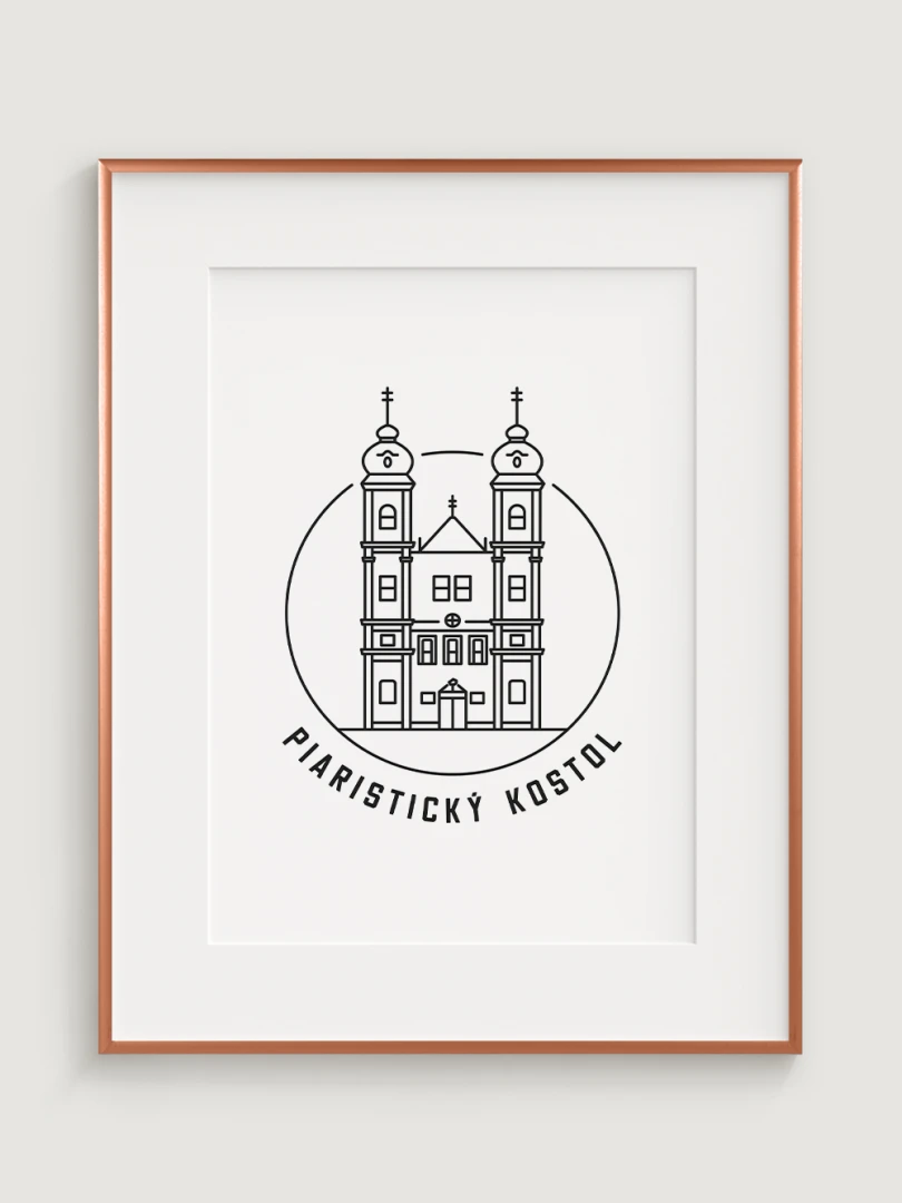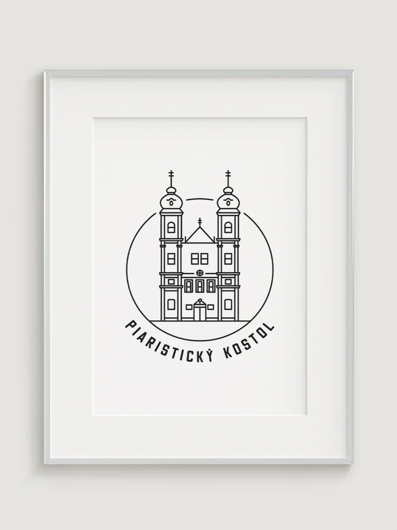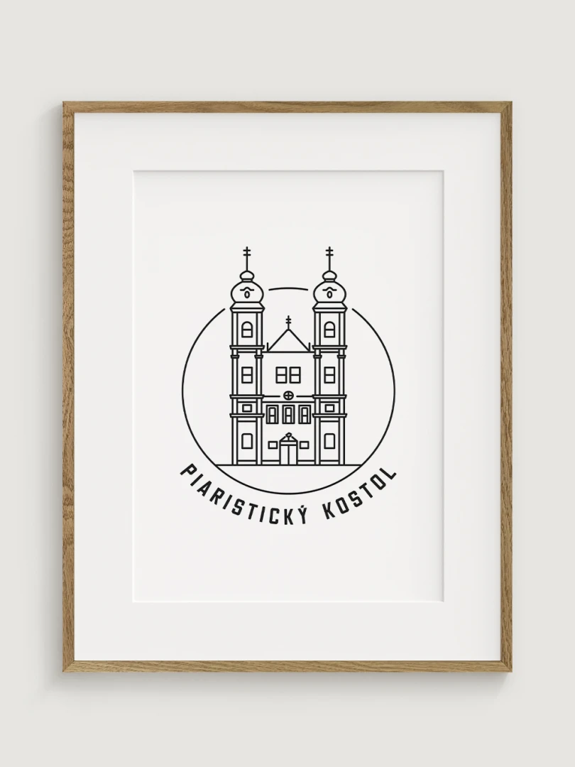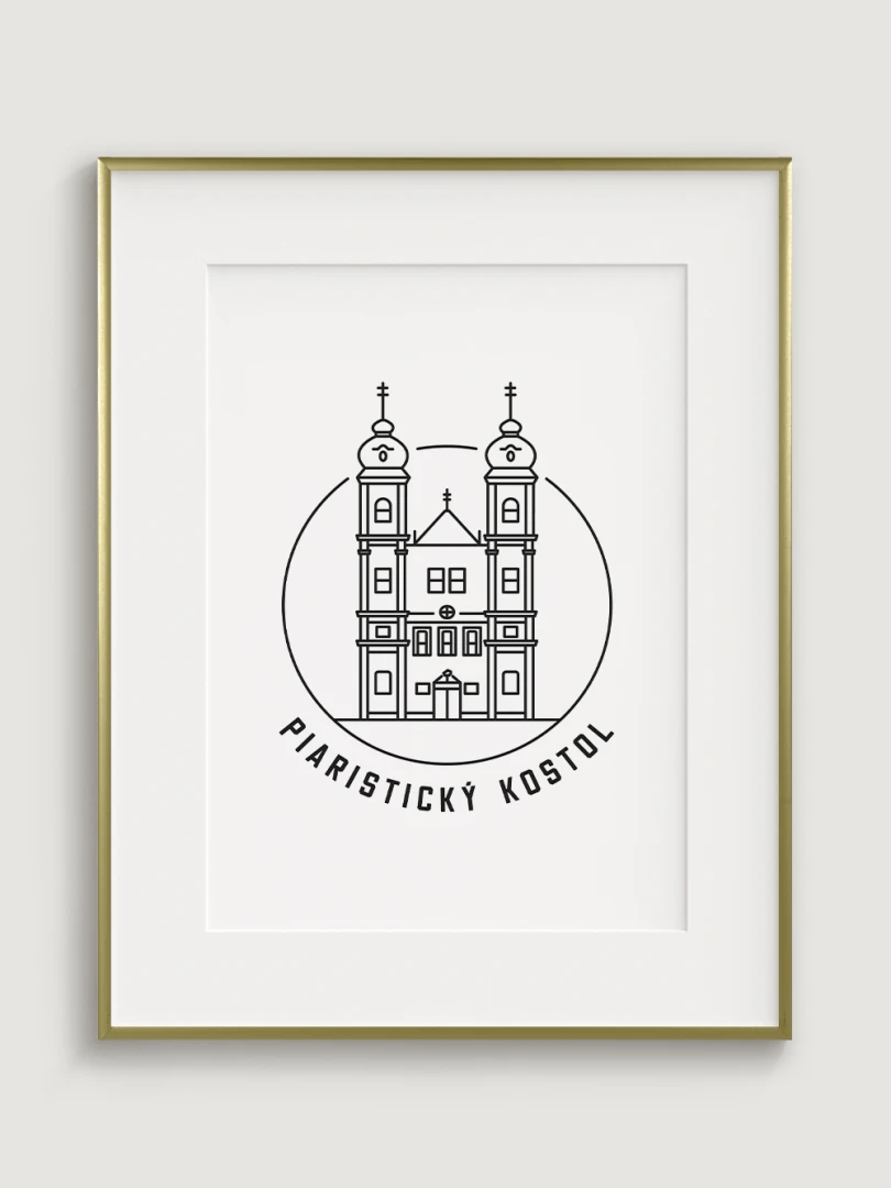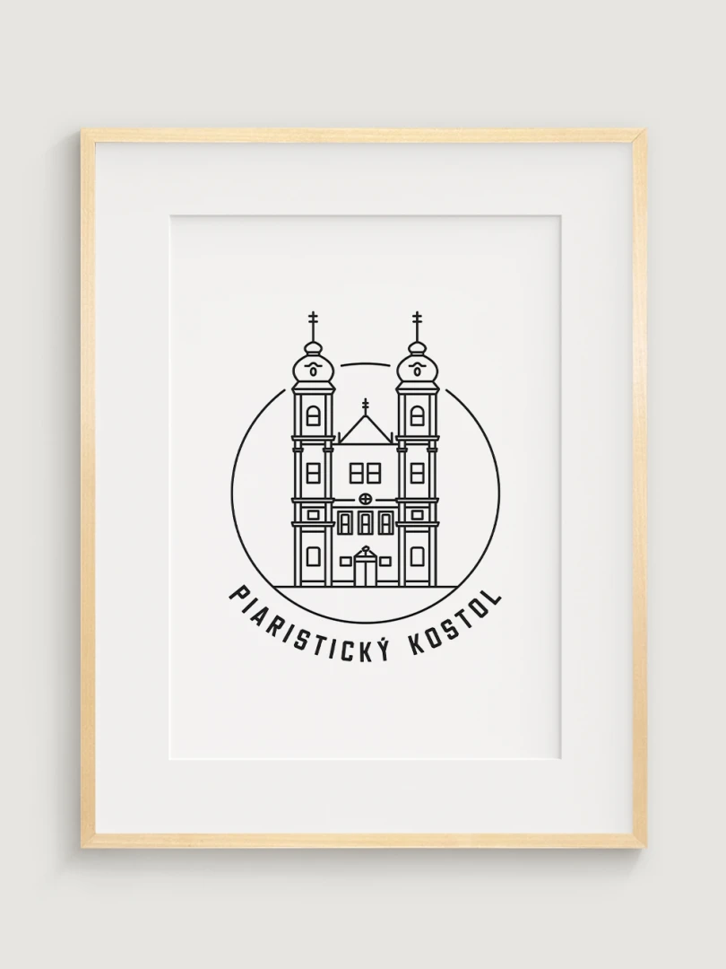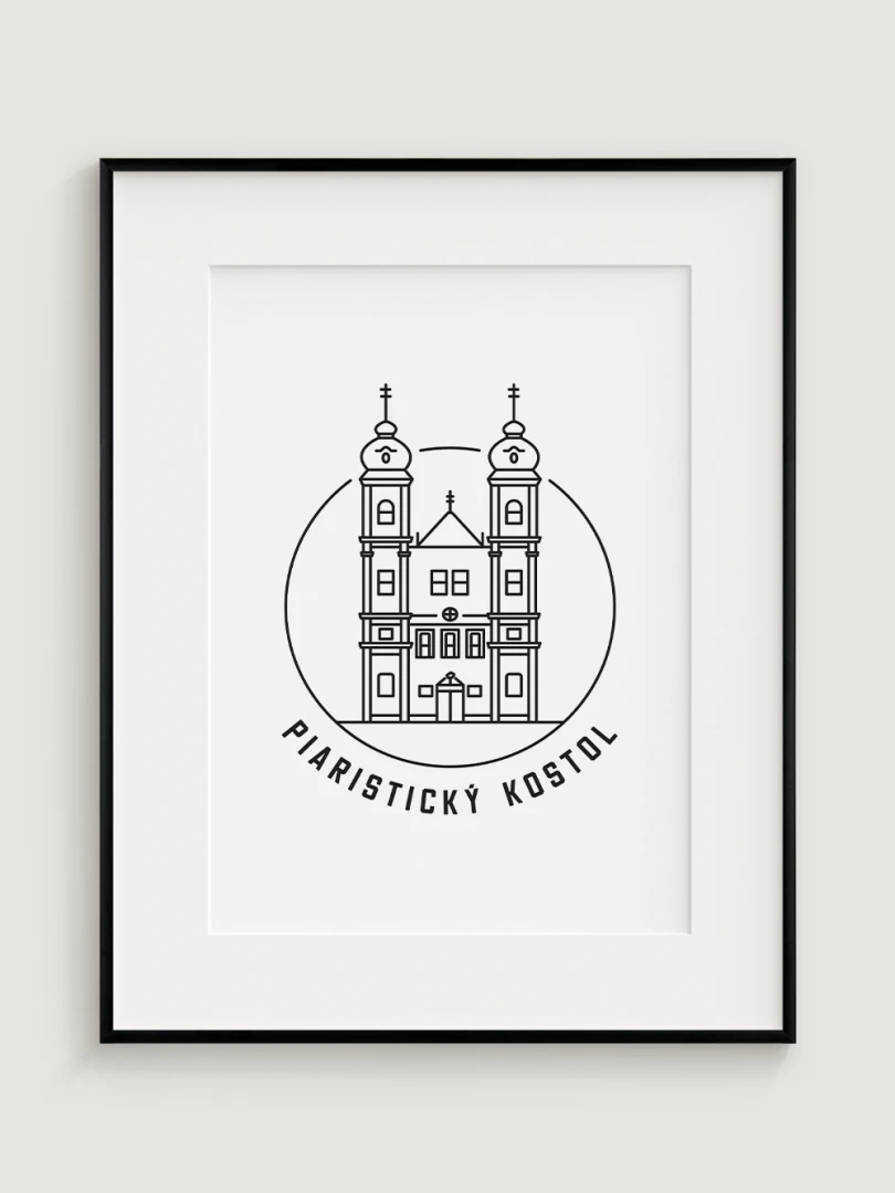 Tento minimalistický print štýlovo zobrazuje Piaristický Kostol v Trenčíne, impozantnú barokovú stavbu, ktorá patrí medzi najvýznamnejšie historické dominanty mesta. Detailný dizajn zvýrazňuje jeho charakteristické architektonické prvky a pripomína bohatú tradíciu piaristického rádu v Trenčíne. Perfektný pre milovníkov histórie, sakrálnej architektúry a kultúrneho dedičstva, tento kúsok dodá vášmu priestoru nádych elegancie a histórie.