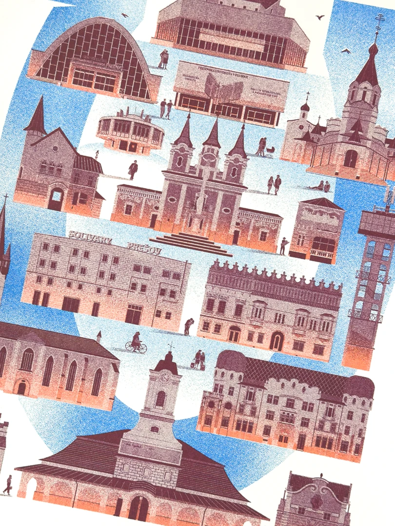 V smere od Košíc nás mesto privíta ikonickou autobusovou stanicou od architekta Jozefa Rijáka. Na Hlavnej ulici dominuje Katedrála sv. Mikuláša, postavená v 14. storočí, zatiaľ čo neďaleký Chrám sv. Alexandra Nevského na Pavlovičovom námestí odkazuje na pravoslávnu tradíciu mesta. Nad mestom sa týči Kalvária pochádzajúca z 18. storočia, ktorá nám poskytne nádherný výhľad na celé mesto, a keď prejdeme ďalej, narazíme aj na zvyšky mestského opevnenia. Na opačnej strane Prešova, v časti Solivar, kde sa ťažba soli začala už v 16. storočí, môžeme obdivovať industriálnu budovu solivaru, ktorá patrí k najstarším technickým pamiatkam v regióne. Modernú technickú históriu mesta si pripomíname aj vodárenskou vežou z 20. storočia na námestí Národného povstania, či vodárňou v Ľuboticiach, pred ktorou sa však v súčasnosti týči nákupný komplex.