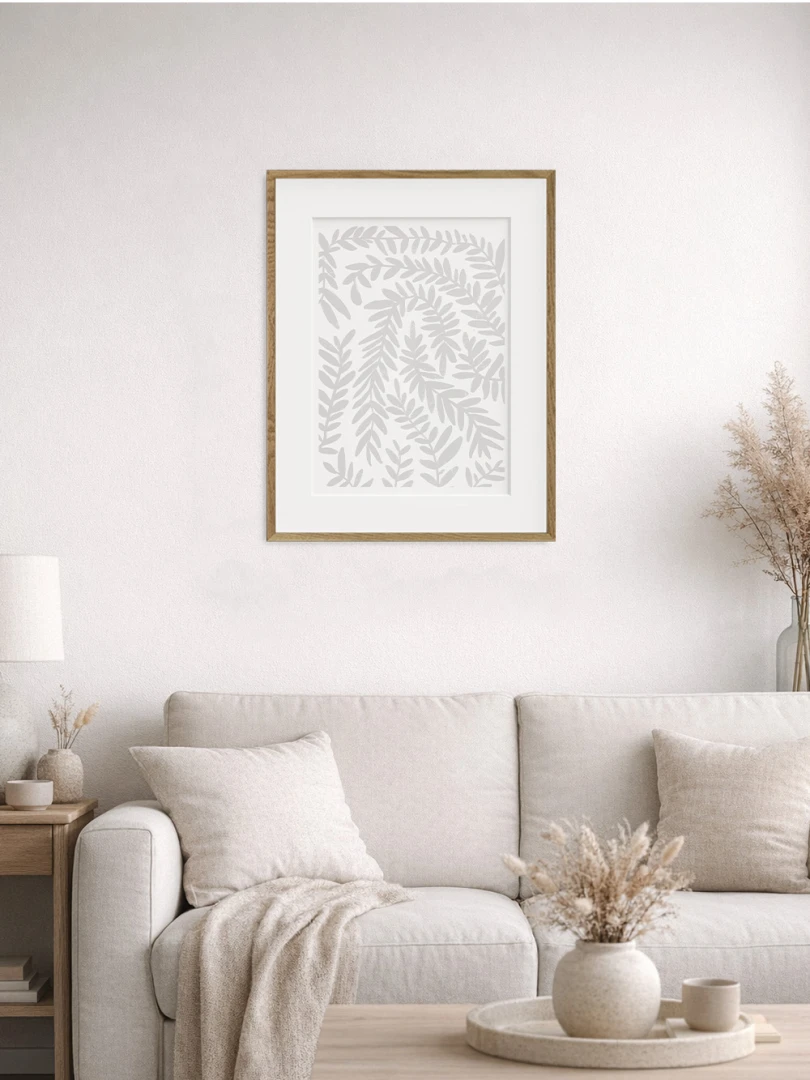 Predstavujeme vám tento minimalistický umelecký print, ktorý zobrazuje jednoduchosť šedého vavrínu.