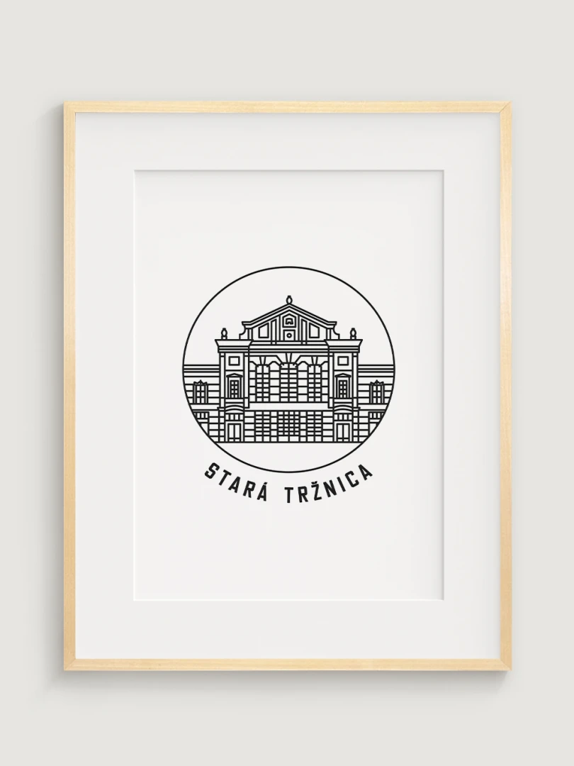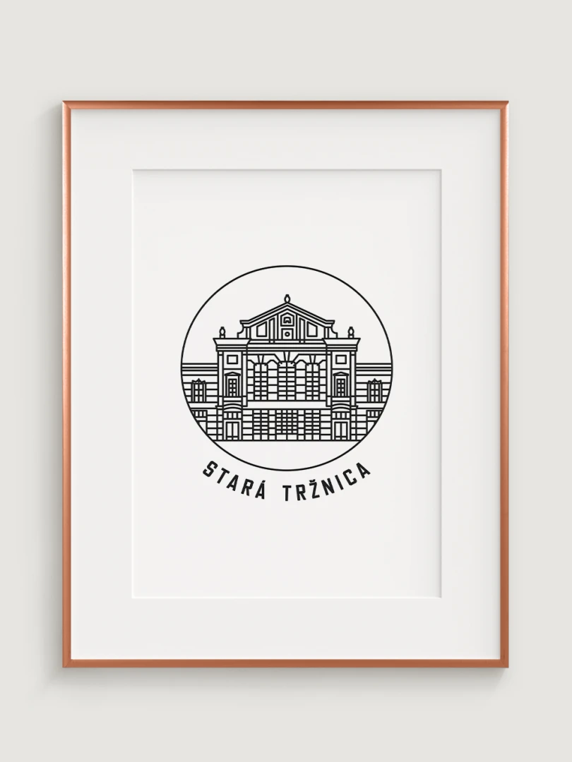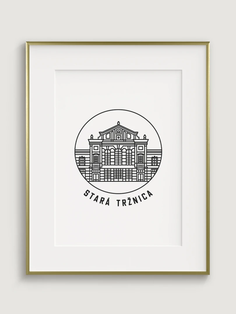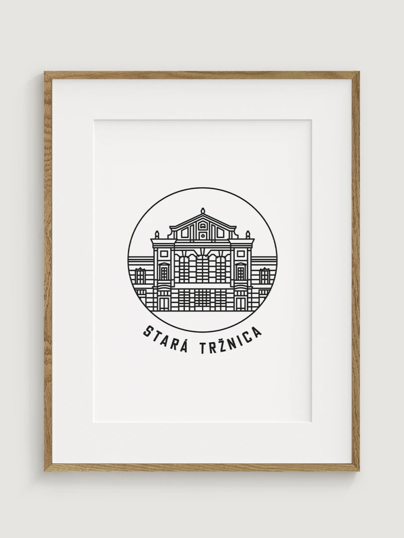 Tento umelecký print štýlovo zobrazuje ikonickú Starú tržnicu, historickú dominantu Bratislavy, ktorá bola od svojho vzniku centrom obchodného a spoločenského života. Elegantný, lineárny dizajn zachytáva jedinečnosť tejto pamiatky a jej symbolického významu. Perfektný pre tých, ktorí oceňujú históriu a architektúru.
