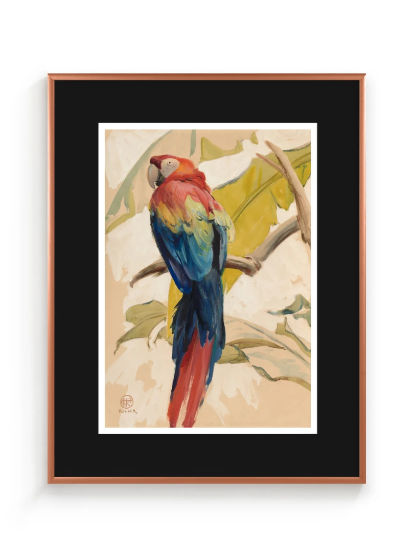 Tento print je ideálny pre interiéry, ktoré oceňujú spojenie prírody a umenia. Skvelo sa hodí do obývačky, pracovne alebo čitárne, kde môže pôsobiť ako výrazný a zároveň elegantný prvok. Jeho farebnosť a výraz papagája zaujmú na prvý pohľad a dodajú priestoru osobitý charakter.