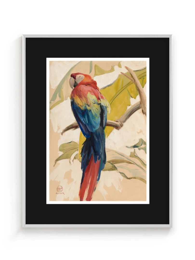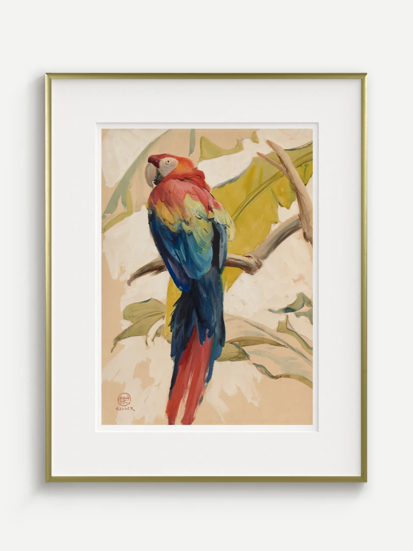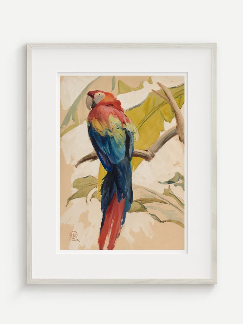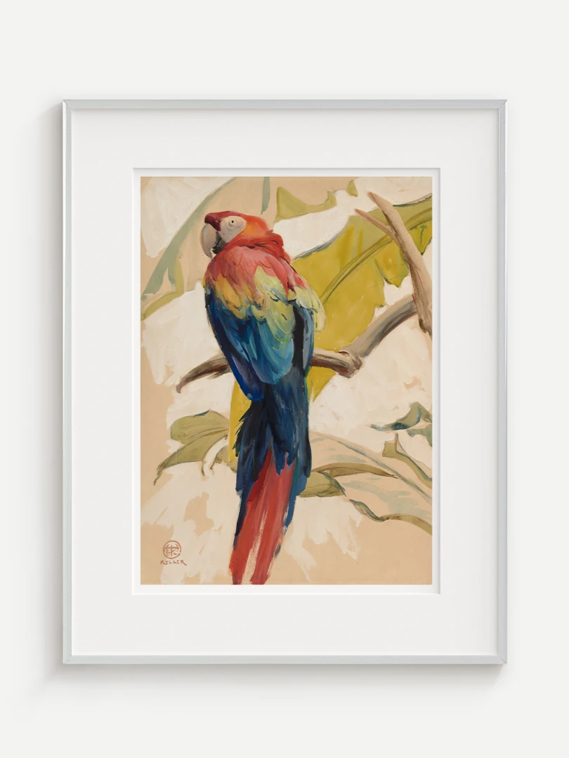 Tento print vychádza z akvarelu Starý mrzút (Old Grumpy), ktorý v roku 1926 vytvoril americký umelec Henry Keller. Dielo zobrazuje papagája s výrazným pohľadom, ktorý odráža jeho prezývku. Keller, známy svojimi akvarelovými prácami, zachytil detaily operenia a postoj vtáka s precíznosťou a citom pre farbu.