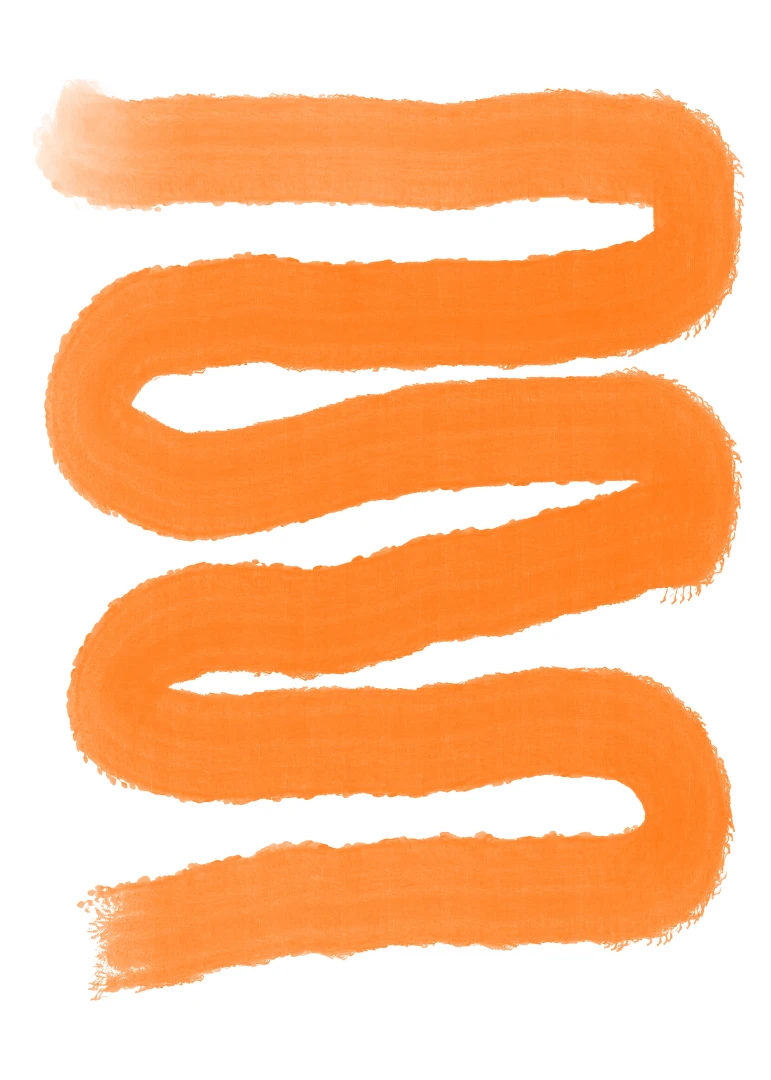 Tento print je založený na jednom plynulom maliarskom geste, ktoré sa vinie priestorom v rytmickej línii. Hrubý oranžový ťah štetca vytvára organický tvar, v ktorom je viditeľná štruktúra farby aj prirodzený pohyb ruky. Motív pôsobí spontánne a energicky, pričom jednoduchá forma necháva vyniknúť samotnú silu farby a gestickú dynamiku.
