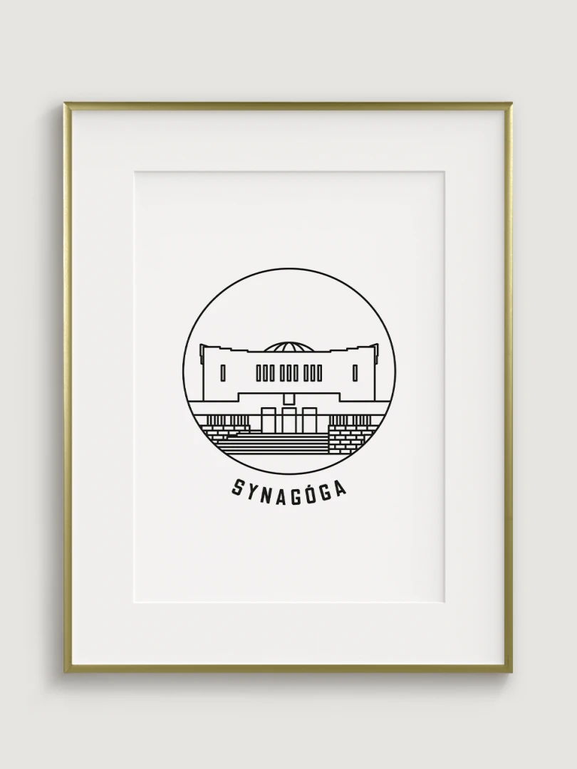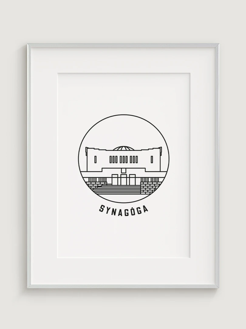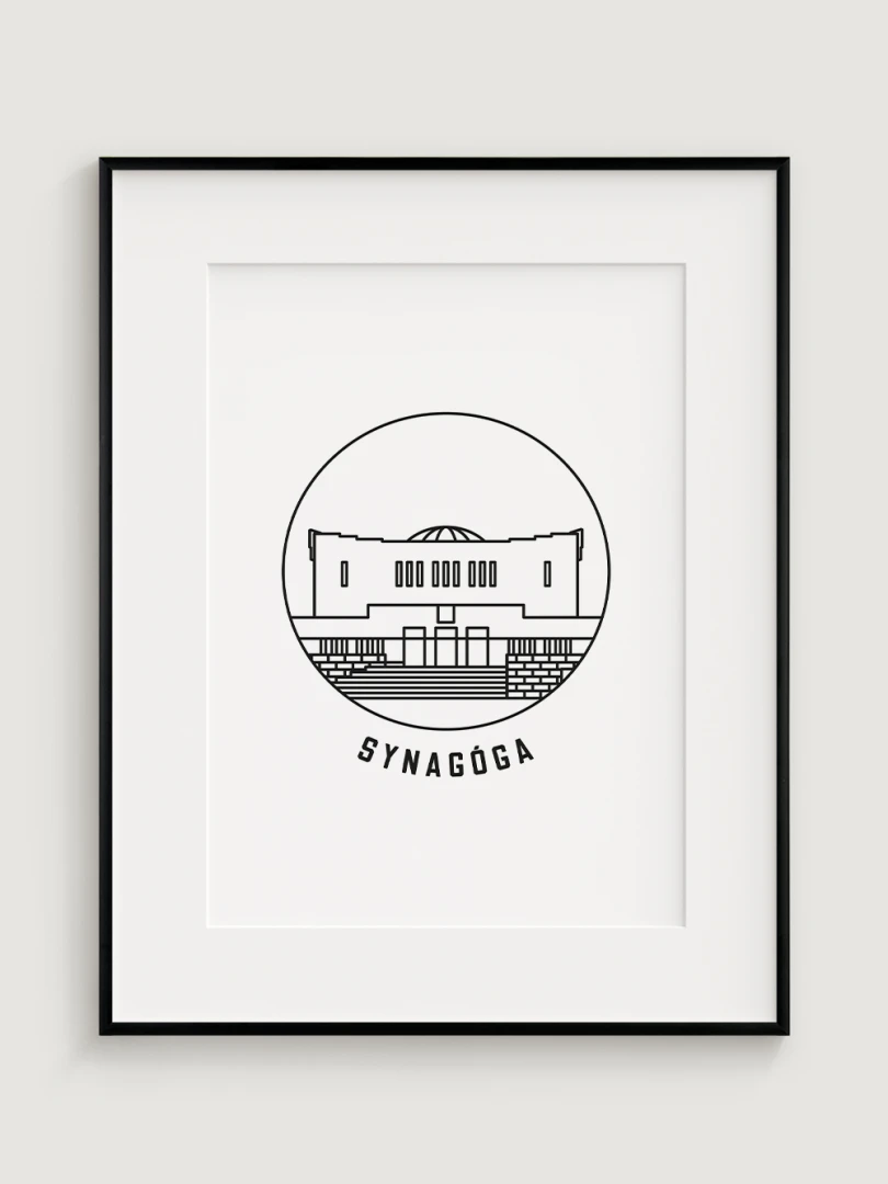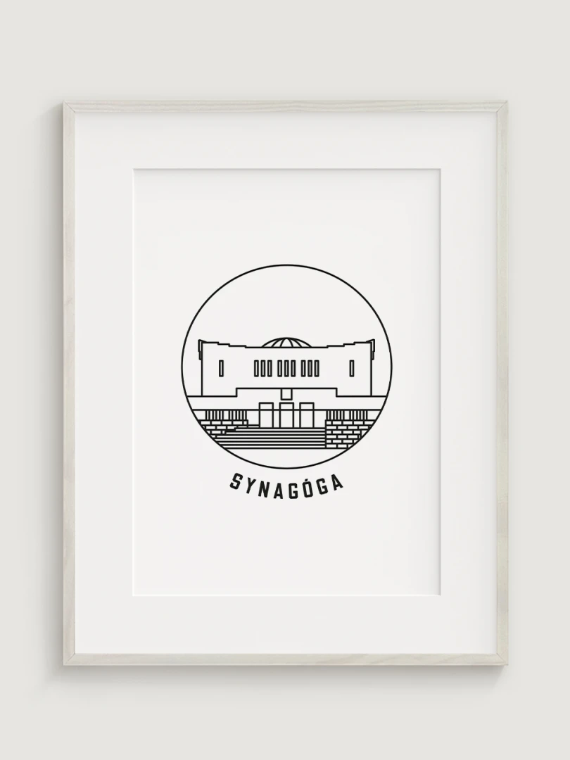 Tento print predstavuje štýlizované, minimalistické zobrazenie Synagógy v Žiline, budovy, ktorá spája historickú krásu a jedinečný architektonický štýl. Vypracovaný s jemnou čiernou linkovou kresbou na kvalitnom papieri, táto ilustrácia zachytáva detailné línie a formy synagógy v nadčasovom a elegantnom štýle.