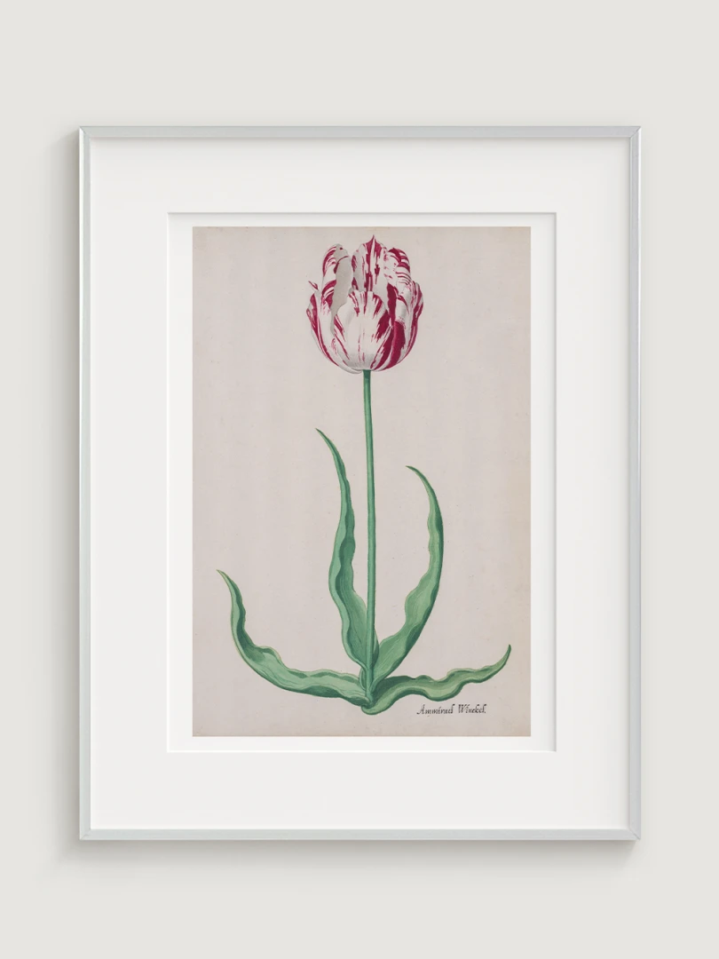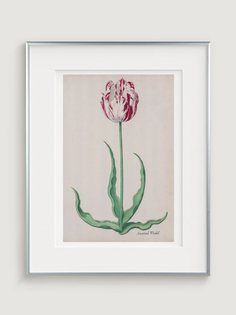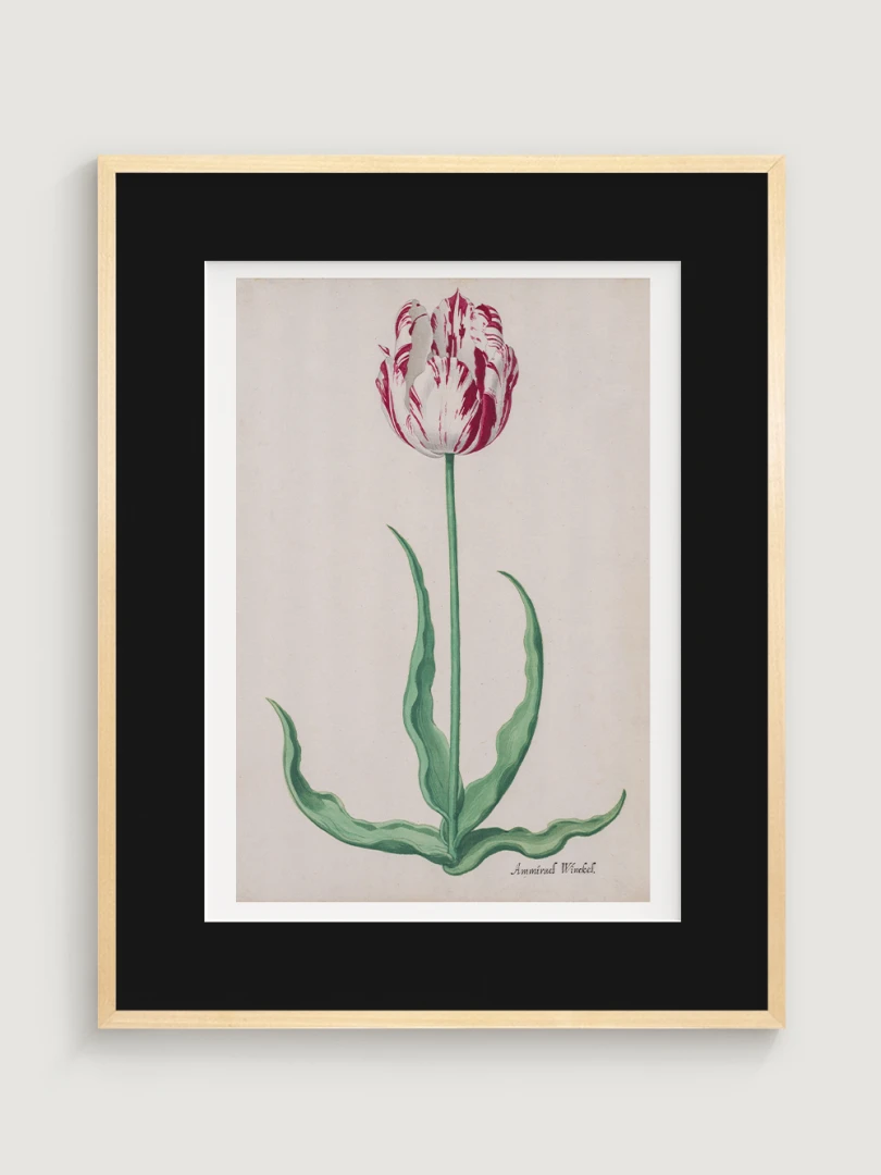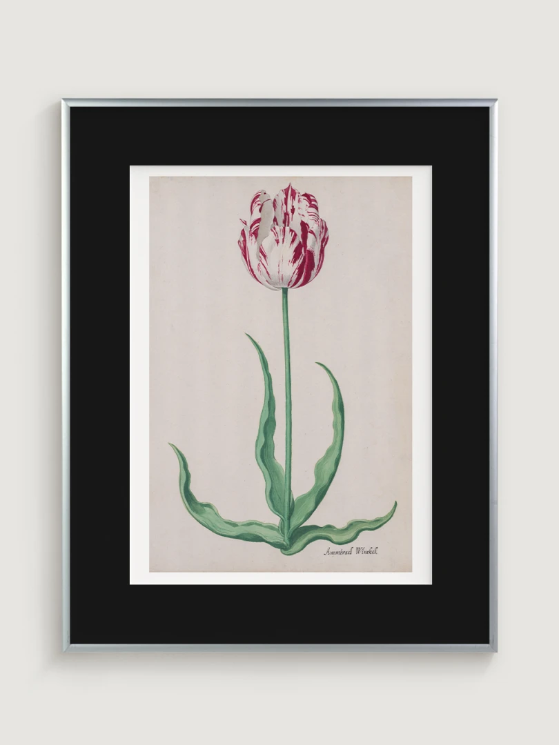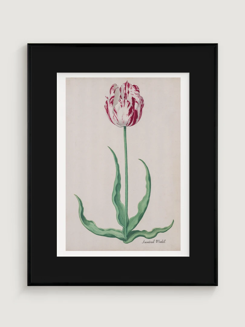Tento elegantný a precízny print Tulipánu (Ammirael Winckel) (Study of a Tulip) vznikol okolo roku 1645, v čase slávnej tulipánovej mánie – obdobia, keď sa Holandsko na chvíľu zbláznilo do kvetov. V tomto špekulatívnom ošiali sa cena niektorých cibuliek vyšplhala až nad hodnotu luxusného domu v Amsterdame.