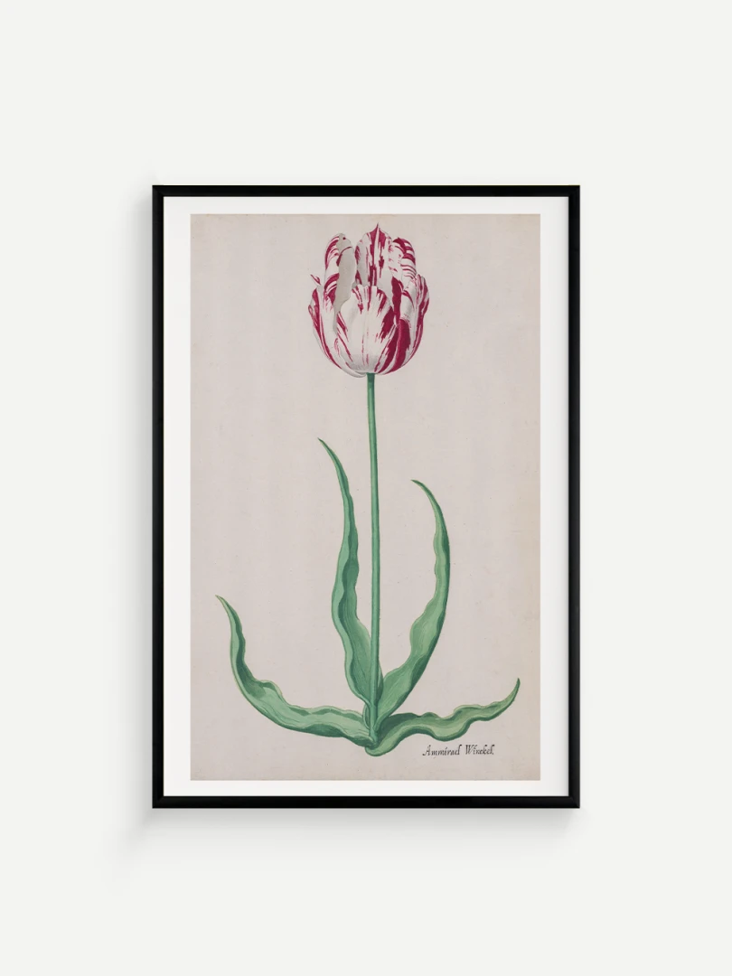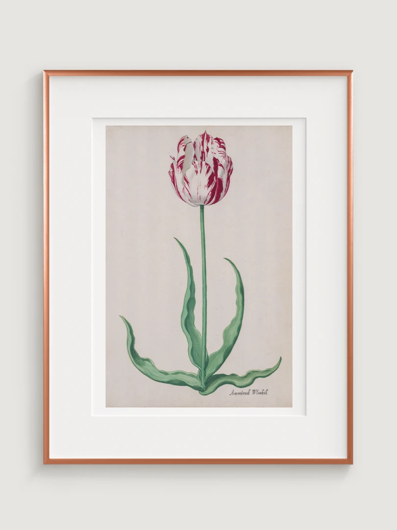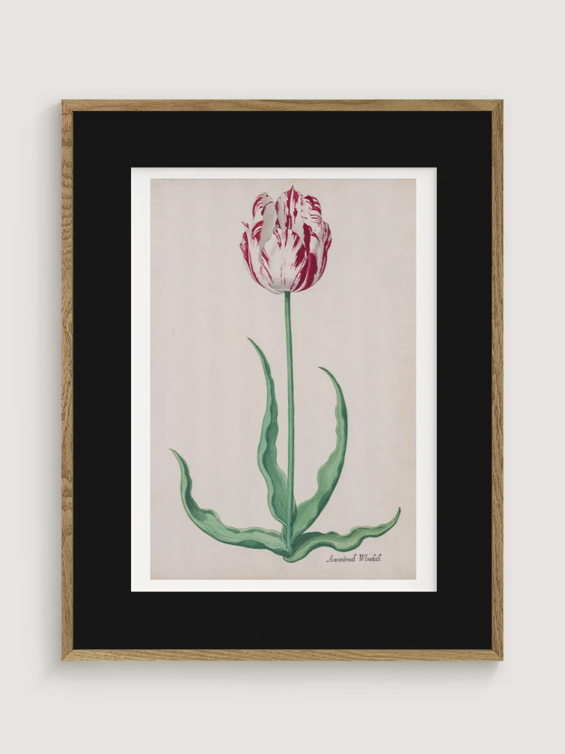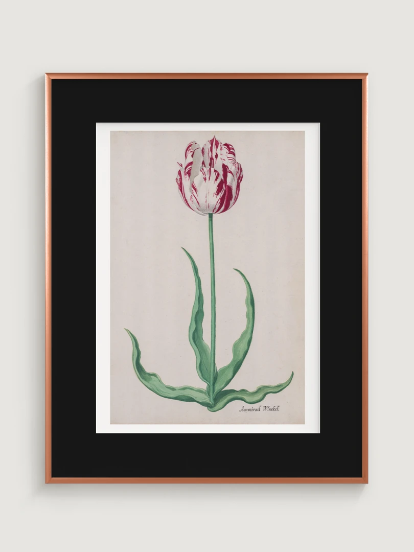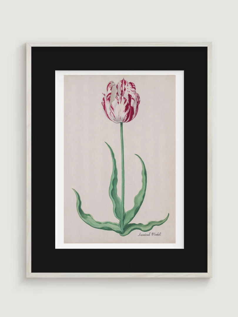 Tento elegantný a precízny print Tulipánu (Ammirael Winckel) (Study of a Tulip) vznikol okolo roku 1645, v čase slávnej tulipánovej mánie – obdobia, keď sa Holandsko na chvíľu zbláznilo do kvetov. V tomto špekulatívnom ošiali sa cena niektorých cibuliek vyšplhala až nad hodnotu luxusného domu v Amsterdame.