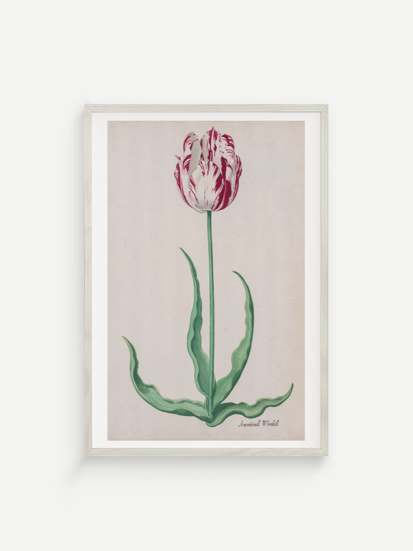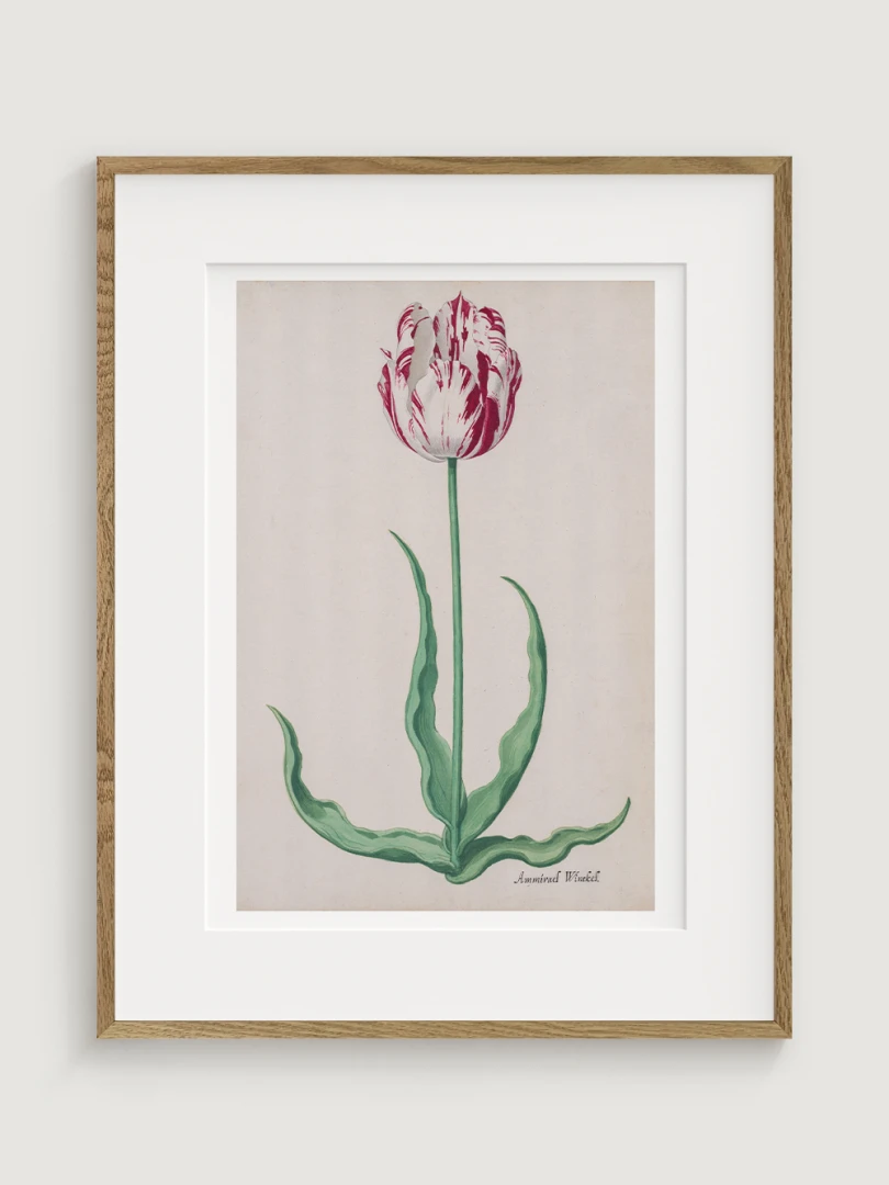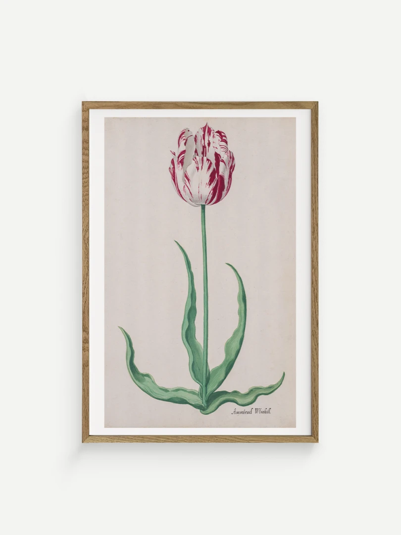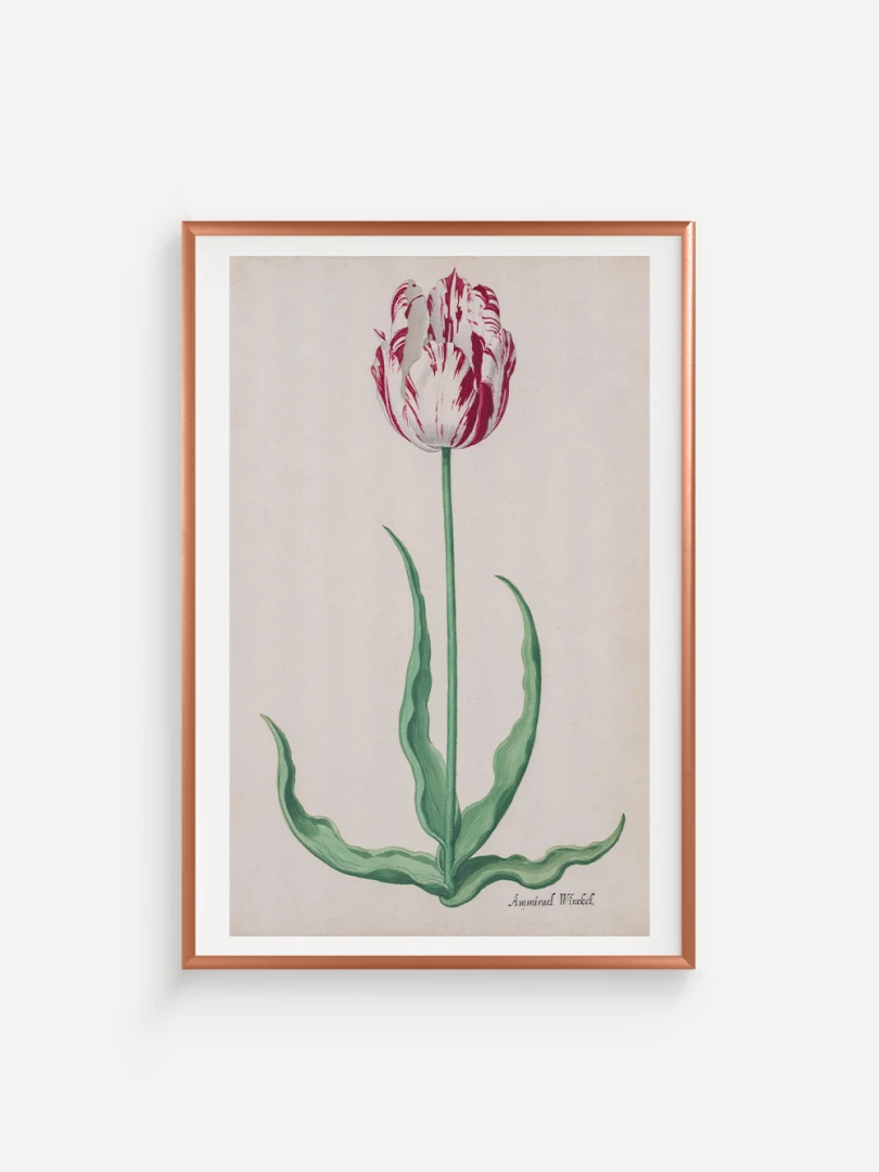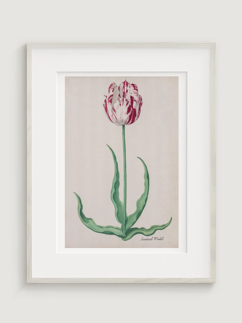 Tento elegantný a precízny print Tulipánu (Ammirael Winckel) (Study of a Tulip) vznikol okolo roku 1645, v čase slávnej tulipánovej mánie – obdobia, keď sa Holandsko na chvíľu zbláznilo do kvetov. V tomto špekulatívnom ošiali sa cena niektorých cibuliek vyšplhala až nad hodnotu luxusného domu v Amsterdame.