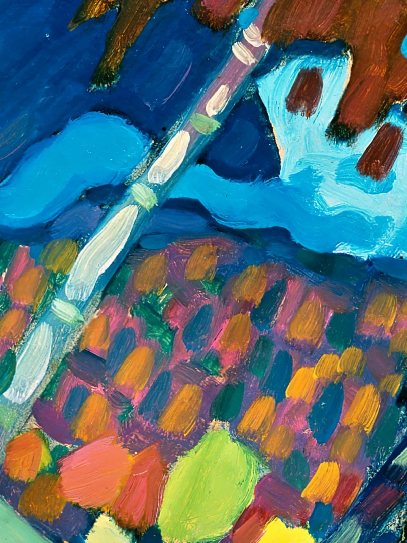 Dielo stojí na rozhraní figurácie a nastupujúcej abstrakcie. Farba tu preberá hlavnú úlohu a nesie atmosféru jesene, nie jej presný opis. Print pôsobí teplo a vyvážene. Vhodný je do obývačky, jedálne alebo pracovne, kde prinesie farebný akcent a pocit sústredeného pokoja.