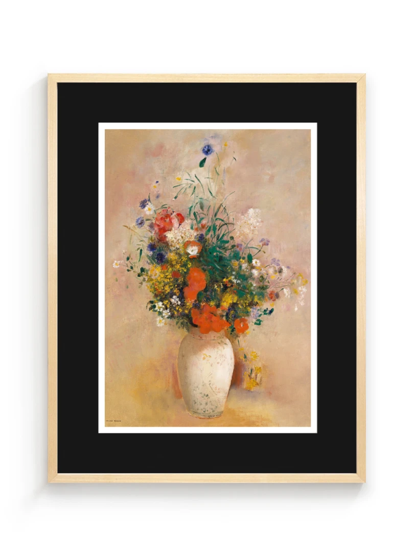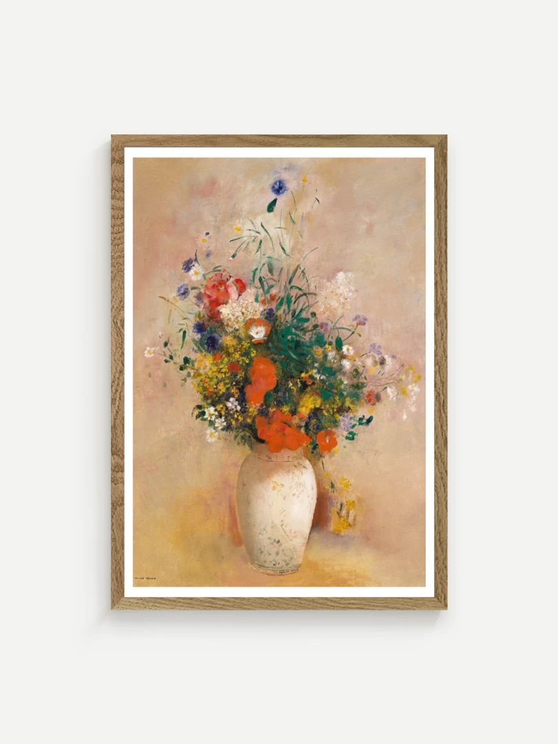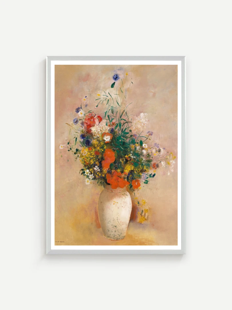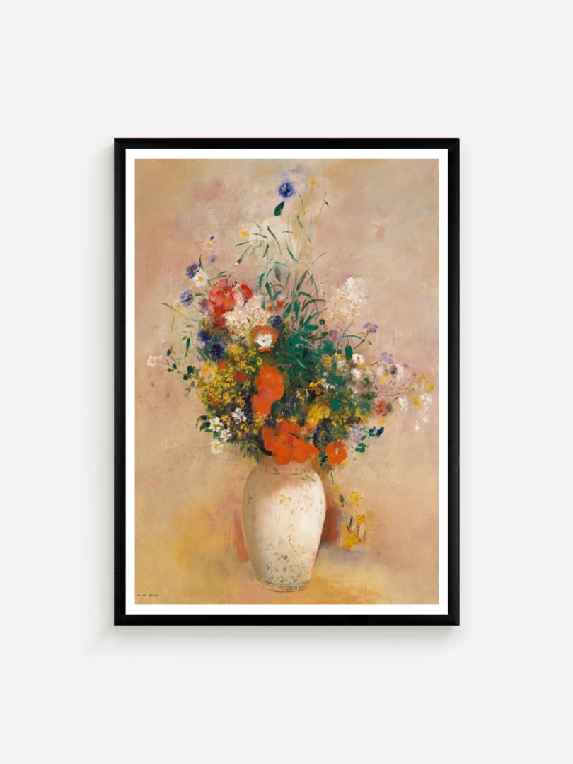 Tento print vychádza z obrazu Váza s kvetinami (Vase of Flowers), ktorý v roku 1905 vytvoril francúzsky symbolistický maliar Odilon Redon. Dielo zobrazuje kyticu pestrých kvetov v jednoduchej váze, pričom kompozícia a farebnosť vytvárajú dojem snovej atmosféry. Redon, známy svojimi dielami plnými fantázie a symboliky, tu využíva sýte farby a jemné línie.