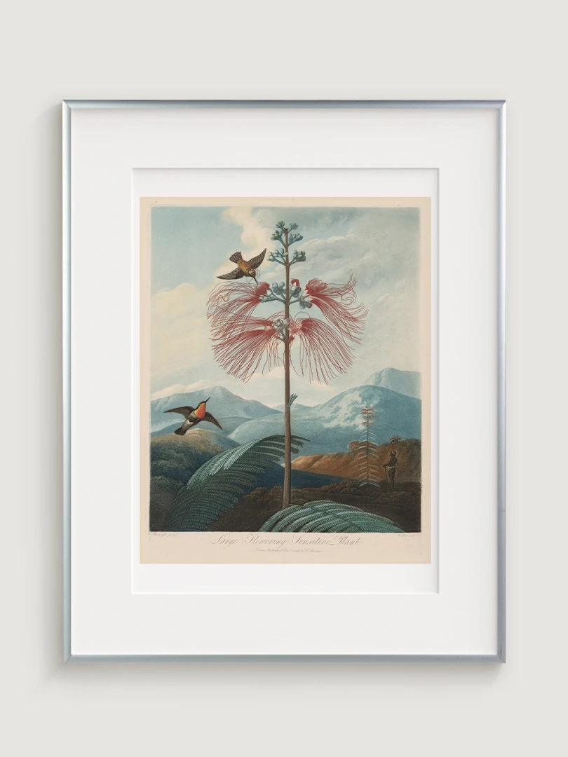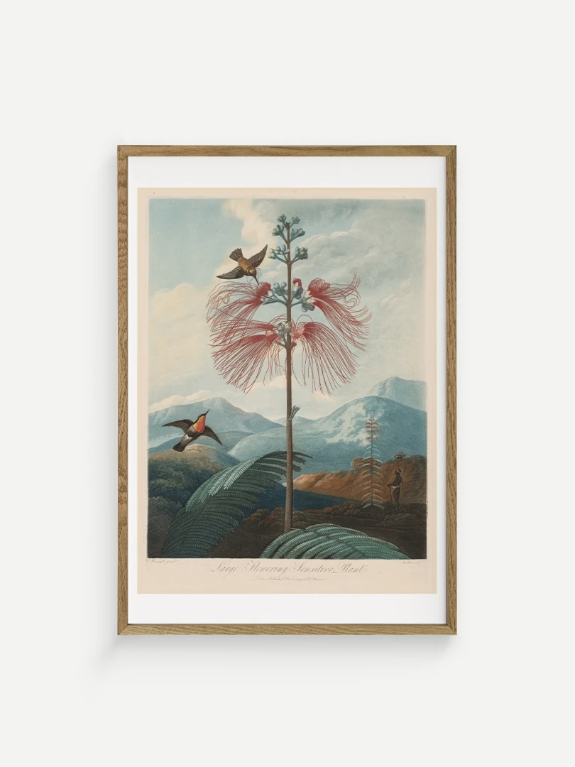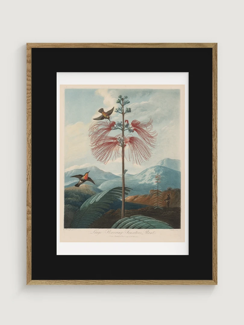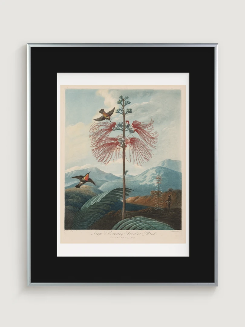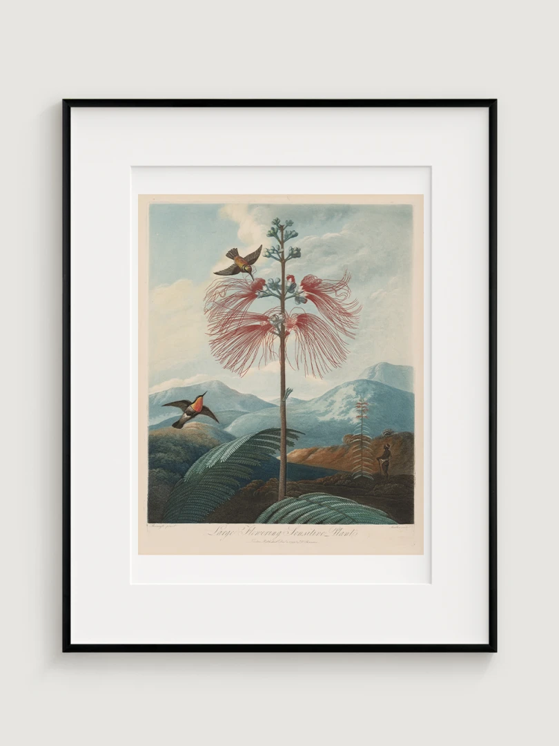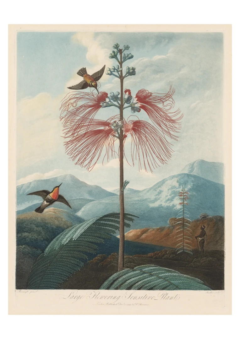 „Veľká kvitnúca citlivá rastlina“ je fascinujúcim príkladom spojenia vedy a umenia. Aj keď zobrazuje rastlinu s realistickou presnosťou, jej pozadie je fantazijnou kompozíciou, inšpirovanou britskými koloniálnymi výpravami. Bohaté detaily kvetov, jemné farebné prechody a atmosférická scenéria dodávajú tomuto dielu výnimočný vizuálny charakter.