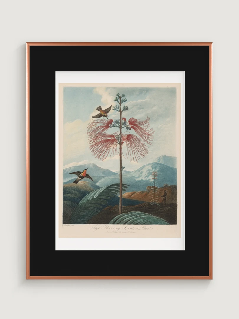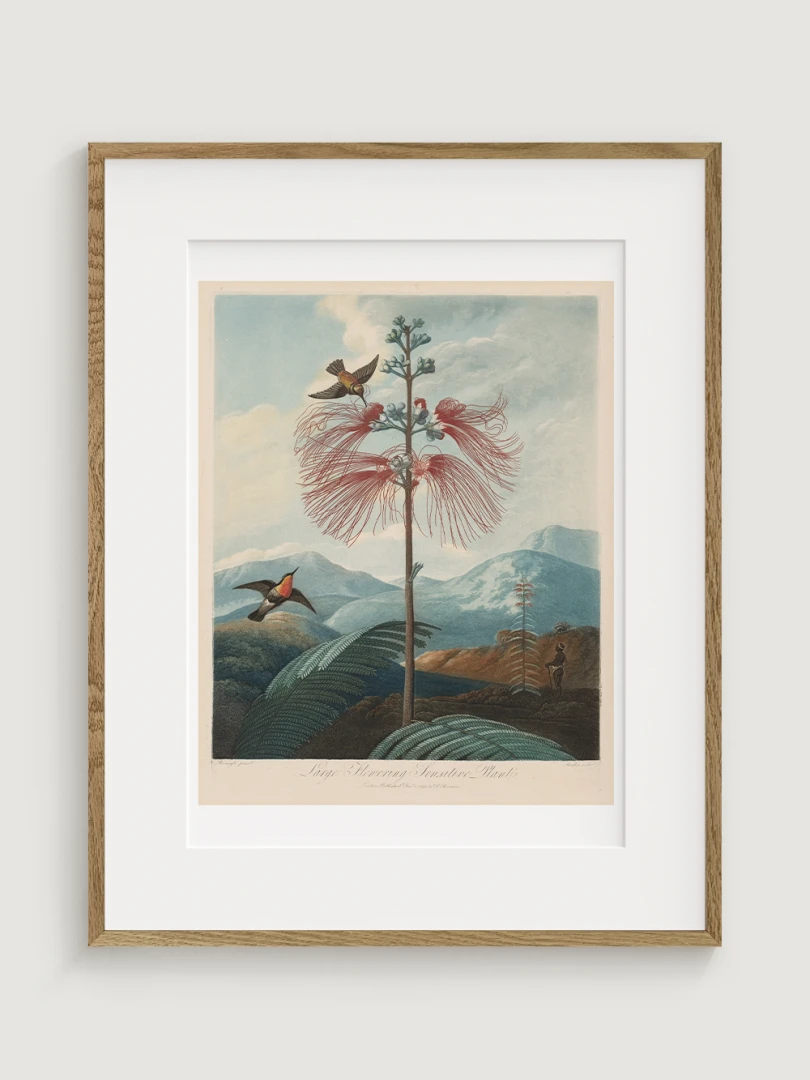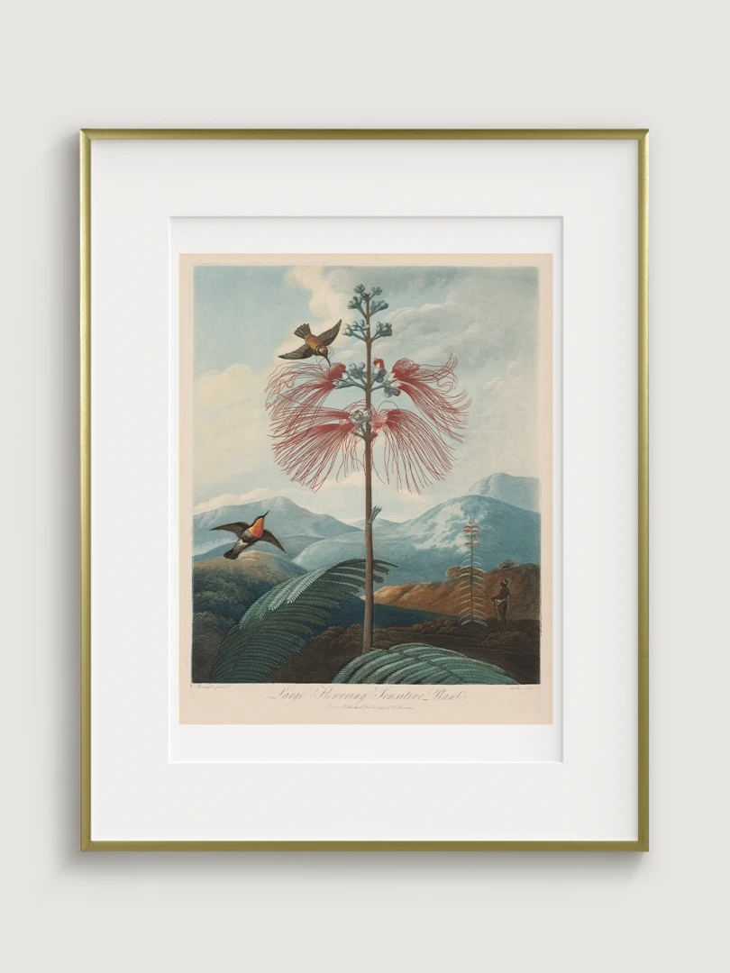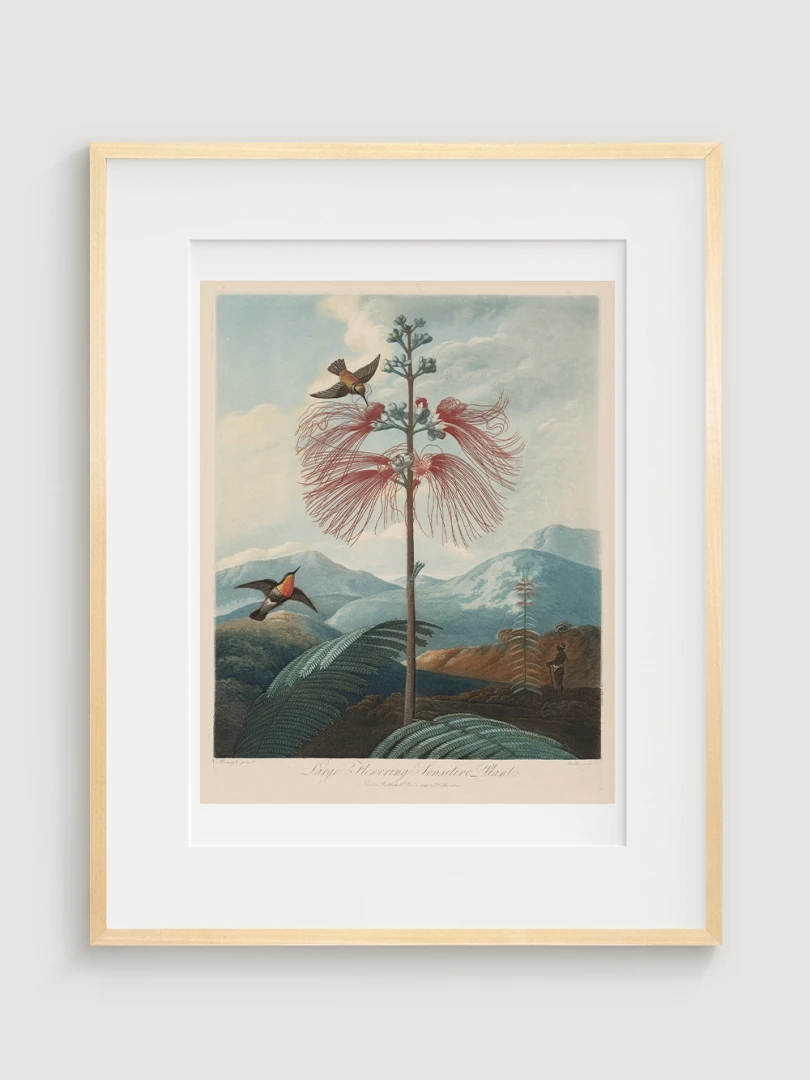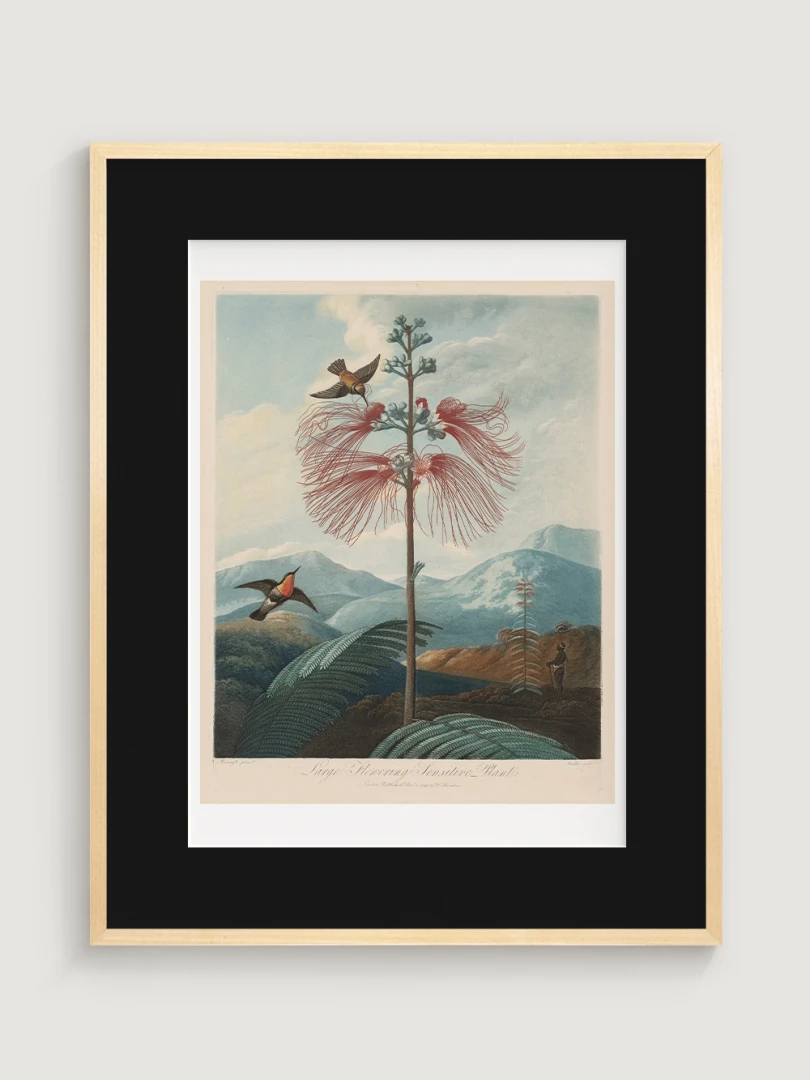 „Veľká kvitnúca citlivá rastlina“ je fascinujúcim príkladom spojenia vedy a umenia. Aj keď zobrazuje rastlinu s realistickou presnosťou, jej pozadie je fantazijnou kompozíciou, inšpirovanou britskými koloniálnymi výpravami. Bohaté detaily kvetov, jemné farebné prechody a atmosférická scenéria dodávajú tomuto dielu výnimočný vizuálny charakter.