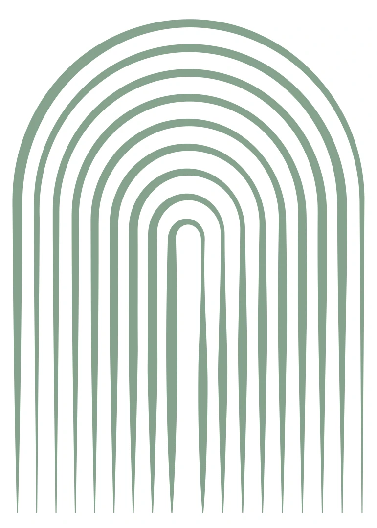 Tento print pracuje s opakujúcim sa oblúkovým tvarom, ktorý sa postupne rozširuje do série paralelných línií smerujúcich nadol. Jednoduchá geometria vytvára rytmus a pocit plynulosti, zatiaľ čo jemná zelená farba prináša do kompozície pokoj a vizuálnu rovnováhu. Motív pôsobí súčasne graficky aj organicky, pripomínajúc bránu, vlnu alebo postupné rozširovanie priestoru.