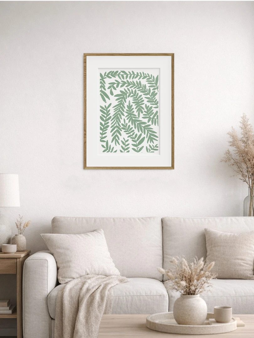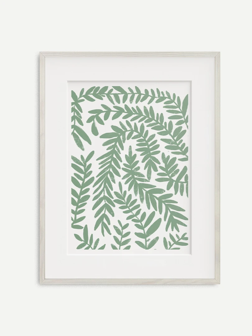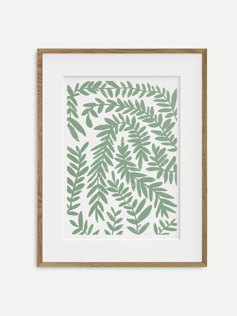 Predstavujeme vám tento minimalistický umelecký print, ktorý zobrazuje jednoduchosť zeleného vavrínu.