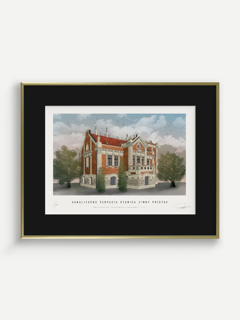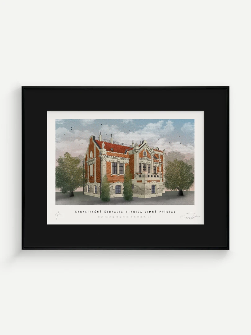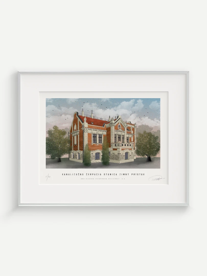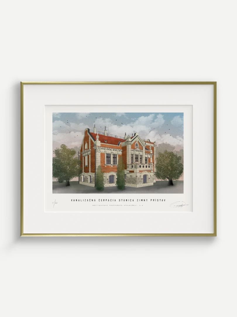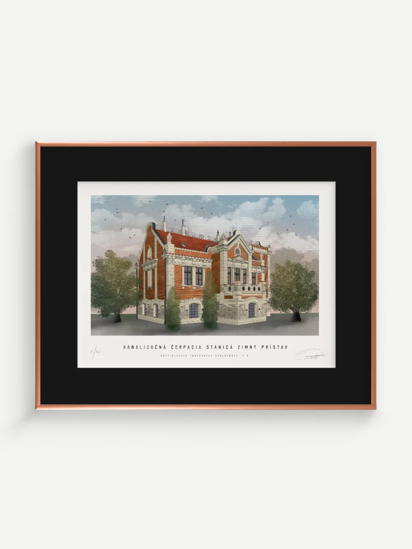 Budova čerpacej stanice bola postavená v secesnom štýle, v západnej časti Zimného prístavu, 50 metrov od Dunaja. Výstavba prebiehala v rokoch 1904 – 1905. Architektom čerpacej stanice bol György Kopeczek, ktorý patril medzi významných secesných architektov v Rakúsko-Uhorsku. Čerpacia stanica bola členená na dve jednotky – v suteréne a na prízemí sa nachádzala strojovňa a stavidlová miestnosť, na prvom poschodí bola bytová jednotka pre obsluhu čerpacej stanice. V strojovni čerpacej stanice boli umiestnené tri kusy odstredivých elektrických čerpadiel s kapacitou 600 l/s, ktorých úlohou bolo zabezpečenie výtlaku splaškov do Dunaja cez výtlačné potrubia priemeru 1 000 mm.