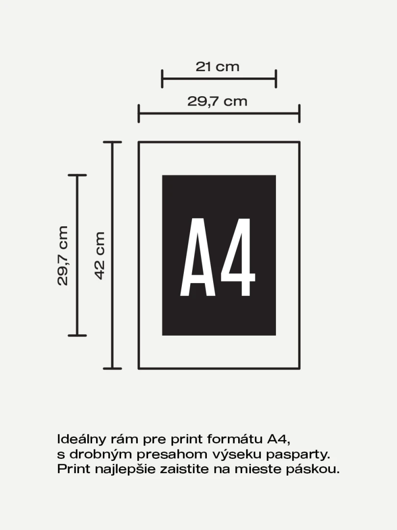 Biela pasparta je súčasťou balenia rámu, má výrez pre formát A4 (s jemnými presahmi) a krásne zvýrazní váš umelecký print.