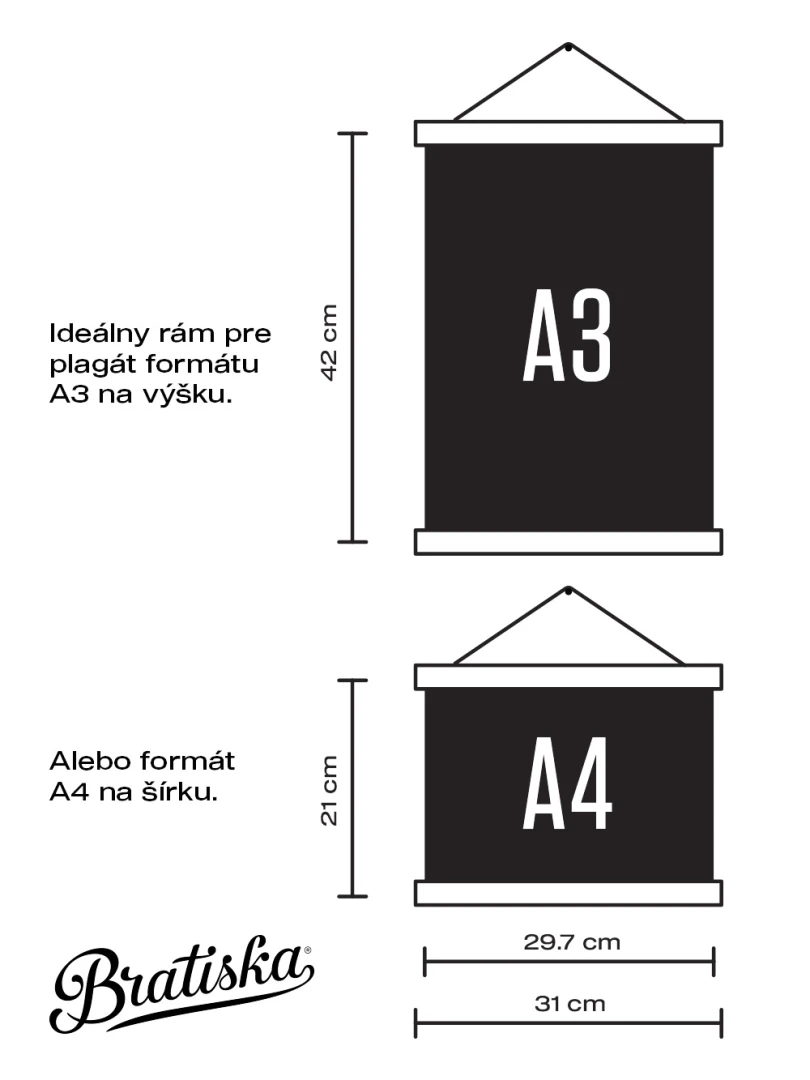 Rozmer 31cm je vhodný na zavesenie formátu A3 na výšku, alebo A4 na šírku.